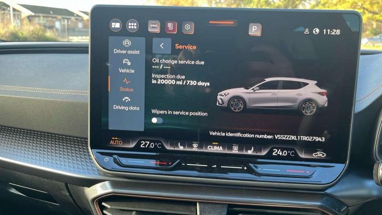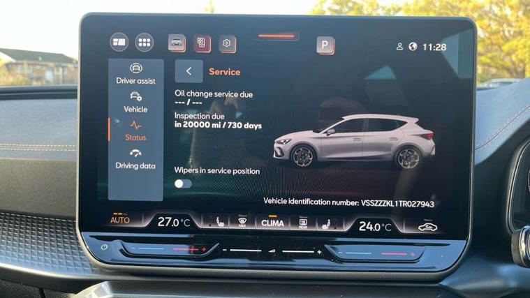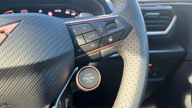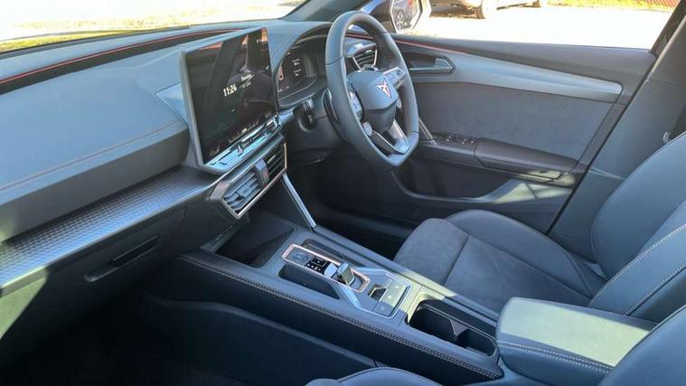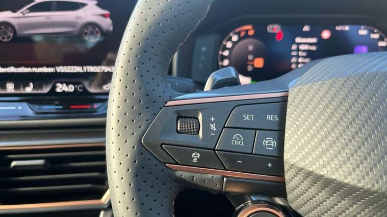 Adaptive cruise control with follow-to-stop and speed limiter, CUPRA drive profile selection with (Comfort/Sport/Individual), throttle response and gearshift mode, Digital cockpit, Dynamic road sign display, E-call, Four x USB Type C ports (2 in front and 2 in rear), Front and rear parking sensors, Front assist with forward collision warning braking reaction to vehicles, pedestrians and cyclists, Full link smartphone integration with Mirror Link, wireless Apple CarPlay and wired Google Android Auto, Lane assist, Lockable tailgate, Rear view camera, RPM, trip computer, outside temp gauge, instrument light brightness, low fuel warning light, lights on reminder, gearshift indicator, Service interval indicator, Start/stop system with regenerative braking, Wireless phone charger, Auxiliary input socket, Auto dimming rear view mirror, Body colour door handles, Body coloured bumpers, Cupra sports bumpers, Dark tinted rear windows, Electric front/rear windows, Electrically adjustable, heated and folding door mirrors, High beam assist, LED front fog lamps with cornering function, LED headlights with dynamic turn signals, tail lights, rear fog lights with rear coast to coast lighting, LED rear fog lamp, Rain sensing wipers, Rear side wing doors, Rear wash/wipe, Separate daytime running light with automatic headlight control and coming home feature, Third brake light, Welcome light with logo projector in door mirrors, 12v power supply in centre console, 3 seat bench in 2nd row, 5 headrests, 60/40 split rear bench seat with armrest, Ambient lighting (glovebox, footwell, ambient lighting multicoloured), Black headlining, Cupra sports pedals, CUPRA Supersports, heated steering wheel with satellite buttons, Dinamica cloth upholstery, Electrically adjustable driver seat and lumbar support with memory function + manually adjustable passenger seat, Folding boot cover, Front and rear reading lights X 4, Front centre armrest, Heated front seats, Height/reach adjust steering wheel, Illuminated interior front door sills, Interior wraparound lighting, ISOFIX points in outer rear seats with top tether anchorage points, Single front passenger seat, Storage pockets on rear of front seats, Sunvisors with illuminated mirror, Three zone climate control, Dynamic and comfort pack - Leon Cupra, Media system plus with 12.9" display + navigation pack - Leon Cupra, 3 point seatbelts on all rear seats, ABS, Brake control system - ESC and brake booster, Child proof door locks, Cupra black brake calipers, Driver and front passenger airbags with front passenger airbag de-activation, front side and curtain airbags, Electronic parking brake, Hill hold control, Rear disc brakes, Seat belt reminder for front and rear seats, Tiredness recognition system, Tyre pressure monitoring system, Anti theft alarm system with interior monitoring in cab, backup horn and towing protection, KESSY Advanced - Keyless start, keyless entry, Locking wheel bolts, Chrome and copper interior detailing, 19" Polar machined sport black and silver alloy wheel with 91Y tyres, Tool kit,