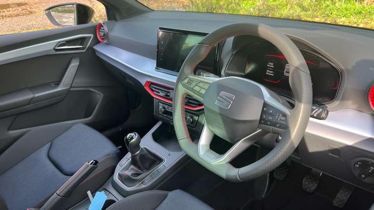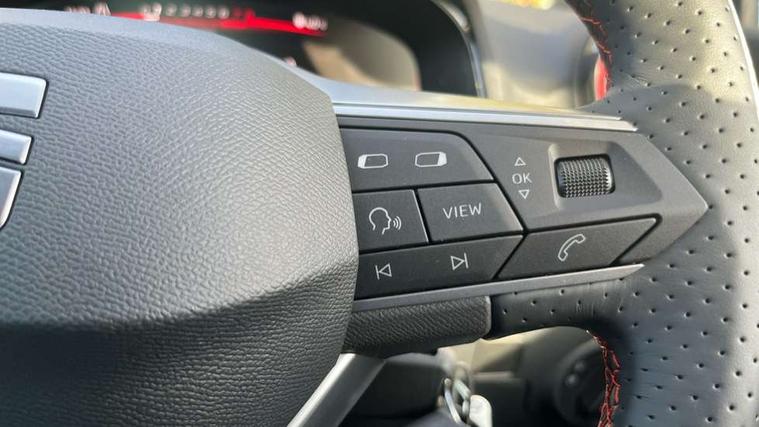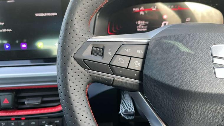 'Lights On' Reminder warning buzzer, 8" Digital cockpit, 9.2" touchscreen navigation system with type C USB socket, Voice control and DAB/AM/FM radio, Auto start and stop system, Bluetooth audio streaming with handsfree system, Digital clock, E-call, Full link smartphone integration with mirror link, wireless apple carplay, Google android auto + USB Type C cable for apple and android devices, Lane assist, Low fuel warning light, Outside temperature gauge, Power Steering, Rear parking sensor, Seat connect plus with safety, service, remote and online, SEAT drive profiles and ECO function, SEAT logo boot release, Speed limiter, Traffic sign recognition, Trip computer, Sports suspension, Auxiliary input socket, Radio/MP3 player, SD card slot, Steering wheel mounted controls, Anti theft roof antenna, Auto dimming rear view mirror, Automatic rain sensing wipers, Black door mirror caps, Body colour bumpers, Body colour door handles, Brilliant black window surrounds, Dark tinted rear windows, Electric adjustable/heated/folding door mirrors, Electric front windows, Electric headlight adjustment, Electric rear windows, Front/rear fog lights, FULL LED automatic headlights with dynamic headlight range control, coming and leaving home, LED daytime running lights, LED 3rd brake light, LED tail lights, Rear roof spoiler with FR twin exhausts, Rear side wing doors, Rear wiper, 3 seat bench in 2nd row, 60/40 split folding rear seat, Ambient interior lighting, Chrome detailing and black headlining, Cloth upholstery, Dual zone climate control with combination filter, Front courtesy lights, Front cupholders x 2, Front reading lights, Gear shift indicator, Glovebox, Height adjustable front and rear headrests (five), Height adjustable front seats, Height/reach adjust steering wheel, Illuminated air vent surrounds, Illuminated boot, Instrument lighting with brightness control, Isofix, Leather multifunction flat bottomed sports steering wheel, Passenger sunvisor, Single front passenger seat, Sports seats, Sunvisors with mirror and driver side card holder, Safety and driving pack (S) - Ibiza, 3 point seatbelts on all 3 rear seats, ABS, Active front headrests, Child locks on rear doors, Electronic stability control, Energy recovery system, Front driver and passenger side airbags with curtain airbag and front passenger airbag deactivation, Hill hold control, Multi-Collision braking, Seat belt reminder for front and rear seats, Tiredness recognition system, Tyre pressure monitoring system, Locking wheel bolts, Perimeter alarm and interior monitoring with backup horn and tow away protection, Remote central locking + deadlocks, 17" Alloy wheels in Brilliant silver,