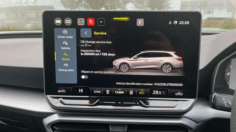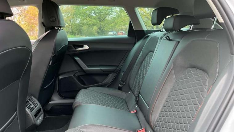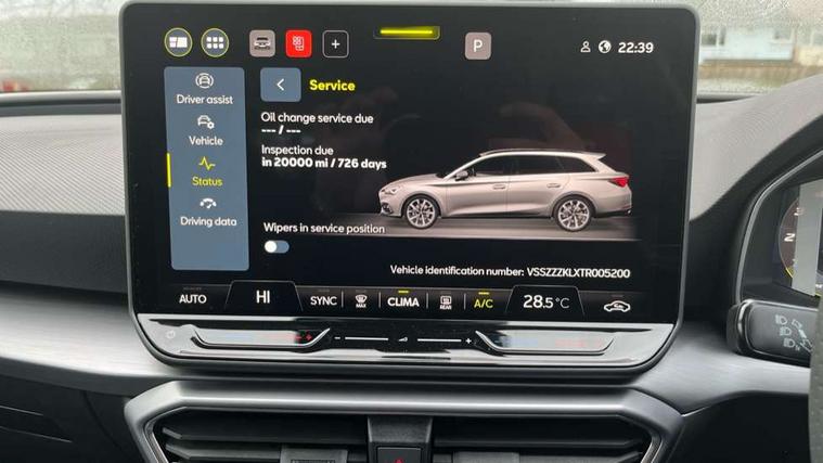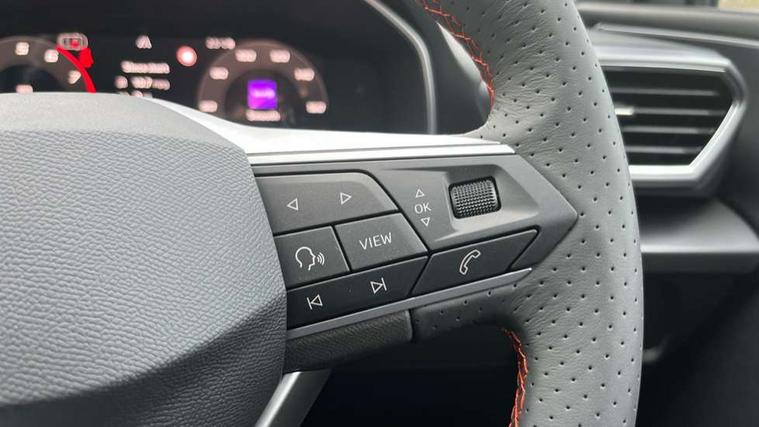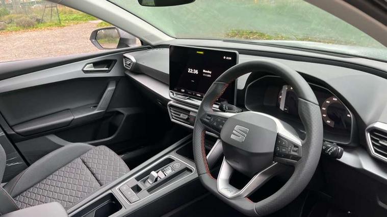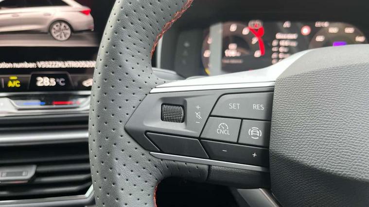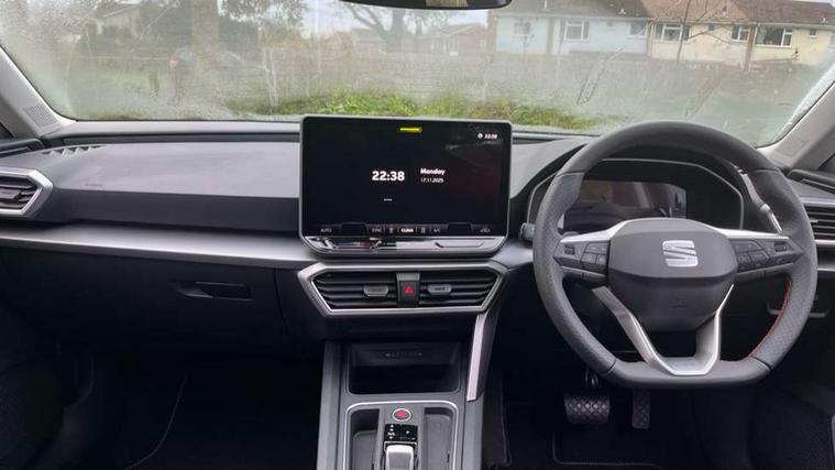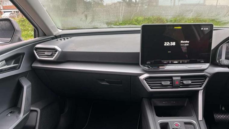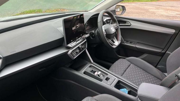 Digital cockpit, E-call, Four x USB Type C ports, Front assist with forward collision warning braking reaction to vehicles, pedestrians and cyclists, Full link smartphone integration with Mirror Link, wireless Apple CarPlay and wired Google Android Auto, Lane assist, Lockable tailgate, Park assist (inc front/rear parking sensors), Power assisted speed sensitive electro-mechanical steering, Rear view camera, RPM, trip computer, outside temp gauge, instrument light brightness, low fuel warning light, lights on reminder, gearshift indicator, SEAT drive profile with 4 modes (Eco/Normal/Sport/Individual), throttle response and gearshift mode, Service interval indicator, Start/stop system with regenerative braking, Sports suspension, XDS electronic differential lock and dynamic traction support, 7 speakers, Auxiliary input socket, Auto dimming rear view mirror, Body colour door handles, Body coloured bumpers, Cosmo grey exterior mirrors with integrated LED indicators, Dark tinted rear windows, Dynamic headlight range control, Electric front/rear windows, Electrically adjustable, heated and folding door mirrors, FR sports bumper, Illuminated front door sill, LED front fog lamps, LED Headlights with dynamic turn signals, LED tail lights and rear fog lights with rear coast to coast lighting, Matt black roof rails, Rear side wing doors, Rear wash/wipe, Separate daytime running light with automatic headlight control and coming home feature, Third brake light, Welcome light silhouette from exterior mirrors, Windshield wiper intermittent control with light/rain sensor, 12v power point in centre console, 3 seat bench in 2nd row, 60/40 split rear bench seat with armrest, Ambient lighting with glovebox, footwell and single monocolour, Driver/passenger manual seat height adjustment, Dust/pollen filter, Front and rear height adjustable headrests, Front and rear reading lights X 4, Front centre armrest, Front seatback storage pockets, Height/reach adjust steering wheel, ISOFIX points in outer rear seats with top tether anchorage points, Luggage tie-down hooks, Lumbar adjustment for front seats, Single front passenger seat, Sliding boot cover, Sunvisors with covered illuminated mirror, Three zone climate control, Two tone cloth upholstery, Media system plus with navigation - Leon, 3 point seatbelts on all rear seats, ABS, Brake control system - ESC and brake booster, Child proof door locks, Driver and front passenger airbags with front passenger airbag de-activation, front side and curtain airbags, Electronic parking brake, Extended safety system - seat belt tensioner, window closure and hazard lights, Hill hold control, Rear disc brakes, Seat belt reminder for front and rear seats, Tiredness recognition system, driver alert system, Tyre pressure monitoring system, Anti theft alarm system with interior monitoring in cab, backup horn and towing protection, KESSY Go (Keyless start), Locking wheel bolts, Wireless phone charging, Chrome interior detailing, 17" Dynamic Bi-spoke alloy wheels with 91W tyres, Tool kit,