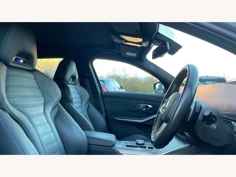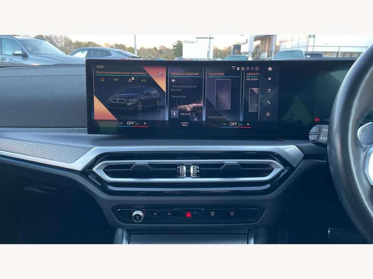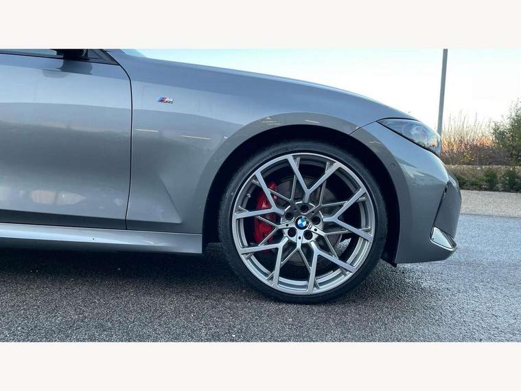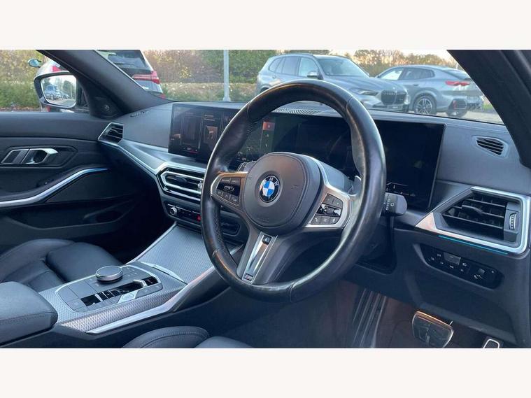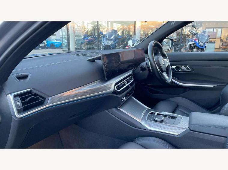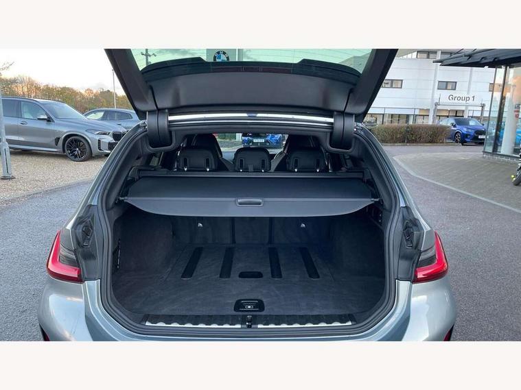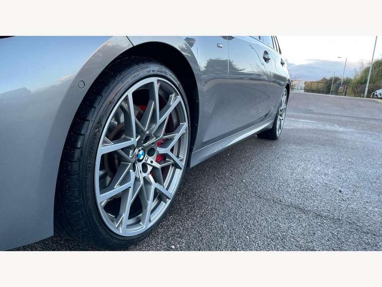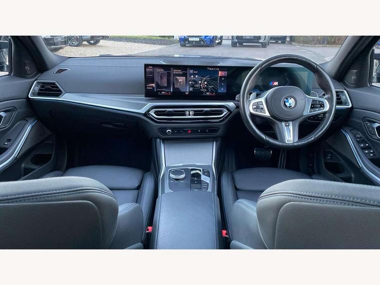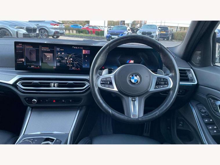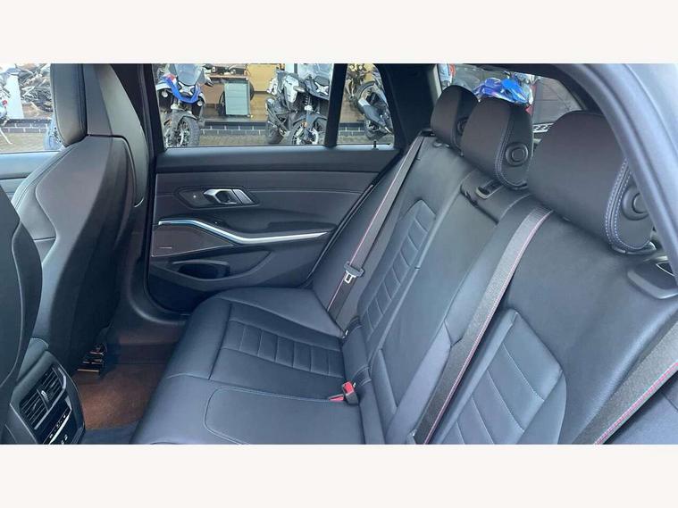 Active guard plus, Attentiveness assist, Automatic Start/stop button, BMW iDrive, BMW Teleservices, Condition based service, ConnectedDrive Services, Driving experience switch, Oil sensor for level and grade, Preparation for driver assistance, Shifting point display, Smartphone integration, Variable sport steering, 48V Mild hybrid technology, Double joint spring strut front axle, Fuel tank breather system, M Sport differential, Sport automatic transmission with steering-wheel mounted gearshift paddles and launch control, DAB tuner, 3rd brake light, Acoustic glazing, Adaptive LED Headlights, Automated High beam assist, Automatic headlight beam throw control with load dependent regulating reaction, dynamic compensation of braking dive and acceleration squat, BMW emblem, engine compartment lid and tailgate, BMW individual lights shadow line, BMW M Individual high gloss shadow line with extended contents, Body colour roof fin, Door sill strips, Electric windows - front and rear, with open/close fingertip control, anti-trap facility and comfort closing, Follow me home headlight function, Front and rear bumper system with replaceable deformation elements, Front apron plastic in body colour, Fuel filler flap - right rear in body colour, Heated washer jets, High gloss shadow line exterior trim, High gloss shadow line roof rails, Illuminated bow type door handles in body colour drivers side with door lock, Interior rear view electrochromatic mirror with automatic anti dazzle function, LED daytime running lights, LED rear lights, LED turn indicator, Licence plate panel integrated into front bumper and tailgate, Matt black B-pillar finsher, Matt black window recess cover, Model designation on right side of tailgate, One piece front bumper cover including towing eye cover in body colour, Rain sensor with automatic headlight activation, Rear side wing doors, Rear wiper, Reversing lights, Side frame decorative moulding black matt, Sun protection glass, Visible exhaust tailpipe finisher, Welcome lights in interior and door handle area, 12V power socket in front storage compartment, 2 front cupholder in centre console with clamping elements and matt black inlay, 3 seat bench in 2nd row, 3 zone automatic air conditioning, 40:20:40 split folding rear seat with loading system, Anthracite headlining, Armrest integrated in front and rear door trim + front centre console armrest, BMW ID, Cruise control operation in steering wheel, Driver backrest width adjustment, Folding rear centre armrest with 2 cupholders, Front and rear door exit lighting (left / right), Front and rear footwell lighting, Front and rear headrests, Front and rear reading lights, Front and rear velour floor mats, Heated front seats, Height adjustable mechanically and infinitely variable steering column, Illuminated armrest storage compartment, Illuminated glove compartment, Illuminated luggage compartment, Lashing eyelets in luggage compartment, LED ambient lighting with welcome carpet light, M Sport multifunction leather steering wheel, Make-up mirror lights, Single front passenger seat, Standard seat for driver and passenger with manual adjustment, Sunvisors with vanity mirrors and ticket pocket, Toolkit located in luggage compartment, Connected pack professional - 3 Series Saloon/Touring, Interior and exterior mirror pack - 3 Series Touring/Saloon, M Aerodynamics package - 3 Series Saloon/Touring, M sport exterior styling pack - 3 Series Saloon/Touring, Storage compartment pack - 3 Series Saloon/Touring, 3x3 point rear seatbelts, BMW emergency call, Child locks on rear doors, Crash sensor activating of airbags, Unlocking doors, hazard warning lights, interior light, safety battery terminal, Driver and front passenger with seat occupancy detection for driver's and passenger side, Driver and passenger side airbags, body protection at side and airbags deploy from seat backrests, Dynamic brake control, Dynamic stability control + (DSC+) - Anti-lock Braking System (ABS) with brake assist and cornering brake control + Automatic Stability Control (ASC), Dynamic Traction Control - DTC, Electric parking brake including automatic hold function and automatic release of the parking brake when driving off, Electronic differential lock control (EDLC), Head airbags in 1st and 2nd row, head protection at side, curtain airbags open from headliner above 1st and 2nd row, M sport seatbelt, Plastic fuel tank, Side impact protection, Tyre pressure monitoring with three level warning strategy, Ventilated front and rear disc brakes, Warning triangle and first aid kit, Alarm system, Centre lock switch, Closing system with central locking, Electronic vehicle immobiliser, Sensatec instrument panel,