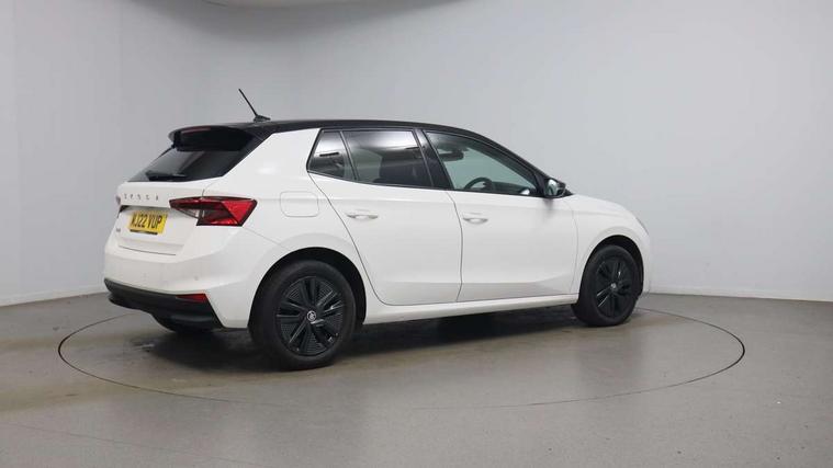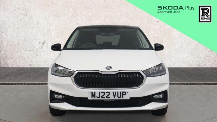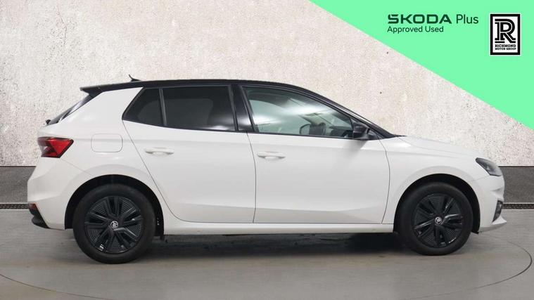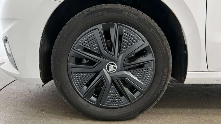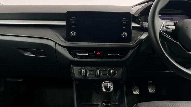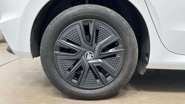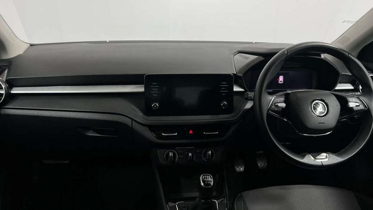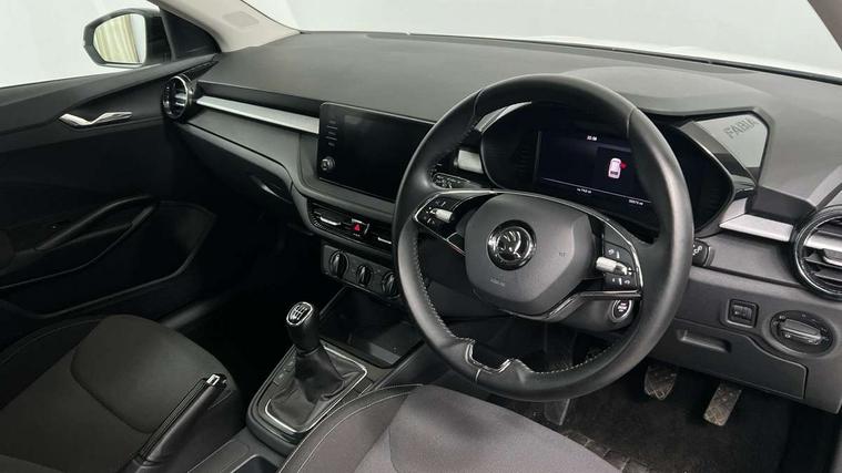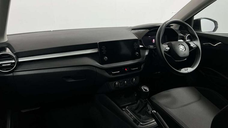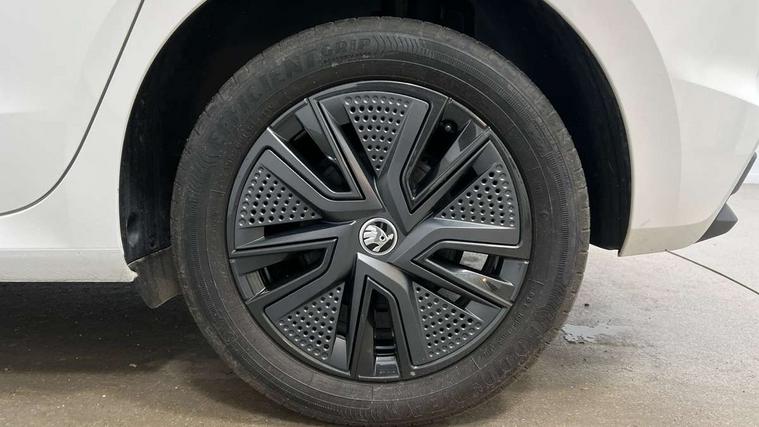 Bluetooth connection, Driver alert system - DAS, Electromechanical power steering, Exterior temperature gauge, Lane assist including road edge detection, Service interval indicator, Virtual cockpit with 10.25" colour display, 2x USB-C in the front (for data transmission and charging), 6 Speakers (4 in front and 2 in rear), Auxiliary socket for external MP3 player, Bolero radio with 8" colour display, DAB digital radio reception, Basic rear lights, Body coloured bumpers, Dimming rear view mirror with black frame, Door mirror integrated indicators, Electrically adjustable and heated door mirrors, Electrically adjustable front windows with function auto up/down, Front window wiper intermittent control, Headlight range control - Automatic, Ice scraper in fuel cap, LED daytime running lights with coming and leaving home feature, Mechanical adjustable rear windows, Privacy glass, Rear LED fog light, Rear side wing doors, Rear window wiper with washing nozzles, Roof mounted spoiler, SKODA tailgate lettering in chrome, Third brake light, 3 rear headrests, Backrest split and folding, Central console with fixed cup holder and storage box, Chrome handbrake release button, Fabric upholstery, Gearshift knob/handle in leather, Grain satin black interior door handles, Hand brake lever handle in leather, Height adjustable front headrests, Height adjustable steering wheel, ISOFIX and TopTether anchorage points to the outer rear seats, ISOFIX and TopTether on the front passenger seat, Luggage compartment lighting, Pollen filter, Rear seat bench unsplit, Single front passenger seat, Storm grey headlining, Sun visors with mirror and airbag label on passenger side, Ticket holder, Umbrella in drivers door, 3-point height adjustable front seats belts with pretensioner and force limiter, Automatic warning lights in case of crash, Driver and passengers airbag with switch off function, e-Call+, ESC including ABS, MSR, ASR, EDS, HBA and XDS, Front and rear seat belt warning, FRONT ASSIST (AEB City and AEB Inter Urban), Front side airbags, Head airbags, One tone horn, Pedestrian protection, Three rear 3-points safety seat belts with pretensioner and force limiter including stop function for outer rear seat belts, Tyre pressure monitoring system, Anti-theft alarm system including immobiliser, interior monitoring, backup horn, and towing protection, Anodized cross line upper decorative trim, Colour Edition air vents, Grain satin black central console cover, Grain satin black lower decorative trim, Satin black door and side trim panel in front, Anti-theft wheel bolts protection, Super-low rolling resistance tyres,