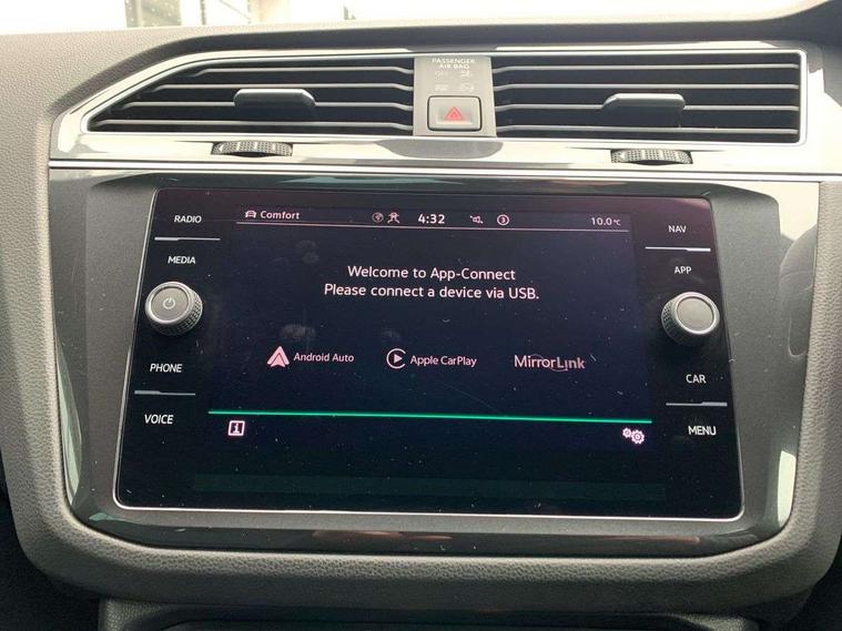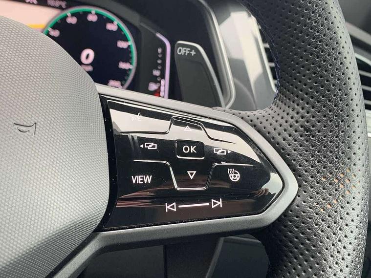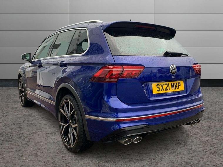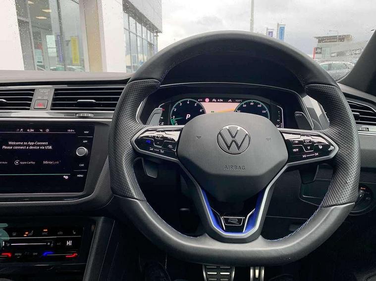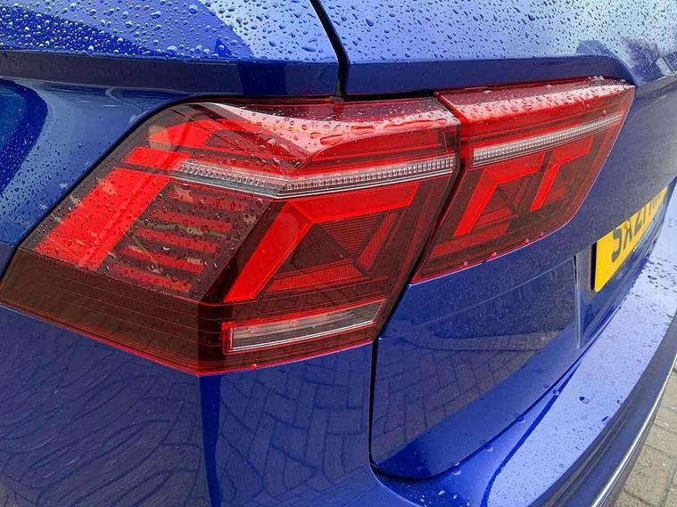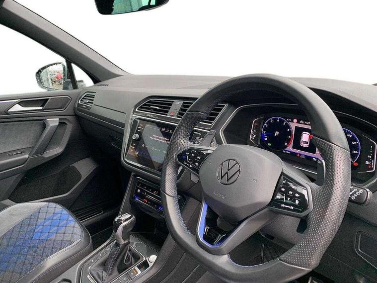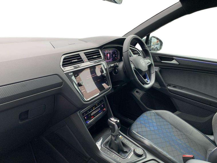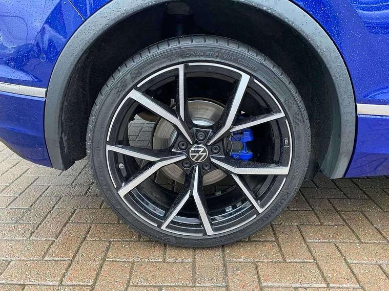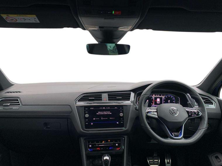 Adaptive cruise control ACC stop and go including speed limiter, App-Connect incl. App-Connect Wireless for Apple CarPlay and Android Auto, Bluetooth phone integration system, Digital Cockpit Pro - Active info display, Distance control assist, Driver alert system, Driver profile selection, Dynamic road sign display, eCall emergency call system, Electromechanical speed sensitive power steering, Keyless entry with full electric tailgate operation, Lane keeping system Lane Assist, Lights on warning, Multifunction front facing camera, Outside temperature display, Premium multifunction display with multi colour display, Service interval indicator, Start/stop system with regenerative braking, Tailgate/trunk lid unlocking from outside, Warning sound and light for doors and tailgate open, ACC - Adaptive chassis contol with adaptive dampers, Battery regeneration during braking, XDS electronic differential lock for improved traction and handling, 2 USB-C ports in the front, 1 USB-C charging socket on the center console in the rear, Diversity antenna for FM reception, Radio, SD card slot, Simultaneous pairing of 2 compatible mobile devices, SMS functionality - read, compose and send SMS messages using touch-screen display, Title and cover art display, Auto dimming interior rear view mirror, Automatic headlight control system, Body colour door handles, Chrome matt mirror covers, Chrome moldings on the side windows, Coming/leaving home lighting function, Dynamic headlight range control, Front and rear electric windows, Heated rear window, High level 3rd brake light, IQ light-Adv high beam, Dynamic light assist for LED matrix headlamp+LED separate DRL+DCL, dark red rear LED tech, Poor weather light+ cornering light, Laminated safety glass windshield, heat and sound insulating, LED rear number plate lights, License plate carrier in front and rear, Poor weather light and cornering light, Power adjustable, folding and heated door mirrors with surround lighting, front passenger exterior mirror lowering function, Privacy glass for rear side windows and rear window, R-Logo light projection, R-Logo on radiator grille with side panels and rear, R-specific diffuser, painted black with cut out for trailer hitch, R-Specific front and rear bumpers, Rain sensor windscreen wipers, Rear fog lamp, Rear spoiler in R style, Rear windscreen washer and wiper with interval delay, Side and rear windows in heat insulating glass, Silver anodised roof rails, Trailer Stability Programme, Windscreen wipers/ intermittent wipe + 4 position delay, 12V outlet in center console rear and in luggage compartment, 2 cup holders in front, 2 LED front reading lights, 2 LED rear reading lights, 3 rear headrests, 4 load lashing points, 40:20:40 split folding rear seats, Air Care Climatronic 3 zone automatic climate control with enhanced air filter and controls in the rear, Backrest release for left front seat, Black headlining, Door and side trim panel in foam film, insert in leatherette, Floor mats with R-Logo and stitching, Front footwell illumination, Front seats head restraints (x-adjustment), Height adjustable front seats, Height/reach adjust steering wheel, Instrument lighting white adjustable panel illumination, Interior light with delay, Isofix Preparation 2 Rear child seats, Leather gear knob, Lighting door sill trim at front with R Logo, Lockable cooled glovebox, Luggage compartment lighting, Pedals and footrest in stainless steel, R Performance steering wheel with R button, larger paddle shifters, blue stiching and blue steering wheel clip, R Specific key caps, R-specific sport skin with R Logo in active Info dsiplay, R-taster (direct selection of race mode/ flap control), Rear bench seat asymetrically split folding, longitudinally movable and folding with load-through hatch and center armrest, Remote unlocking for rear seat backrest, Removable luggage cover, Safety optimised front head restraints, Sliding/reclining rear seats, Standard rear seat release, Storage compartment in driver's door, Storage compartment in passenger's door, Storage compartment in rear doors, Storage compartments in luggage area left and right, Storage tray on dashboard, Sun visors with illuminated vanity mirrors, Top front comfort seats, Top sports seats integrated headrest, blue R-Logo in front seats, seat centre panels and outer rear seats in fabric inner side bolster art Velors, Variable boot floor, height adjustable and removable, Ambience pack - Tiguan, Driver assistance pack plus - Tiguan, Easy open and close pack with safelock - Tiguan, 3 point seat belt for centre rear seats, 3 point seat belts with seat belt pretensioners for the outer rear seats, Active bonnet, Curtain airbags for front and rear passengers, Driver/Front Passenger airbags, Drivers knee airbag, Electronic parking brake with auto hold, Electronic Stability Control with driver steering recommendation, ABS, ASR, EDL, EDTC and trailer stabilization, Front assist with autonomous emergency braking (for Adaptive Cruise Control ACC up to 130 mph), Front disc brakes, Front passenger airbag deactivation, Front side airbags, Height adjustable front 3 point seatbelts + pretensioners, Hill hold control, Pedestrian monitoring system, Proactive passenger protection system in combination with front assist, Rear disc brakes, Rigid safety cell with front and rear crumple zones, Two tone horn, Warning sound and light for front seat belts if unfastened, Warning triangle, Anti theft alarm system with interior monitoring, backup horn and towing protection, Anti theft wheel bolts, Central locking system with safelock radio remote control and 2 remote control folding keys, Electronic engine immobiliser, 21" Estoril black with diamond turned surface superlight alloy wheels with Airstop tyres, Tool kit, Tyre mobility kit Includes 12V compressor and tyre sealant,