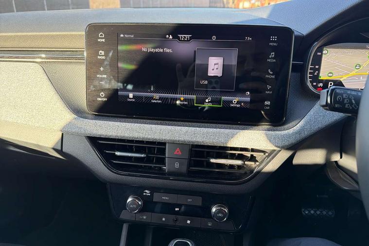 Advanced driver attention and drowsiness monitor, Bluetooth system, E-call, Front assist system, PAS, Rear parking sensors, Rear view camera, Service indicator, Speed limiter, Traffic sign recognition, Virtual cockpit with 10.25" display, Wireless smartlink, 4 USB C ports, 8 Speakers, 9.2" Skoda navigation display, DAB Digital radio, Auto dimming rear view mirror, Automatic headlight control with coming home and leaving home feature, Black roof rails, Body colour bumpers, Body colour door mirrors and handles, Chrome grille surround, Front and rear electric windows, Full LED headlights, Heated rear window, LED brake lights, LED daytime running lights, LED front turning lights, LED high beam, LED low beam, LED third brake light, Rear LED fog light, Rear side wing doors, Rear wiper, Ticket holder inside windscreen, 12V socket in luggage compartment, 3 seat bench in 2nd row, Black hotstamping, Cargo elements, Chrome inner door handles, Driver and passenger sun visors with vanity mirror, Dual zone climate control, Front and rear roof lights, Front centre armrest, Front head restraints, Glove compartment with illumination, Height adjustable driver seat, Height adjustable front passenger seat, Ice scraper, Inner circulation control with pollen filter, ISOFIX on front passenger seat, Isofix preparation for back seats, Krepp recycled decor inserts, Leather gearknob and handbrake lever, Loft cloth upholstery, Manual lumbar support for front seats, Net package and top tether hooks in boot space, Net under rear shelf, Overhead glasses storage compartment, Pocket on the back of both front seats include mobile phone pockets, Rake/reach adjustable steering wheel, Reading lights, Satin black door inserts, Single front passenger seat, Textile floor mats, Third rear headrest, Top tether for front passenger seat, Umbrella in driver's door, 3x3 point rear seatbelts, Airbags - driver and front passenger, Disc brakes, ESP, Extended and predictive pedestrian/cyclist protection, Front passenger airbag deactivation switch, Front side airbags with curtain airbags, Hill hold control, Manual leather parking brake, Manual rear child locks, One tone horn, Seatbelt reminder for driver an co-driver, Traction control, Tyre pressure monitor, Anti-theft alarm system with interior monitoring, backup horn, towing protection and remote central locking with SAFE system, Anti-theft wheel bolts, Electronic engine immobilizer,