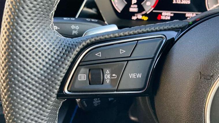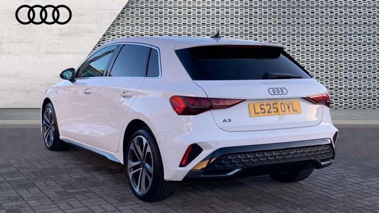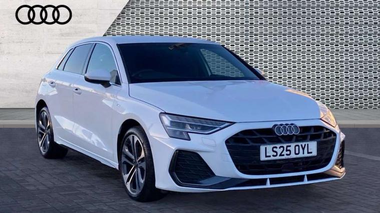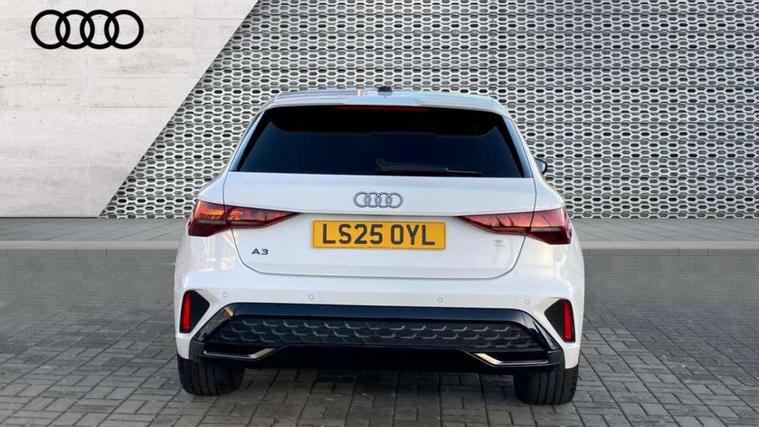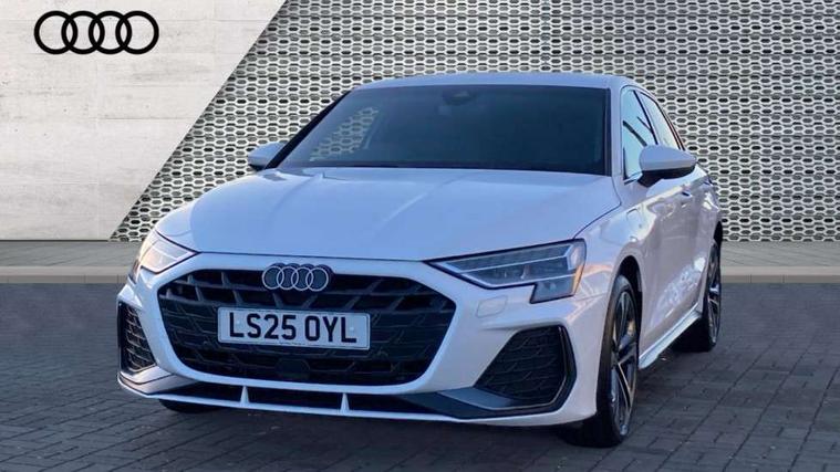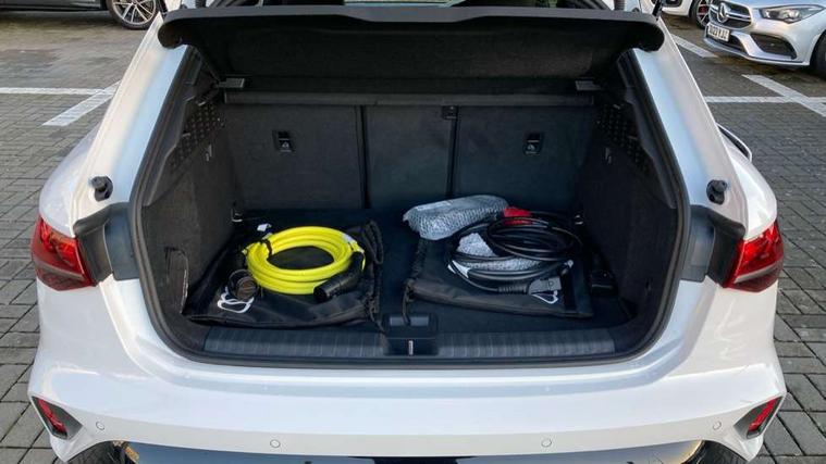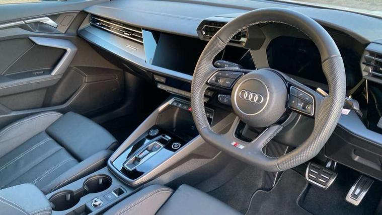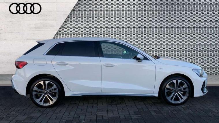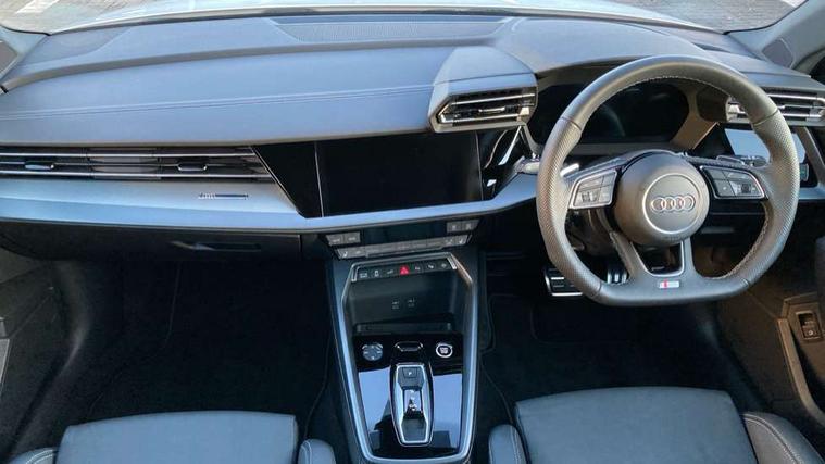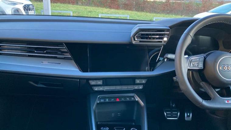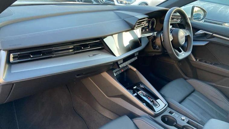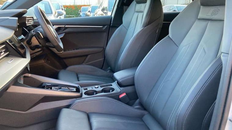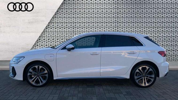 Adjustable speed limiter, Audi drive select, Audi smartphone interface with app store includes wireless Apple carplay, Android auto and Amazon alexa integration, Audi virtual cockpit plus - 12.3" full HD resolution dynamic digital instrument cluster, Automatic start/stop system with recuperation, Bluetooth interface, Camera based traffic sign recognition, Collision avoidance assistant, Cruise control, Distraction and Fatigue warning, e-Call (emergency call), Electromechanical power speed sensitive steering, Lane departure warning system, MMI Navigation Plus with high resolution 10.1" colour touch screen display, Park Assist with parking system Plus, Service indicator, Trip computer, Voice control system with natural language interaction, 3 pin 10 amp domestic charging cable, CCS socket for DC charging, Charging cable for public charging, mode 3 (type 2), up to 22 kW (AC), Compact charging system, Industrial connector CEE 32 A, 230 V, length 1.6 m, Standard suspension, Type 2 socket for AC charging, Audi Phonebox light with wireless charging, Audi sound system - 10 loudspeakers including centre loudspeaker and subwoofer, DAB Digital radio, USB ports with charging function in the rear, Acoustic glass windscreen, Aluminium window trim, Auto dimming frameless rear view mirror, Body colour exterior mirrors, Chrome exhaust tailpipes, Electrically adjustable/heated/folding/auto dimming door mirrors with integrated LED indications + kerb view function for passenger side, Exterior model badging, Front and rear side air inlets in grained matt black with dark liquid chrome frame, Front electric windows, Front radiator grill in high gloss dark chrome, Heat insulating glass windscreen, Illuminated door sills with aluminium inserts at the front with S logo, LED 3rd brake light, LED daytime running lights, LED headlights with LED rear lights and dynamic rear indicators, Light and rain sensors, Privacy glass - dark tinted rear window, rear door and side windows, Rear diffuser and grill in grained matt black with inlay in dark liquid chrome, Rear electric windows, Rear side wing doors, Rear wiper, S line bumpers, S roof spoiler, Side S line emblems on front wings, Side sill trim in dark liquid chrome, 12V socket and storage compartment in front centre console, 3 seat bench in 2nd row, 3 spoke flat bottomed leather multifunction sport steering wheel with gear shift paddles, 3-zone deluxe automatic air conditioning, 4 way electrically adjustable lumbar support for driver and front passenger, 40/20/40 split folding rear seat bench, Black cloth headlining, Convenience auxiliary air conditioning, Front and rear centre armrest in artificial leather, Front and rear centre armrest in artificial leather with contrasting stitching on armrests and instrument panel, Front and rear headrests, Front/rear floor mats, Heated front seats, Height and reach adjustable steering wheel, Manual boot compartment lid, Manually adjustable front seats, Rear cup holders, S badging on the steering wheel, Seat side bolsters, Single front passenger seat, Stainless steel pedals and front footrest in black, Twin leather upholstery with front sports seats S embossed logo, Aluminium interior elements pack - A3 Sportback, Multi-coloured LED interior lighting package - A3, 3x3 point rear seat belts, Acoustic vehicle alerting system, Driver and front passenger airbag with passenger airbag deactivation, Electronic Stabilisation Control (ESC) including ABS, ASR and EDL, First aid kit with warning triangle and 2 safety vests, Front side airbags with head airbags and interaction airbag, Hill hold assist, Pre-sense front with pedestrian and cyclist detection, Seatbelt monitoring, Tyre pressure loss indicator, Anti theft alarm, Anti-theft wheel bolts, Electronically operated child locks, Immobiliser, Remote central locking with safelock, Dash & door Inlay in dark aluminium Spectrum, Tyre repair kit,