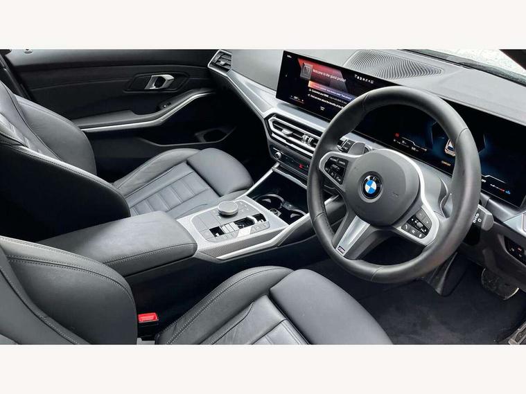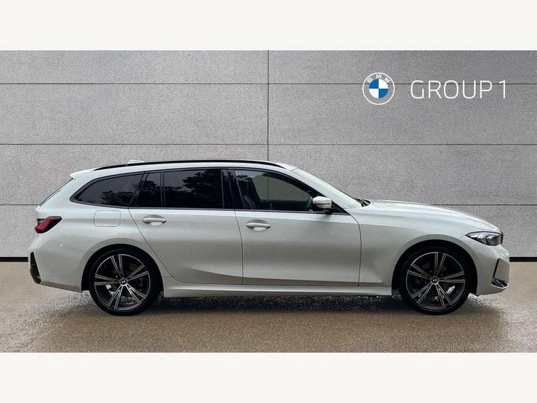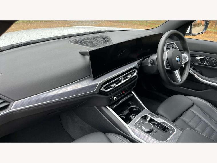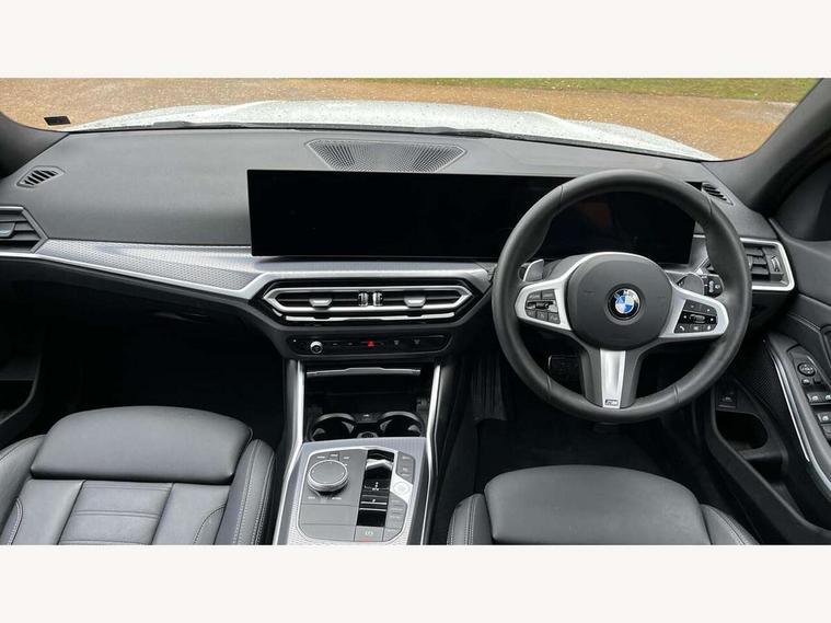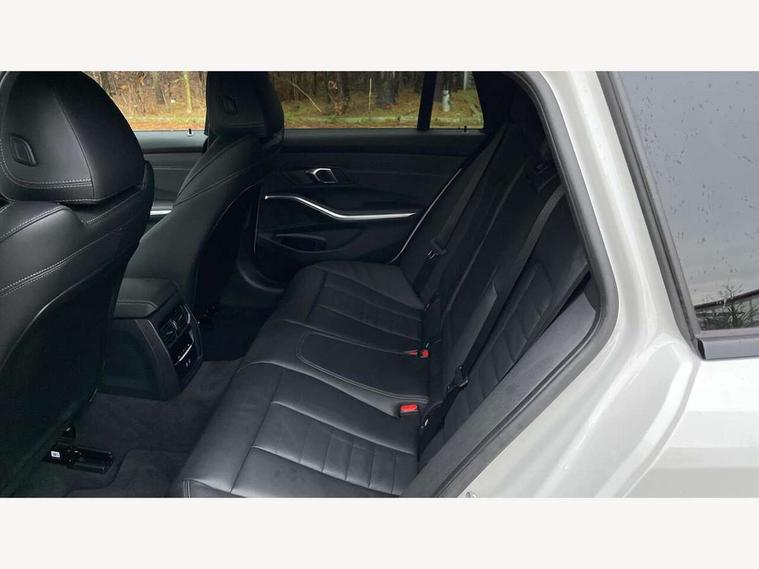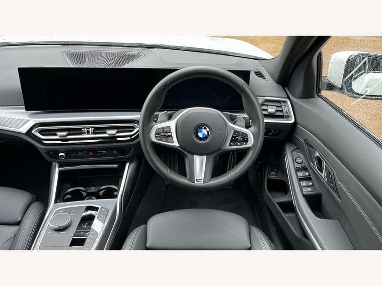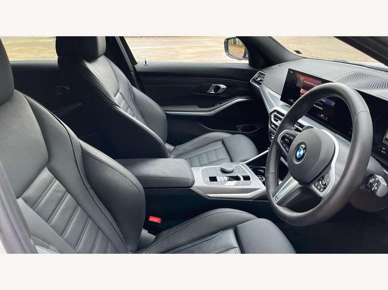 Active guard plus, Attentiveness assist, Automatic Start/stop button, BMW iDrive, BMW Teleservices, Condition based service, ConnectedDrive Services, Driving experience switch, Electric bootlid, Live cockpit plus with Navigation + 12.3" instrument display + 14.9" display, Intelligent voice assist, 2 USB, 4G LTE connect, Oil sensor for level and grade, PAS, Preparation for driver assistance, Shifting point display, Variable sport steering, Double joint spring strut front axle, Fuel tank breather system, Sport automatic transmission with steering-wheel mounted gearshift paddles and launch control, DAB tuner, 3rd brake light, Auto dimming rear view mirror, Auto dimming with folding wing mirrors, Automated High beam assist, Automatic headlight beam throw control with load dependent regulating reaction, dynamic compensation of braking dive and acceleration squat, BMW emblem, engine compartment lid and tailgate, Body colour roof fin, Door sill strips, Electric windows - front and rear, with open/close fingertip control, anti-trap facility and comfort closing, Follow me home headlight function, Front and rear bumper system with replaceable deformation elements, Front apron plastic in body colour, Fuel filler flap - right rear in body colour, Heated washer jets, High gloss shadow line exterior trim, High gloss shadow line roof rails, Illuminated bow type door handles in body colour drivers side with door lock, Interior rear view electrochromatic mirror with automatic anti dazzle function, LED headlights with LED daytime running lights and LED turn indicator, LED rear lights, Licence plate panel integrated into front bumper and tailgate, Matt black B-pillar finsher, Matt black window recess cover, Model designation on right side of tailgate, One piece front bumper cover including towing eye cover in body colour, Rain sensor with automatic headlight activation, Rear side wing doors, Rear wiper, Reversing lights, Side frame decorative moulding black matt, Visible exhaust tailpipe finisher, Welcome lights in interior and door handle area, 12V power socket in front storage compartment, 2 front cupholder in centre console with clamping elements and matt black inlay, 3 seat bench in 2nd row, 3 zone automatic air conditioning, 40:20:40 split folding rear seat with loading system, Ambient inside door handle light, Ambient light design projected onto the left and right entering and exiting area, Ambient storage compartment lighting in the centre console, Anthracite headlining, Armrest integrated in front and rear door trim + front centre console armrest, BMW ID, Contour lighting in instrument panel and door trim panel, Cruise control operation in steering wheel, Driving experience mode switch, Extended storage, Folding rear centre armrest with 2 cupholders, Front and rear ambient footwell lighting, Front and rear door exit lighting (left / right), Front and rear headrests, Front and rear reading lights, Front and rear velour floor mats, Heated front seats, Height adjustable mechanically and infinitely variable steering column, Illuminated armrest storage compartment, Illuminated glove compartment, Illuminated luggage compartment, Lashing eyelets in luggage compartment, M Sport multifunction leather steering wheel, Make-up mirror lights, Single front passenger seat, Standard seat for driver and passenger with manual adjustment, Sunvisors with illuminated vanity mirrors and ticket pocket, Toolkit located in luggage compartment, Connected pack professional - 3 Series Saloon/Touring, Interior and exterior mirror pack - 3 Series Touring/Saloon, M Aerodynamics package - 3 Series Saloon/Touring, M sport exterior styling pack - 3 Series Saloon/Touring, Parking assistant pack - 3 Series, Storage compartment pack - 3 Series Saloon/Touring, 3x3 point rear seatbelts, BMW emergency call, Child locks on rear doors, Crash sensor activating of airbags, Unlocking doors, hazard warning lights, interior light, safety battery terminal, Driver and front passenger with seat occupancy detection for driver's and passenger side, Driver and passenger side airbags, body protection at side and airbags deploy from seat backrests, Dynamic brake control, Dynamic stability control + (DSC+) - Anti-lock Braking System (ABS) with brake assist and cornering brake control + Automatic Stability Control (ASC), Dynamic Traction Control - DTC, Electric parking brake including automatic hold function and automatic release of the parking brake when driving off, Electronic differential lock control (EDLC), Front airbag deactivation, Head airbags in 1st and 2nd row, head protection at side, curtain airbags open from headliner above 1st and 2nd row, Plastic fuel tank, Side impact protection, Tyre pressure monitoring with three level warning strategy, Ventilated front and rear disc brakes, Warning triangle and first aid kit, Alarm system, Centre lock switch, Closing system with central locking, Electronic vehicle immobiliser, Locking wheel bolts, Tyre repair kit,
