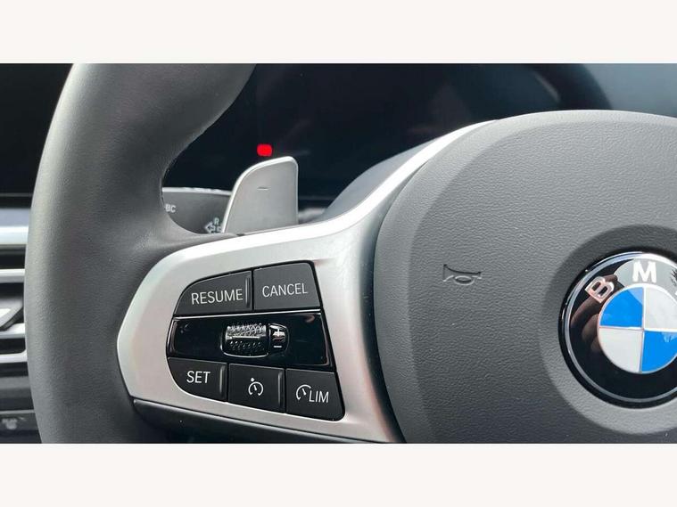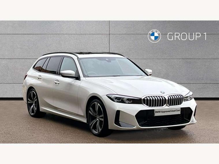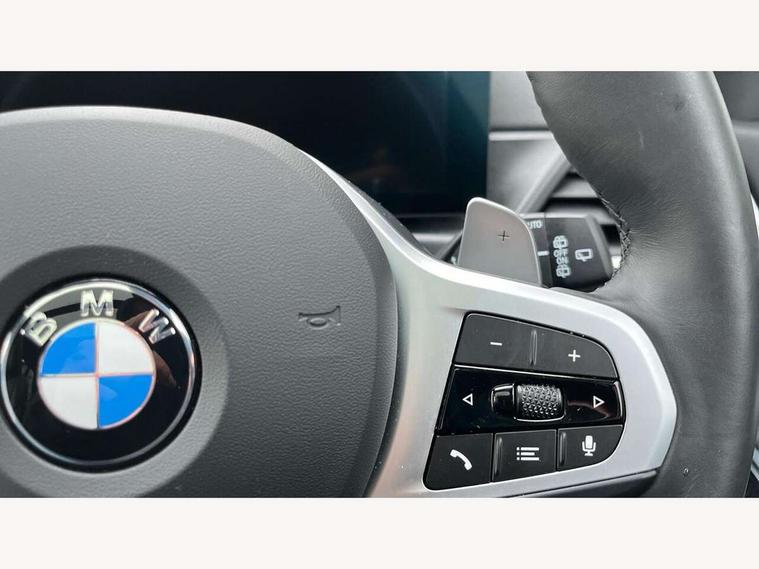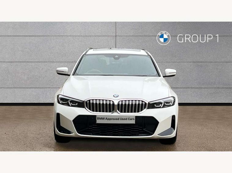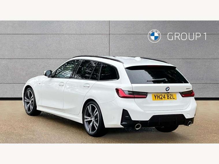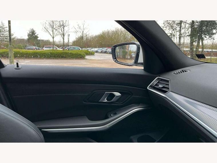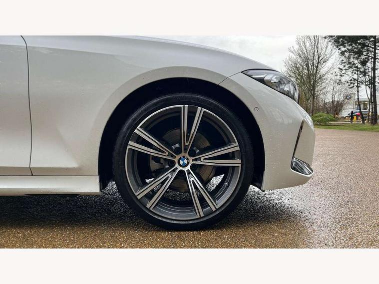 Active guard plus, Attentiveness assist, Automatic Start/stop button, BMW iDrive, BMW Teleservices, Condition based service, ConnectedDrive Services, Driving experience switch, Electric bootlid, Live cockpit plus with Navigation + 12.3" instrument display + 14.9" display, Intelligent voice assist, 2 USB, 4G LTE connect, Oil sensor for level and grade, PAS, Preparation for driver assistance, Shifting point display, Variable sport steering, Double joint spring strut front axle, Fuel tank breather system, Sport automatic transmission with steering-wheel mounted gearshift paddles and launch control, DAB tuner, 3rd brake light, Auto dimming rear view mirror, Auto dimming with folding wing mirrors, Automated High beam assist, Automatic headlight beam throw control with load dependent regulating reaction, dynamic compensation of braking dive and acceleration squat, BMW emblem, engine compartment lid and tailgate, Body colour roof fin, Door sill strips, Electric windows - front and rear, with open/close fingertip control, anti-trap facility and comfort closing, Follow me home headlight function, Front and rear bumper system with replaceable deformation elements, Front apron plastic in body colour, Fuel filler flap - right rear in body colour, Heated washer jets, High gloss shadow line exterior trim, High gloss shadow line roof rails, Illuminated bow type door handles in body colour drivers side with door lock, Interior rear view electrochromatic mirror with automatic anti dazzle function, LED headlights with LED daytime running lights and LED turn indicator, LED rear lights, Licence plate panel integrated into front bumper and tailgate, Matt black B-pillar finsher, Matt black window recess cover, Model designation on right side of tailgate, One piece front bumper cover including towing eye cover in body colour, Rain sensor with automatic headlight activation, Rear side wing doors, Rear wiper, Reversing lights, Side frame decorative moulding black matt, Visible exhaust tailpipe finisher, Welcome lights in interior and door handle area, 12V power socket in front storage compartment, 2 front cupholder in centre console with clamping elements and matt black inlay, 3 seat bench in 2nd row, 3 zone automatic air conditioning, 40:20:40 split folding rear seat with loading system, Ambient inside door handle light, Ambient light design projected onto the left and right entering and exiting area, Ambient storage compartment lighting in the centre console, Anthracite headlining, Armrest integrated in front and rear door trim + front centre console armrest, BMW ID, Contour lighting in instrument panel and door trim panel, Cruise control operation in steering wheel, Driving experience mode switch, Extended storage, Folding rear centre armrest with 2 cupholders, Front and rear ambient footwell lighting, Front and rear door exit lighting (left / right), Front and rear headrests, Front and rear reading lights, Front and rear velour floor mats, Heated front seats, Height adjustable mechanically and infinitely variable steering column, Illuminated armrest storage compartment, Illuminated glove compartment, Illuminated luggage compartment, Lashing eyelets in luggage compartment, M Sport multifunction leather steering wheel, Make-up mirror lights, Single front passenger seat, Standard seat for driver and passenger with manual adjustment, Sunvisors with illuminated vanity mirrors and ticket pocket, Toolkit located in luggage compartment, Connected pack professional - 3 Series Saloon/Touring, Interior and exterior mirror pack - 3 Series Touring/Saloon, M Aerodynamics package - 3 Series Saloon/Touring, M sport exterior styling pack - 3 Series Saloon/Touring, Parking assistant pack - 3 Series, Storage compartment pack - 3 Series Saloon/Touring, 3x3 point rear seatbelts, BMW emergency call, Child locks on rear doors, Crash sensor activating of airbags, Unlocking doors, hazard warning lights, interior light, safety battery terminal, Driver and front passenger with seat occupancy detection for driver's and passenger side, Driver and passenger side airbags, body protection at side and airbags deploy from seat backrests, Dynamic brake control, Dynamic stability control + (DSC+) - Anti-lock Braking System (ABS) with brake assist and cornering brake control + Automatic Stability Control (ASC), Dynamic Traction Control - DTC, Electric parking brake including automatic hold function and automatic release of the parking brake when driving off, Electronic differential lock control (EDLC), Front airbag deactivation, Head airbags in 1st and 2nd row, head protection at side, curtain airbags open from headliner above 1st and 2nd row, Plastic fuel tank, Side impact protection, Tyre pressure monitoring with three level warning strategy, Ventilated front and rear disc brakes, Warning triangle and first aid kit, Alarm system, Centre lock switch, Closing system with central locking, Electronic vehicle immobiliser, Locking wheel bolts, Tyre repair kit,
