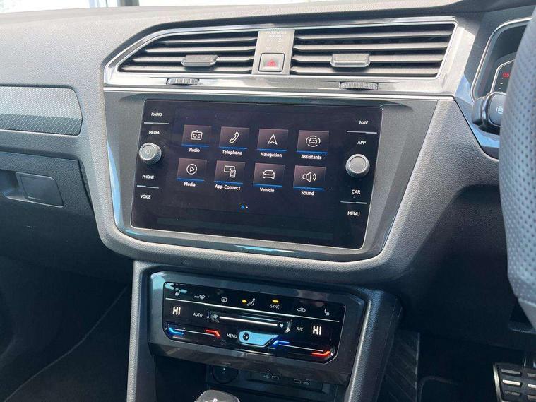 Adaptive cruise control ACC stop and go including speed limiter, App-Connect incl. App-Connect Wireless for Apple CarPlay and Android Auto, Bluetooth phone integration system, Distance control assist, Driver alert system, Driver profile selection, Dynamic road sign display, eCall emergency call system, Electromechanical speed sensitive power steering, Engine start/stop button, Lane keeping system Lane Assist, Lights on warning, Multifunction front facing camera, Outside temperature display, Premium multifunction display with multi colour display, Remote control boot opening, Rev counter, Revision / skills operating concept travel assistant, Service interval indicator, Speed limit display, Start/stop system with regenerative braking, Trip computer, Warning sound and light for doors and tailgate open, Battery regeneration during braking, Diesel particulate filter, Misfuel prevention device for diesel engine, Selective Catalytic Reduction, XDS electronic differential lock for improved traction and handling, 4 X 20 watt output, 8 Speakers, Diversity antenna for FM reception, Radio, SD card slot, Simultaneous pairing of 2 compatible mobile devices, SMS functionality - read, compose and send SMS messages using touch-screen display, Title and cover art display, USB C ports, Auto dimming interior rear view mirror, Automatic headlight control system, Body colour door handles, Chrome moldings on the side windows, Coming/leaving home lighting function, Dynamic headlight range control, Front and rear electric windows, Heated rear window, High level 3rd brake light, Laminated safety glass windshield, heat and sound insulating, LED headlamps with LED separate daytime running light and dynamic cornering light, LED rear combination lamps, LED rear number plate lights, License plate carrier in front and rear, Poor weather light and cornering light, R Line body kit, R Line side sills, Rain sensor windscreen wipers, Rear exhaust tailpipe, Rear fog lamp, Rear side wing doors, Rear spoiler in R style, Rear windscreen washer and wiper with interval delay, Side and rear windows in heat insulating glass, Trailer Stability Programme, Unique R Line badging, Windscreen wipers/ intermittent wipe + 4 position delay, 12V outlet in center console rear and in luggage compartment, 12V outlet in front and tray, 2 cup holders in front, 2 LED front reading lights, 2 LED rear reading lights, 3 bench rear seats in 2nd row, 3 rear headrests, 4 load lashing points, 40:20:40 split folding rear seats, Air Care Climatronic 3 zone automatic climate control with enhanced air filter and controls in the rear, Backrest release for left front seat, Black headlining, Brushed stainless steel pedals and footrest, Carpet mats in front and rear with decorative stitching in Gray, Climate control unit rear with touch function, Door and side trim panel in foam film, insert in leatherette, Front centre armrest, Front footwell illumination, Front seats head restraints (x-adjustment), Height adjustable front seats, Height/reach adjust steering wheel, Instrument lighting white adjustable panel illumination, Interior light with delay, Isofix Preparation 2 Rear child seats, Leather gear knob, Lockable cooled glovebox, Luggage compartment lighting, Luggage net, Rear bench seat asymetrically split folding, longitudinally movable and folding with load-through hatch and center armrest, Remote unlocking for rear seat backrest, Removable luggage cover, Removable rear headrests, Safety optimised front head restraints, Single front passenger seat, Sliding/reclining rear seats, Standard rear seat release, Storage compartment in driver's door, Storage compartment in passenger's door, Storage compartment in rear doors, Storage compartments in luggage area left and right, Storage tray on dashboard, Sun visors with illuminated vanity mirrors, Top front comfort seats, Variable boot floor, height adjustable and removable, Driver assistance pack plus - Tiguan DSG, 3 point seat belt for centre rear seats, 3 point seat belts with seat belt pretensioners for the outer rear seats, Active bonnet, Curtain airbags for front and rear passengers, Driver/Front Passenger airbags, Drivers knee airbag, Electronic parking brake with auto hold, Electronic Stability Control with driver steering recommendation, ABS, ASR, EDL, EDTC and trailer stabilization, Front assist with autonomous emergency braking (for Adaptive Cruise Control ACC up to 130 mph), Front disc brakes, Front passenger airbag deactivation, Front side airbags, Height adjustable front 3 point seatbelts + pretensioners, Hill hold control, Manual child proof rear door locks, Pedestrian monitoring system, Power assisted brakes, Proactive passenger protection system in combination with front assist, Rear disc brakes, Rigid safety cell with front and rear crumple zones, Two tone horn, Warning sound and light for front seat belts if unfastened, Anti theft alarm system with interior monitoring, backup horn and towing protection, Anti theft wheel bolts, Electronic engine immobiliser, Tool kit,