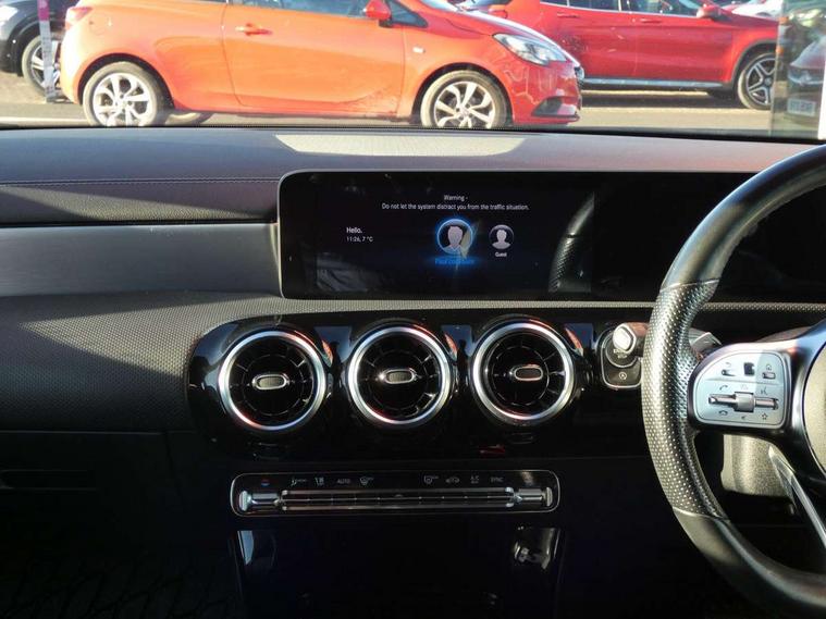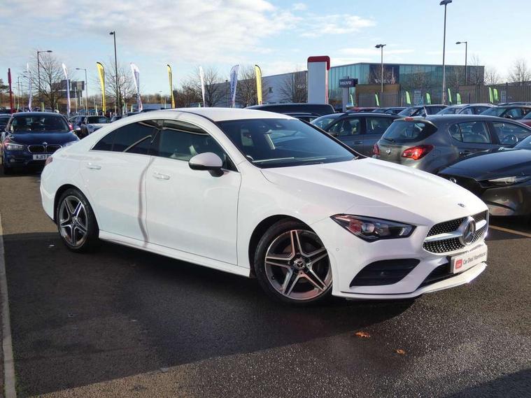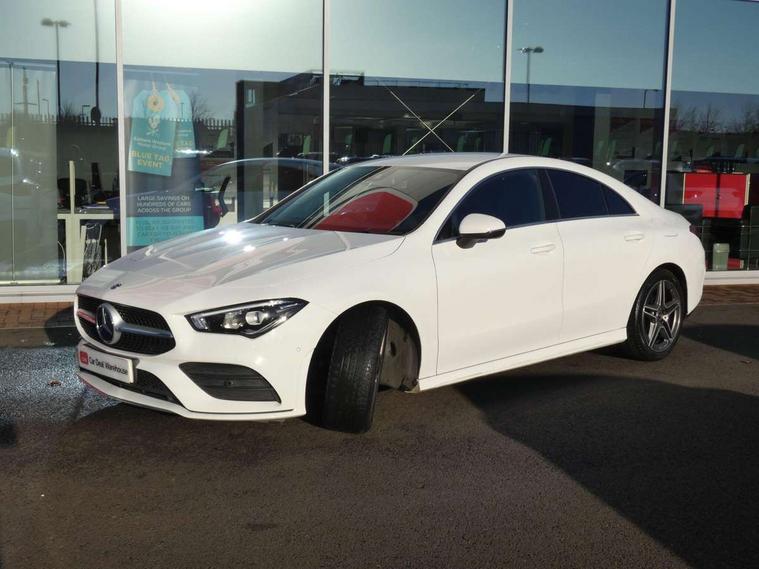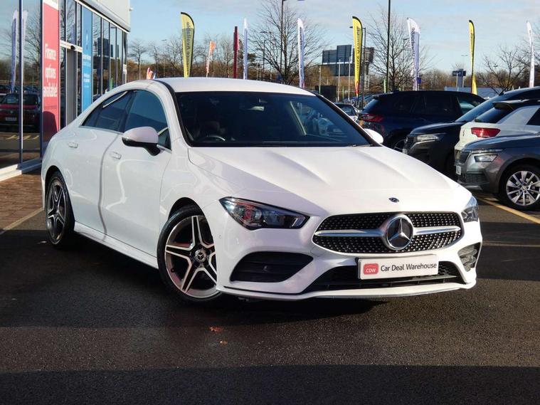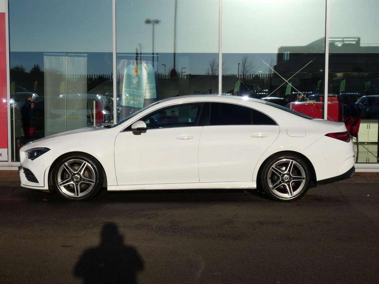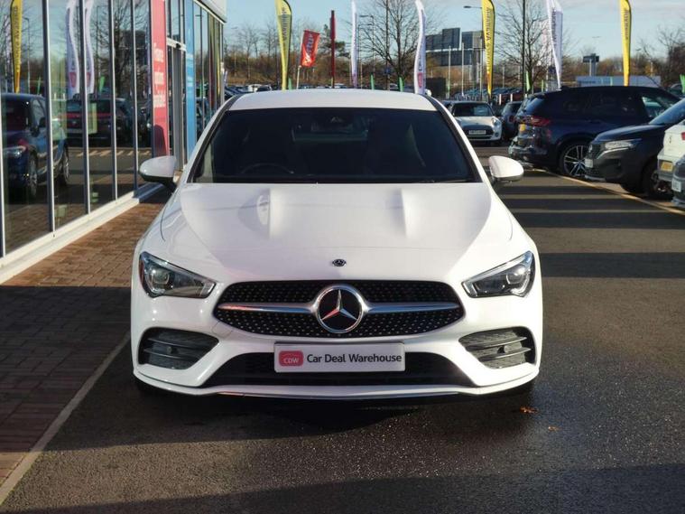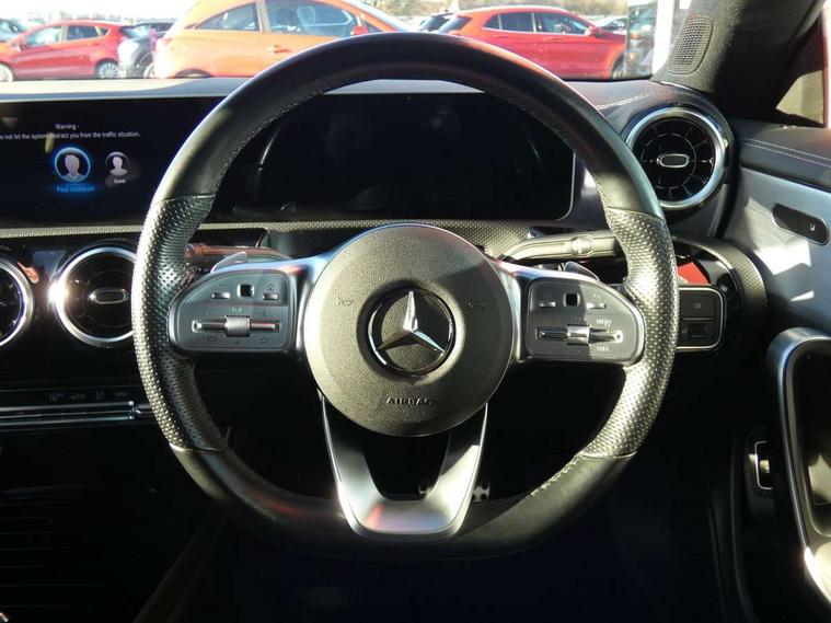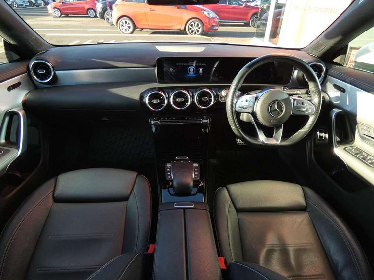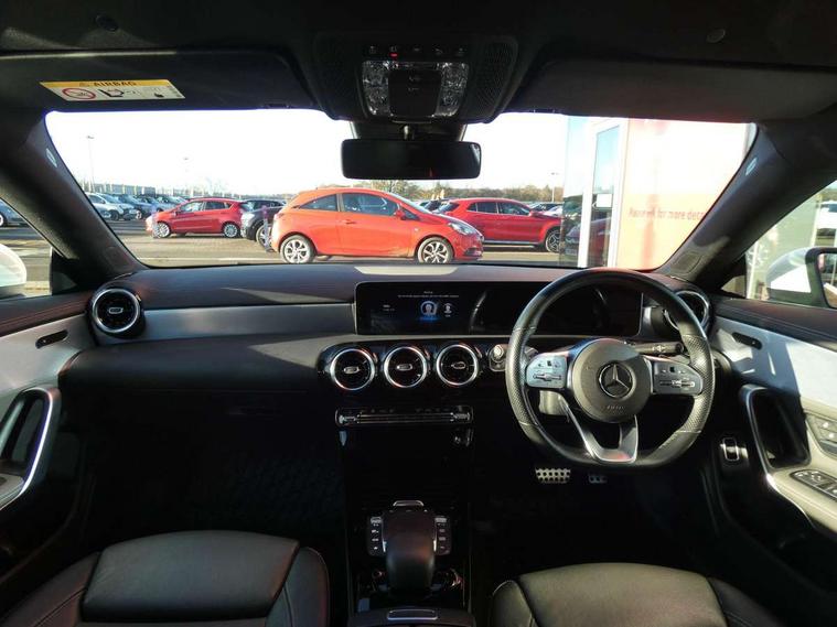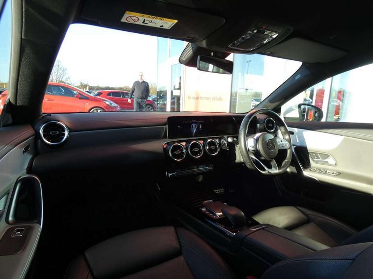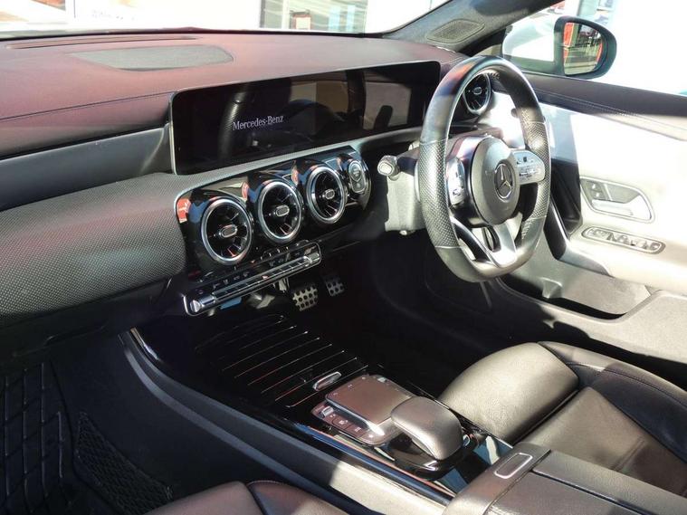 10.25 inch touchscreen media display, 7 inch Instrument display with digital cockpit, Active lane keeping assist, Attention assist - Monitors steering behaviour and long journey fatigue, Cruise control with limiter, Direct steer system with speed sensitive power steering, Dual bluetooth interfaces, DYNAMIC SELECT with a choice of driving modes (ECO, Comfort, Sport, Sport+ and Individual), ECO start/stop function, Fluid level warning indicator for fuel, oil, coolant and washer fluid, Hard-disk navigation, Hey Mercedes Voice activation, Lamp failure indicator, MBUX multimedia system with DAB digital radio and touchpad including satellite navigation, Mercedes me connect including emergency call system, accident recovery, breakdown management and maintenance, Outside temperature gauge, Owners manual and service booklet in English, Pre-installation for Vehicle Monitoring, Pre-installation for Vehicle Setup, Pre-installation of private car share, Preinstallation for Mercedes Benz link, Radio aerial integrated into front and rear windshields, Service indicator (ASSYST), Smartphone integration with Apple CarPlay and Android auto, Speed limit assist, Trip computer in multifunction display with current consumption indicator, Wireless charging, 7G-DCT 7 speed automatic transmission, Lowered comfort suspension, Rear axle multi-link, DAB digital radio tuner, Mercedes Benz sound system (100 W) with 6 speakers, USB (type C) ports (2) in stowage compartment and 1 in front of centre console, Adaptive brake lights, AMG body styling with AMG front apron and rear apron and visible exhaust tailpipe in chrome trim elements, AMG bodystyling side skirts, Body colour bumpers, Body colour door handles, Chrome beltline strips, Diamond radiator grille pins in chrome with silver painted louvres and chrome insert, Electric windows, Electrically adjustable and heated door mirrors with integrated LED indicators, Exhaust system with 2 Visible tailpipe trim elements and rear apron with trim in chrome, Headlamp assist automatic headlamp activation, Heated glass rear windscreen + timer control, High level LED third brake light, LED high performance headlamps with integrated LED daytime running lights, LED tail lamp, Privacy glass with dark tinting on rear side windows and rear window, Rain sensing windscreen wipers with two sensitivity settings, Rear fog lamp, Vehicle Monitoring, Vehicle Setup, Window line trim strip in chrome, 3 spoke flattened bottom nappa leather multifunction steering wheel with perforated leather in grip area, 40:20:40 split folding rear seats with backrest, Air conditioning - Two zone thermotronic luxury automatic climate control with display, Air vents with surround in silver chrome, Automatic child seat recognition sensor, Black roof lining, Brushed stainless steel sports pedals with rubber studs, Floor mats with stitched AMG lettering, Front centre armrest with stowage, Front door sills with Mercedes benz lettering, Front seat cushion length adjustment, Galvanished gear shift paddles on steering wheel, Heated front seats, Illuminated glove compartment stowage, Luggage net on driver/front passenger seat backrest, Manually adjustable front seats, Manually height and reach adjustable steering column, Rear head restraints, Rear interior lamp, Spectacles compartment for driver, Sport seats with fixed head restraints, Stowage compartment in centre console with retractable cover, Sunvisors with illuminated vanity mirrors, Touchpad on center console, Twin front cupholders, Two outer rear seat isofix and top tether child seat fixing points, Light and sight pack - CLA, Mirror pack - CLA, Parking package - CLA, Seat comfort pack - CLA, Active bonnet pedestrain safety measure which detects an impact and raises bonnet by 65mm, Active brake assist includes forward collision warning system with autonomous braking, Adaptive brake assist with hold function and hill start assist, Anti-lock braking system (ABS), Black seat belts, Bonnet with power domes, Brake pad wear warning indicator, Childproof locks manually operated for rear doors and electrically operated for rear power windows, Crash responsive emergency lighting, Driver and front passenger head and sidebags, Driver and front passenger windowbags, Drivers knee airbag, Dual stage driver and front passenger airbags, Electric parking brake, Electronic stability programme with acceleration skid control, ESP curve dynamic assist, Front and rear seatbelt reminder, Front brake callipers with Mercedes Benz lettering, Front passenger seat occupancy sensor, Three point rear seat belts, Tyre pressure monitoring system, Warning triangle and first aid kit, Alarm system with immobiliser and interior protection -Thatcham category 1, Keyless Go starting function, Remote central locking and crash sensor with emergency opening function, Light aluminium with longitudinal grain interior trim, 18" 5 twin spoke design alloy wheels painted in titanium grey with high sheen finish, Summer tyres, Tirefit tyre sealant kit,