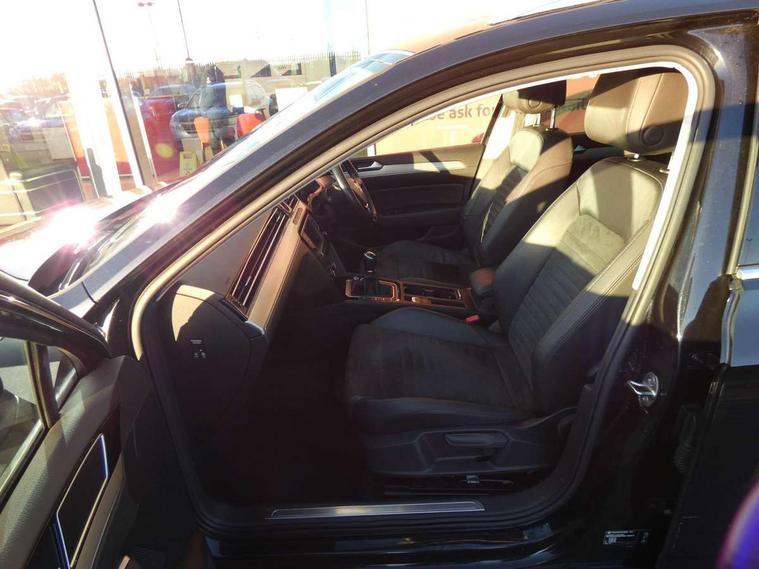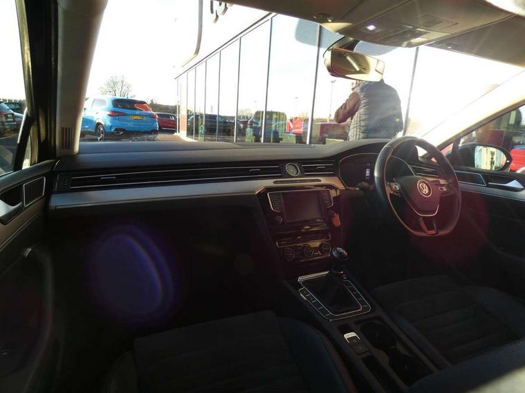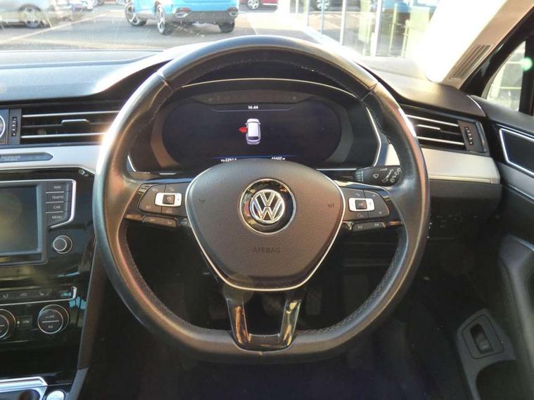 Adaptive cruise control, Analogue clock, Door/tailgate open warning lights, Driver alert system, Driver profile selection, Exterior temperature gauge with frost alarm, Information display, Low washer fluid warning light, Multifunction computer, Remote fuel flap release, Remote tailgate release, Rev counter with fuel gauge, Service interval indicator, Speed limiter, Warning buzzer and light for front seatbelts unfastened, Auxiliary socket for external device, Composition media system with Radio/CD/MP3, DAB Digital radio, MDI with USB/iPod connection cables, SD card slot, Auto dimming driver's door mirror, Auto dimming rear view mirror, Automatic activation of hazard warning lights, Automatic coming/leaving home lighting function, Automatic headlights with dusk sensor, Body colour bumpers, Body colour door handles, Body coloured door mirrors, Chrome fog light surround, Chrome louvres in grille, Chrome side sills, Chrome side window surrounds, Chrome surround for air intake, Electric front windows, Electric panoramic sunroof with sunblind, Electric rear windows, Electrically adjustable and heated door mirrors, Front fog lights with static cornering function, Gloss black finish on B pillar, Headlight range control, Heated rear window, LED rear lights, Load sill protection, Rain sensor, Rear wiper, Remote folding door mirrors and puddle lights, Reverse activated kerb-view adjustment on passenger's door mirror, Silver roof rails, Trailer stability assist, Windscreen wipers/ intermittent wipe + 4 position delay, 12V Accessory socket in centre console, 12V socket in luggage compartment, 3 rear head restraints, 3 spoke multi-function leather steering wheel, 3 Zone electronic climate control with automatic air recirculation, 4 boot load lashing points, 40:20:40 split folding rear bench seat, Driver's cushion tilt adjust, Entry lights on doors, Front + rear carpet mats, Front and rear interior lighting with delay and dimming function, Front centre armrest with storage compartment, Front comfort seats, Front cupholders x2 with covers, Front door pocket bottle holders, Height adjustable head restraints, Height/reach adjust steering wheel, Leather gearknob, Load through provision, Lockable, illuminated, cooled glovebox, Luggage compartment cover, removable, Luggage compartment lighting, Rear centre armrest with cupholder and storage, Storage compartment in driver's door, Storage compartment in passenger's door, Storage compartment in rear doors, Storage compartment in roof console, Storage pockets in backrests of front seats, Sunvisors with illuminated vanity mirrors, Variable boot floor, Ambient lighting pack - Passat, Winter pack - Passat - heated front seats, 3 rear 3 point seatbelts, ABS, brake assist and EBD, Automatic post collision braking, Curtain airbags, Door open warning reflectors, Driver/Front Passenger airbags, Driver/Front passenger WOKS head restraints, Drivers knee airbag, Electronic parking brake with auto hold, ESP with EDL + ASR, First aid kit, Front assist including city emergency braking, Front side airbags, Height adjustable front 3 point seatbelts + pretensioners, Hill hold function, Passenger airbag deactivation system, Pre crash system, Rear seatbelt warning indicator, Rear side airbags, Warning triangle, Alarm with interior protection, Electronic engine immobiliser, Keyless Start, Remote central locking with 2 remote folding keys, Chrome air vent and instrument surround, White instrument dials,