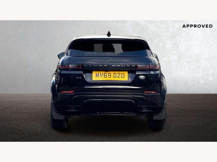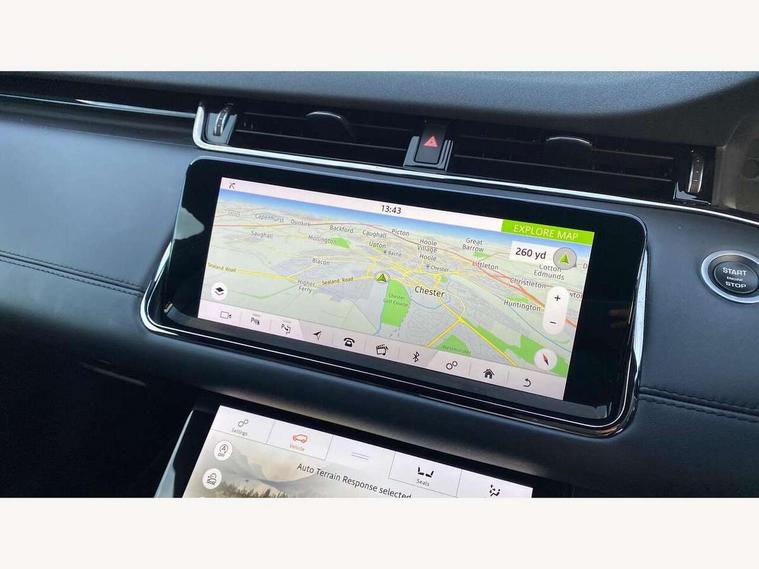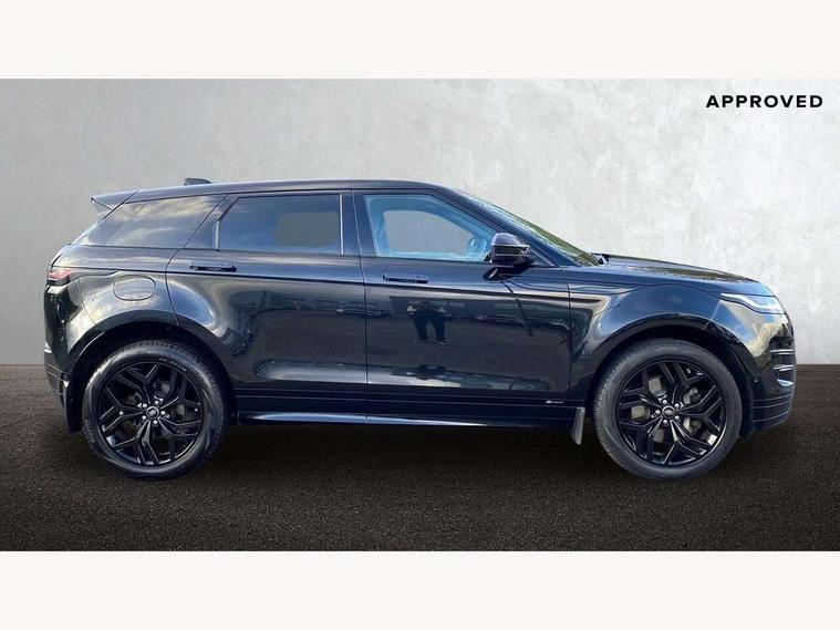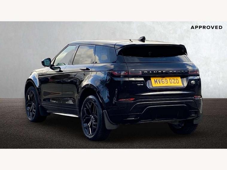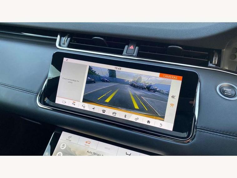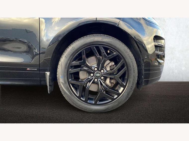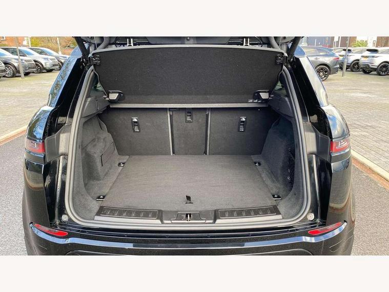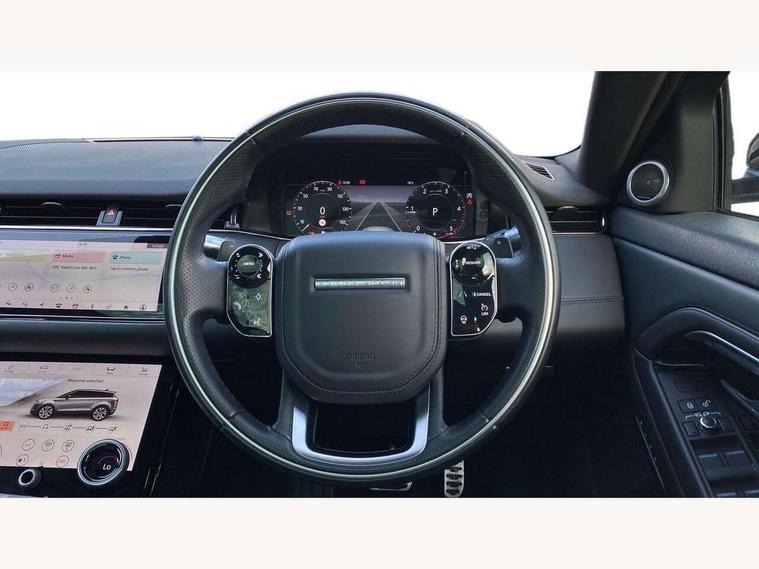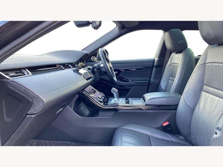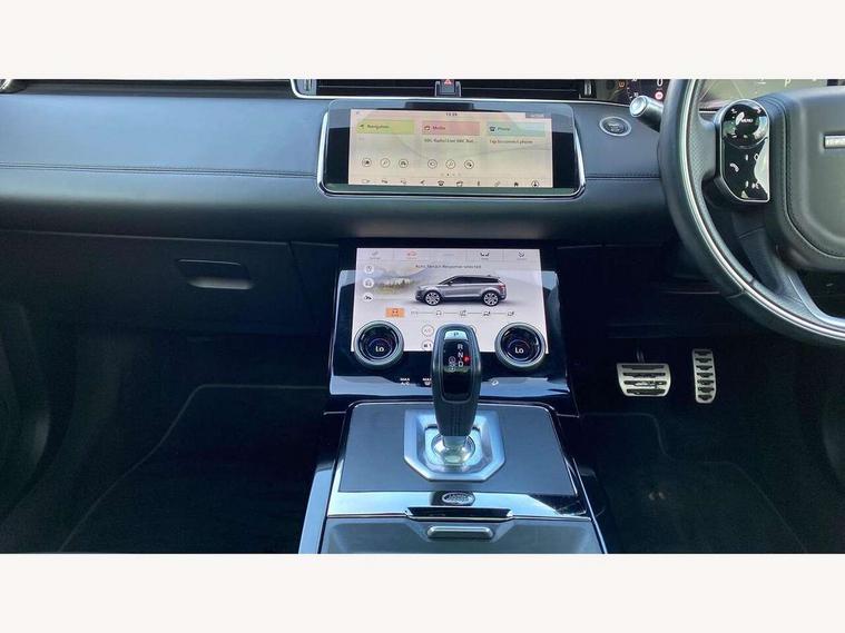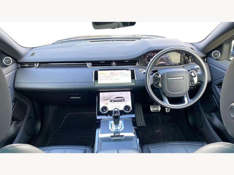 360 degree parking aid, Adaptive cruise control, Android Auto, Apple car play, Blind spot assist, Bluetooth connectivity, Brake pad wear indicator warning light, Clear exit monitor, Driver condition monitor, Duo touch pro, Electronic power assisted steering (EPAS), InControl remote, Interactive Driver display instrument cluster, Land Rover InControl apps, Lane keep assist, Navigation pro system, Park assist - Parallel, perpendicular and parking exit, Powered gesture tailgate/boot lid, Pro services and wifi hotspot, Push button starter, Rear traffic monitor, Smart settings, Traffic sign recognition with adaptive speed limiter, Voice control system, All terrain progress control, Efficient Driveline, Passive suspension, Terrain Response 2 Auto, Digital Audio Broadcast radio-DAB, Steering wheel mounted controls, Automatic headlight levelling, ClearSight interior rear view mirror, Electric windows with one touch open/close and anti trap, Evoque and R-Dynamic badge, Flush deployable exterior door handles, Heated rear window with timer, Heated washer jets, Heated windscreen, Power fold, auto-dimming, heated door mirrors with memory and approach lights, Rain sensing windscreen wipers, Rear fog lights, Shadow atlas bonnet and tailgate script, Tailgate spoiler, 40:20:40 split folding rear seats, Black gearshift paddles, Bright metal pedals, Isofix system on outer rear seats, Overhead lighting console, Overhead stowage for sunglasses, Passive front head restraints, Rear air vents, Rear centre headrest, Sunvisors with illuminated vanity mirrors, Twin front cupholders with cover, Twin sliding front centre armrest, Two zone climate control, Anti-lock braking system (ABS), Customer configurable autolock, DSC - Dynamic Stability Control, Electronic brake force distribution, Electronic parking brake, Electronic traction control, Front and rear seatbelt reminder, High speed emergency braking, Hill descent control, Hill launch assist, Low traction launch, Power operated child locks, Roll stability control, Six airbags - Driver and passenger airbags/driver knee airbag/front side airbag and curtain airbags, Torque vectoring brake, Tyre pressure monitoring system, Alarm, Immobiliser, Intrusion sensor, Keyless entry, Locking wheel nuts,