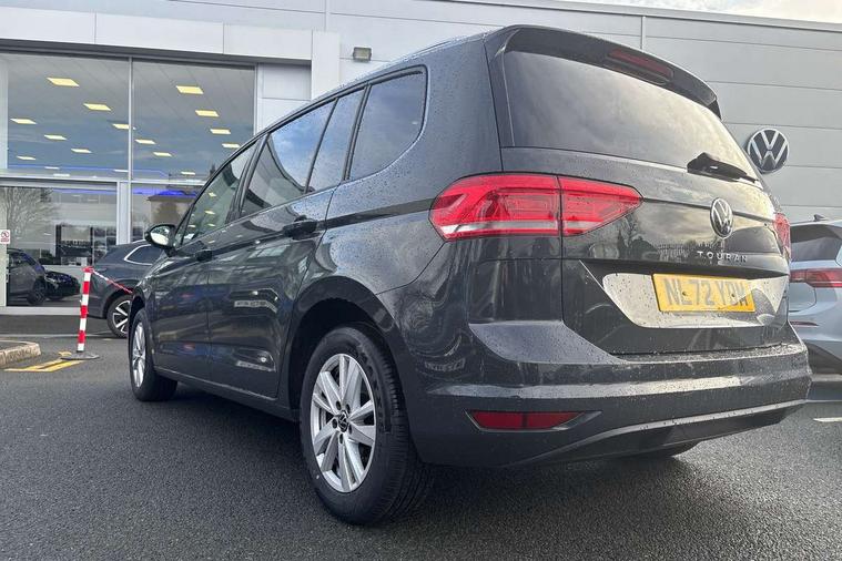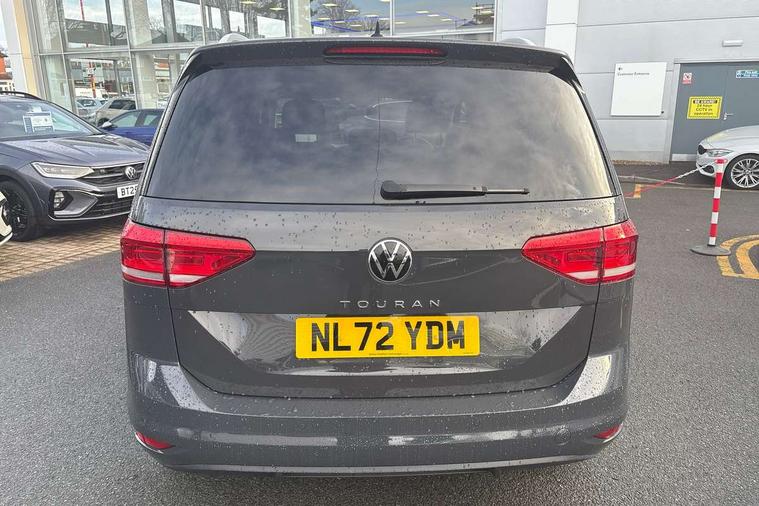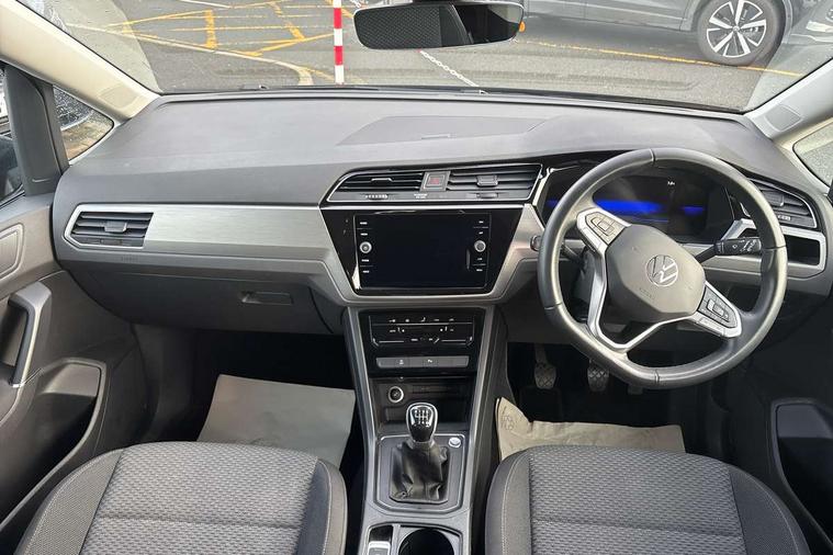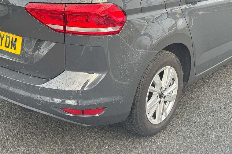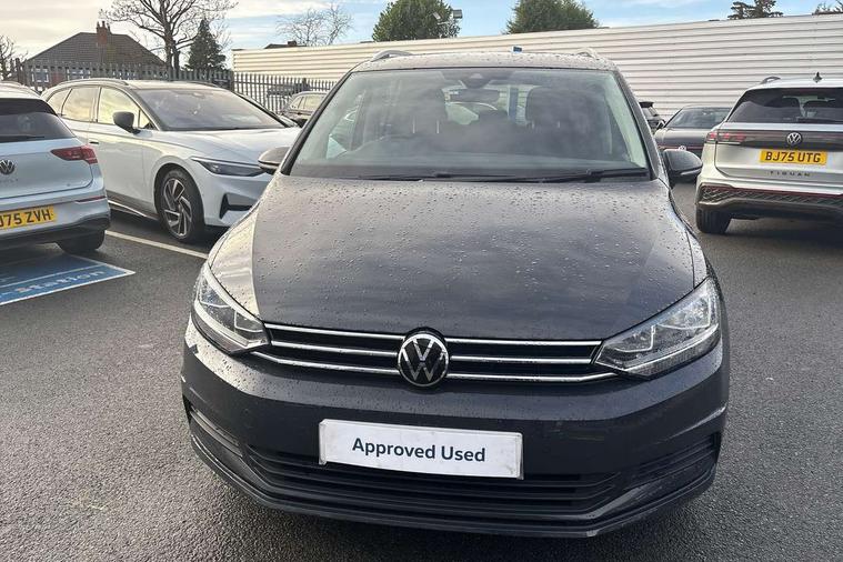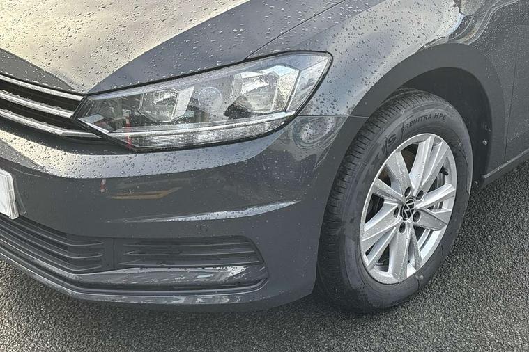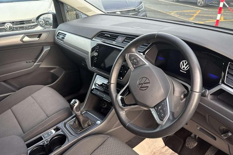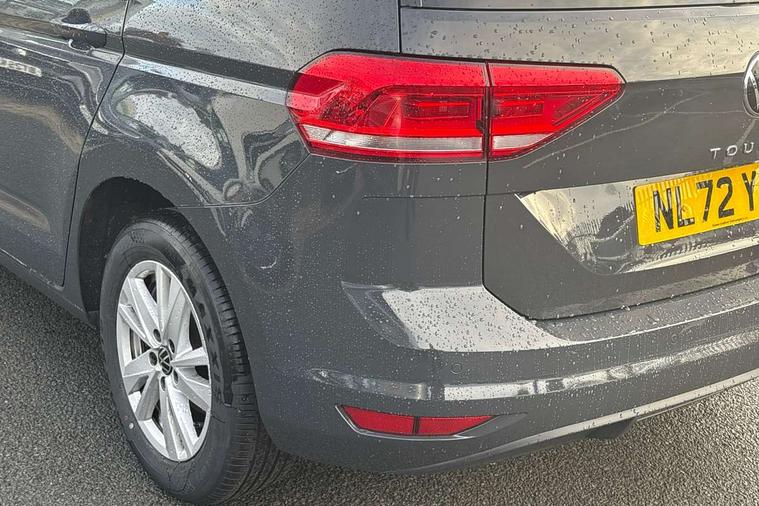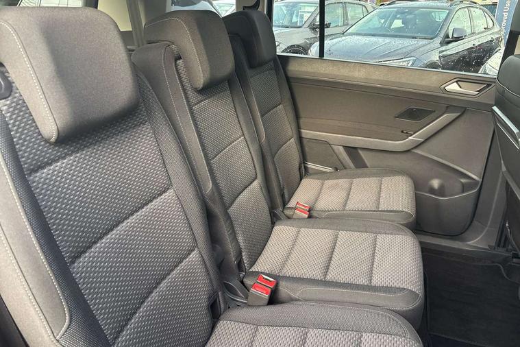 Adaptive cruise control, Audible lights on warning, Bluetooth telephone connectivity, Car information display, Driver alert system, Electronic odometer, Emergency services call system, Extended, crash-active and proactive Pedestrian and cyclist monitoring, External temperature gauge, Lane change system side assist and rear traffic alert, Lane keep assist, Misfuelling protection device, Mobile pairing with SMS function, Multi colour digital cockpit, Multi function display, Rev counter with fuel gauge, Speed limiter, Speed sensitive power steering, Stop/start system, Think blue trainer driver tips and journey analysis, Trip and service interval display, Petrol Particulate Filter, XDS electronic differential lock, 4x20 watt output, 8 Speakers, Audio Connectivity System, DAB Digital radio, External USB-C data socket with increased charging performance - 2 USB sockets 45W, MP3/WMA compatability, SD card slot, Single CD player, Title and cover art display, USB connection, Aerial integrated into side window, Auto dimming door mirrors, on driver side, surround lighting and front passenger side mirror lowering function, Automatic coming/leaving home lighting function, Black front air intake and radiator grilles, Body colour bumpers, Body colour door handles, Body colour door mirrors with integral indicators, Chrome trimmed radiator grille louvre inserts, Electric folding door mirrors, Electric heated + adjustable door mirrors, Front and rear electric windows, Fully galvanised body, Gloss black finish B pillar, Green tinted heat insulating glass, High level third brake light, Rear side wing doors, Rear tinted glass from B-pillar backwards approx 65% tinted, Rear wash/wipe with intermittent wipe setting, Silver roof rails, Tailgate wiper- reverse gear activation, Twin chrome exhaust tailpipes, Volkswagen roundel, Windscreen wipers intermittent wipe, 12V power point for Row 2, 12V socket in luggage compartment, 2 individual fold flat 3rd row seats, 2 three point seatbelts in 3rd row, 2nd row centre armrest, 2nd row centre seat converts into table, 3 single slide/fold/removable 2nd row seats, 3 spoke steering wheel, 3 Zone climatronic with rear conditioning control panel, 3x3 point seatbelts on 2nd row with height adjust on outer seats, 4 boot load lashing points, 4 way adjustable front head restraints, 5 headrests, Driver and front passenger under seat drawer, Dust/pollen filters, Foldable front passenger seat backrest, Front and rear reading lights, Front centre armrest with storage compartment, Front comfort seats with lumbar support, Front cupholders x 2, Front passenger seat height adjust, Front seat storage pockets, Front seatback folding tables, Height adjustable driver's seat, Height/reach adjust steering wheel, Illuminated glovebox, Illuminated vanity mirrors, Instrument lighting white adjustable panel illumination with red night time illumination, Interior light with delay, Isofix on 2nd row outer seats, Isofix on 3rd row seats, Large storage compartment in roof console, Lasano cloth upholstery, Leather multifunction steering wheel with gear knob, Leatherette on rear of front seats, Low tunnel 2nd row seat, Luggage compartment lighting, Media box in dashboard on passenger side, Multi storage in passenger/luggage areas, Multi-function centre console with storage facilities, Retractable luggage cover, Split folding rear seat backrests, Storage bins on all doors, Light and Sight pack - Touran, 3 point height adjustable front seatbelts, Auto hold function, Automatic post collision braking system, Door open warning reflectors, Driver/Front Passenger airbags, Drivers knee airbag, EDL + ASR, Electrically operated child locks on rear doors, Electronic parking brake, Energy recovery system, ESC with ABS, First aid kit, Front and rear (row 2) curtain airbags, Front assist including city emergency braking, Front seat side impact airbags, Front seatbelt pretensioners, Front/rear disc brakes, Hill hold control, Hydraulic Brake Assist (HBA), Loose wheel warning function, Passenger airbag deactivation system, Proactive passenger protection system with front and side assist, Rear child proof door locks, Seatbelt warning lamp and buzzer, Traction control, Two tone horn, Warning triangle, Alarm with remote central locking and interior protection, Electronic engine immobiliser, Brushed design decorative inserts, 16" Karlstad alloy wheels with anti-theft wheel bolts, Tyre mobility system,