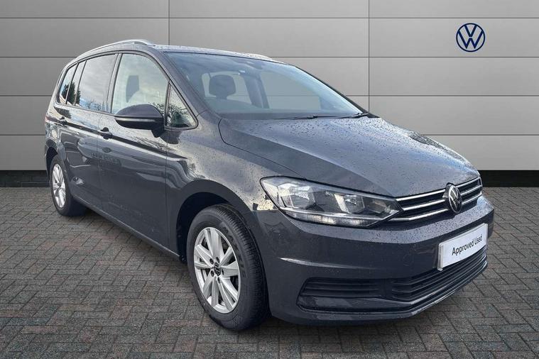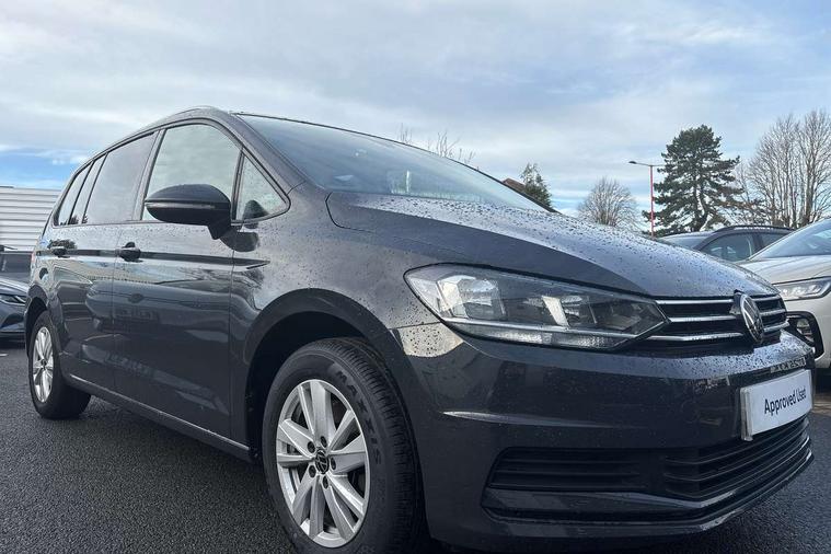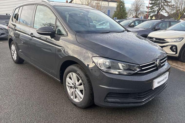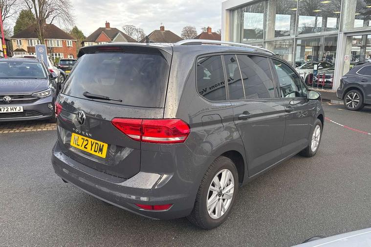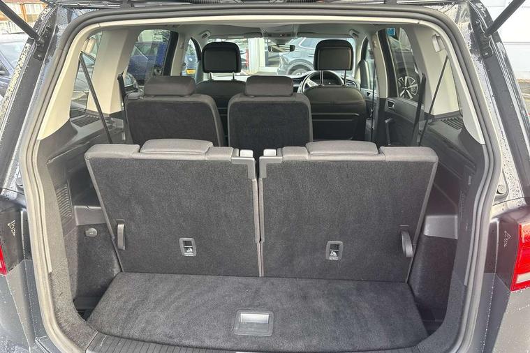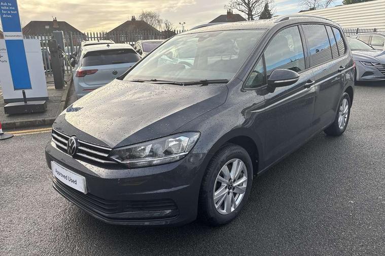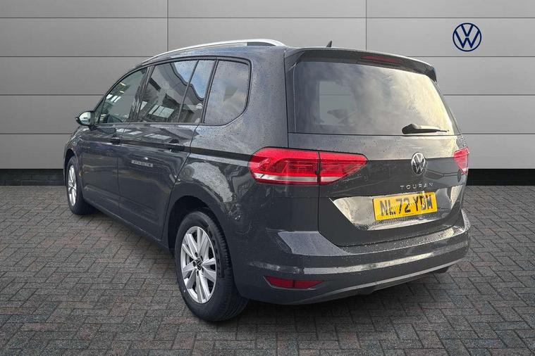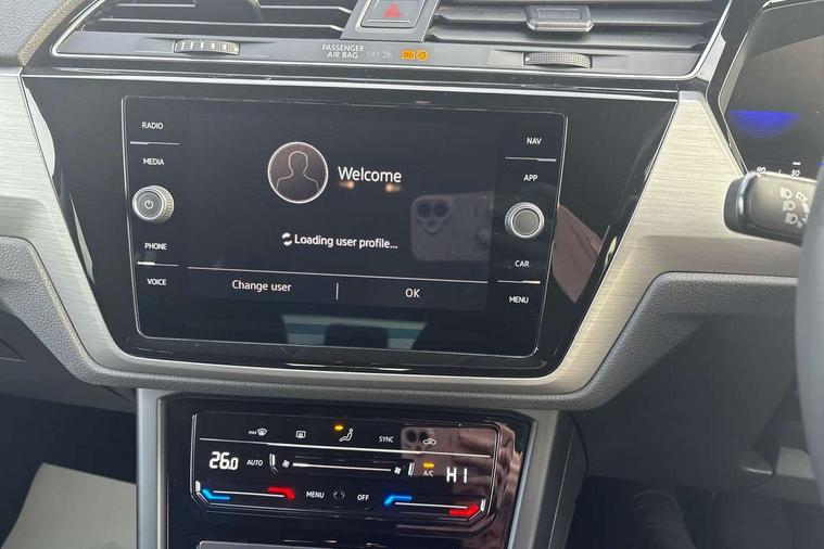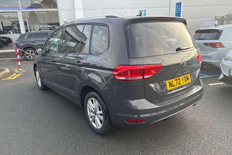 Adaptive cruise control, Audible lights on warning, Bluetooth telephone connectivity, Car information display, Driver alert system, Electronic odometer, Emergency services call system, Extended, crash-active and proactive Pedestrian and cyclist monitoring, External temperature gauge, Lane change system side assist and rear traffic alert, Lane keep assist, Misfuelling protection device, Mobile pairing with SMS function, Multi colour digital cockpit, Multi function display, Rev counter with fuel gauge, Speed limiter, Speed sensitive power steering, Stop/start system, Think blue trainer driver tips and journey analysis, Trip and service interval display, Petrol Particulate Filter, XDS electronic differential lock, 4x20 watt output, 8 Speakers, Audio Connectivity System, DAB Digital radio, External USB-C data socket with increased charging performance - 2 USB sockets 45W, MP3/WMA compatability, SD card slot, Single CD player, Title and cover art display, USB connection, Aerial integrated into side window, Auto dimming door mirrors, on driver side, surround lighting and front passenger side mirror lowering function, Automatic coming/leaving home lighting function, Black front air intake and radiator grilles, Body colour bumpers, Body colour door handles, Body colour door mirrors with integral indicators, Chrome trimmed radiator grille louvre inserts, Electric folding door mirrors, Electric heated + adjustable door mirrors, Front and rear electric windows, Fully galvanised body, Gloss black finish B pillar, Green tinted heat insulating glass, High level third brake light, Rear side wing doors, Rear tinted glass from B-pillar backwards approx 65% tinted, Rear wash/wipe with intermittent wipe setting, Silver roof rails, Tailgate wiper- reverse gear activation, Twin chrome exhaust tailpipes, Volkswagen roundel, Windscreen wipers intermittent wipe, 12V power point for Row 2, 12V socket in luggage compartment, 2 individual fold flat 3rd row seats, 2 three point seatbelts in 3rd row, 2nd row centre armrest, 2nd row centre seat converts into table, 3 single slide/fold/removable 2nd row seats, 3 spoke steering wheel, 3 Zone climatronic with rear conditioning control panel, 3x3 point seatbelts on 2nd row with height adjust on outer seats, 4 boot load lashing points, 4 way adjustable front head restraints, 5 headrests, Driver and front passenger under seat drawer, Dust/pollen filters, Foldable front passenger seat backrest, Front and rear reading lights, Front centre armrest with storage compartment, Front comfort seats with lumbar support, Front cupholders x 2, Front passenger seat height adjust, Front seat storage pockets, Front seatback folding tables, Height adjustable driver's seat, Height/reach adjust steering wheel, Illuminated glovebox, Illuminated vanity mirrors, Instrument lighting white adjustable panel illumination with red night time illumination, Interior light with delay, Isofix on 2nd row outer seats, Isofix on 3rd row seats, Large storage compartment in roof console, Lasano cloth upholstery, Leather multifunction steering wheel with gear knob, Leatherette on rear of front seats, Low tunnel 2nd row seat, Luggage compartment lighting, Media box in dashboard on passenger side, Multi storage in passenger/luggage areas, Multi-function centre console with storage facilities, Retractable luggage cover, Split folding rear seat backrests, Storage bins on all doors, Light and Sight pack - Touran, 3 point height adjustable front seatbelts, Auto hold function, Automatic post collision braking system, Door open warning reflectors, Driver/Front Passenger airbags, Drivers knee airbag, EDL + ASR, Electrically operated child locks on rear doors, Electronic parking brake, Energy recovery system, ESC with ABS, First aid kit, Front and rear (row 2) curtain airbags, Front assist including city emergency braking, Front seat side impact airbags, Front seatbelt pretensioners, Front/rear disc brakes, Hill hold control, Hydraulic Brake Assist (HBA), Loose wheel warning function, Passenger airbag deactivation system, Proactive passenger protection system with front and side assist, Rear child proof door locks, Seatbelt warning lamp and buzzer, Traction control, Two tone horn, Warning triangle, Alarm with remote central locking and interior protection, Electronic engine immobiliser, Brushed design decorative inserts, 16" Karlstad alloy wheels with anti-theft wheel bolts, Tyre mobility system,