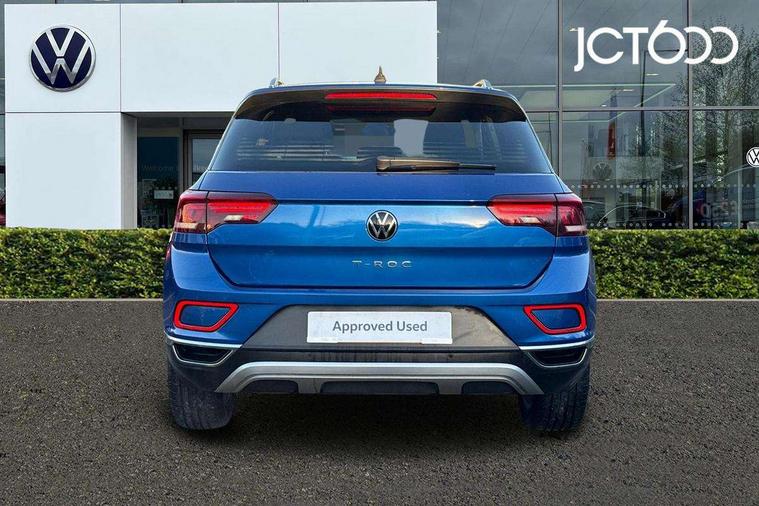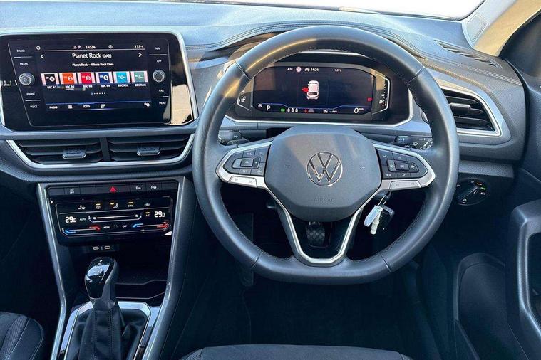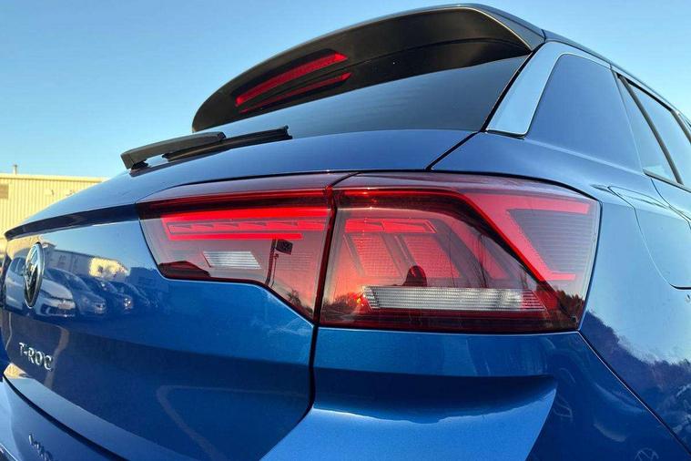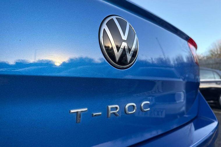 10.25" Digital cockpit pro, Advanced driver attention and drowsiness monitor, Bluetooth mobile phone interface, Emergency call service, Lane keeping system Lane Assist, Modified key software - reduce switch off time for key status change to Long no motion, Online services, Park assist including front and rear parking sensors, Service interval indicator, Tailgate/trunk lid release from outside, Think blue trainer driver tips and journey analysis, Warning sound and light for front seatbelts unfastened, Wireless app connect, Battery regeneration during braking, Start/stop function with battery regeneration, Diversity antenna for FM reception, Music playback - MP3, WMA and AAC files, Premium USB cable in choice of either Apple or Android smartphone compatibility, SD card slot, Simultaneous pairing of 2 compatible mobile devices, Title and cover art display, We Connect and We Connect Plus functionality, 3rd brake light, Auto dimming interior rear view mirror, Automatic hazard lights activation under emergency braking, Automatic headlight control with LED separate daytime running lights with coming/leaving home function, Body colour sports bumpers with silver metallic underbody fascia, Dynamic headlight range control with self adjusting whilst driving, Electrically adjustable and heated door mirrors, Extended roof spoiler, Exterior mirrors aspherical on driver side, convex on front passenger side, External USB type C socket and charging sockets, Front windscreen wiper with intermittent wipe and 4 position delay, Heated rear window, LED rear combination lamps, LED rear number plate lights, Light mode for poor weather, rain, fog or snow, Power windows with comfort operation and circuit breaker, Rain sensor, Rear exhaust tailpipe, Rear fog light on one side and reversing lights on both sides, Rear side wing doors, Rear wash/wipe with intermittent wipe setting, Remote electrically foldable door mirrors, puddle lights and reverse activated passenger's door mirror, 12V power socket in centre console, 3 rear head restraints, 3 seat bench in 2nd row, 4 load lashing points in luggage compartment, Air care climatronic air conditoning system with active combination filter and 2-zone temperature control, Chrome plated radiator grille inserts, air vent surrounds and light switch surrounds, Door and side trim panel with leatherette insert, Drawer under drivers seat, Front + rear carpet mats, Front centre armrest, Front comfort sports seats, Front cupholders x 2, Front footwell illumination, Front seat back storage pockets, Glove compartment door with light, Instrument lighting, white adjustable panel illumination, Interior ambient lighting and surround lighting, Interior light delay, Isofix child seat preparation, Leather gearshift handle, LED interior light with switch off delay/dimmer and 2 front/rear LED reading lights, Load-through provision with cup holder when folded down ('Unsplit rear seat bench, split folding backrest, with centre armrest), Luggage compartment lighting, Non-folding front passenger seat backrest, Single front passenger seat, Storage compartment in left and right luggage area, Storage compartment in rear doors, Storage compartments in driver and front passenger doors, Sunvisors with illuminated vanity mirrors, Variable boot floor, height adjustable and removable, Driver assistance pack without proactive passenger protection - T-Roc, 3 point height adj front seatbelts + pretensioners, 3 point seatbelts in outer rear with ECE label, ABS, Child locks on rear doors, City emergency braking and pedestrian monitoring, Driver and front passenger airbag with front passenger airbag deactivation, Driver and front passenger safety-optimised head restraints, Drivers seatbelt reminder, Electronic parking brake, Electronic Stability Control (ESC) inc EDL (Electronic Differential Lock) and ASR (Traction Control), Front and rear passengers curtain airbag system including front side airbags, Predictive pedestrian protection, Rear disc brakes, Two tone horn, Tyre pressure loss indicator, Volkswagen roadside assistance, Anti-theft alarm system with interior monitoring, backup horn, and towing protection, Remote central locking with SAFELOCK, radio remote control with 2 remote control folding keys, Trims for alloy wheels,
