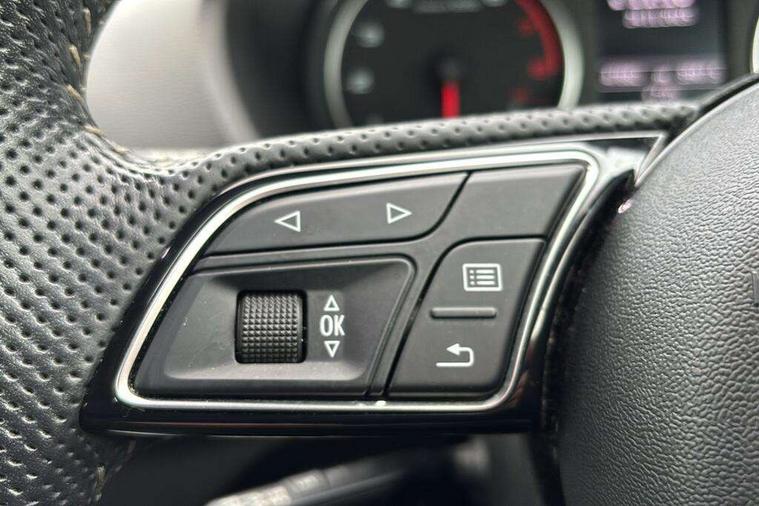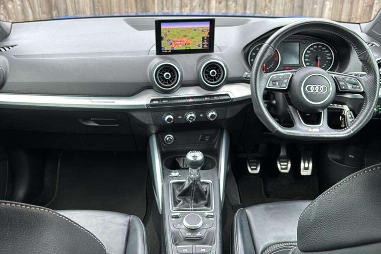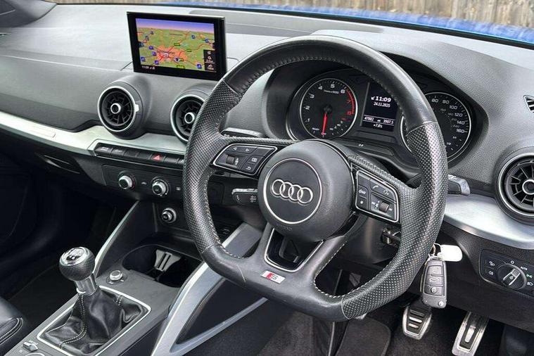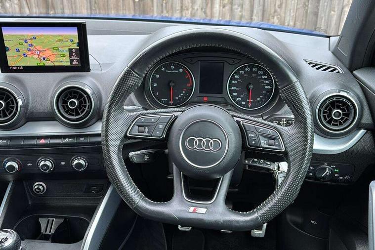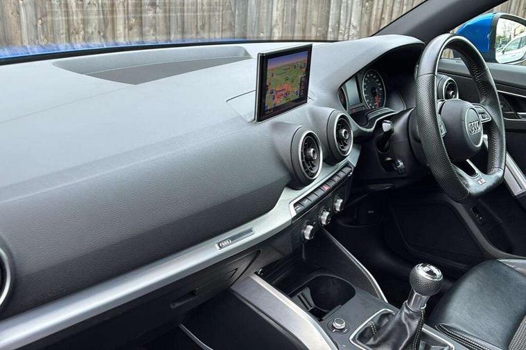 Audi drive select, Audi smartphone interface, Automatic start/stop system with recuperation, Bluetooth interface includes bluetooth audio streaming, Cruise control, MMI - Multi Media Interface control system, MMI SD card integrated nav with 3D map display, dynamic route guidance with TMC, MMI search, natural voice recognition and myAudi special destinations, Power operated tailgate, Progressive steering, Service interval indicator, Dynamic suspension, 2 x SDXC card reader, Audi music interface - apple iPod, apple iPhone, USB storage media, compatible MP3 players, 2 x USB charging points and 1 x Aux-in, CD Drive, DAB digital radio and AM/FM radio, MMI radio plus with 7" colour MMI screen and MMI controller, Black window trims, Bumper in full body colour paint finish, Chrome exhaust tailpipe, Electrically adjustable and heated door mirrors with integrated LED side indicators, Front and rear electric windows, Front underbody guard and rear diffuser trim in selenite silver, Front windscreen with grey tinted sunband, Headlight washers, Interior mirror, LED headlights with LED rear lights + dynamic rear indicators, LED indicator lights, Manual folding door mirrors, Rain and light sensors, Rear wiper, S Line badges on the front wings, S Line body styling - front and rear bumpers, side skirts, radiator grille, rear diffuser insert and front air intakes, 60/40 split folding rear seat bench, Black cloth headlining, Electronically operated child locks, Floor mats with contrast stitching, Front centre armrest, Front headrests, Front sport seats with S embossed logo, Height/reach adjust steering wheel, Illuminated door sill trims with S logo, ISOFIX child seat mounting for front passenger with airbag deactivation and outer rear seat including top tether attachment point for outer rear seats, Manual seat adjustment including seat height adjustment for front seats, Stainless steel pedals, Storage compartments - Glovebox, cupholder compartment in centre console, storage compartment in rear centre console, front and rear door pockets, Three rear headrests, Non smoking pack - Q2, 3x3 point rear seatbelts, 6 airbags - Front, curtain and front side airbags, Electromechanical parking brake, Electronic stabilisation control including ABS, ASR and EDL, Extended and proactive pedestrian protection, Hill hold assist, Multi collision brake assist, Pre-sense front with pedestrian recognition, Seatbelt monitoring, Tyre pressure warning light, Warning triangle and first aid kit, Anti theft alarm, Anti theft wheel bolts, Central locking system with remote control key, Aluminium interior element,