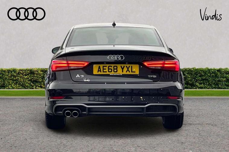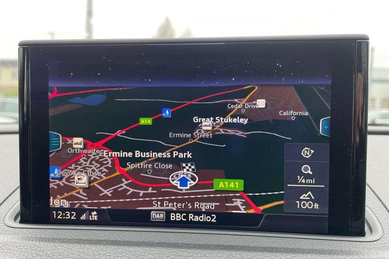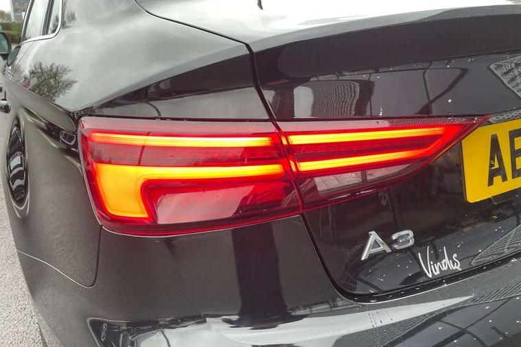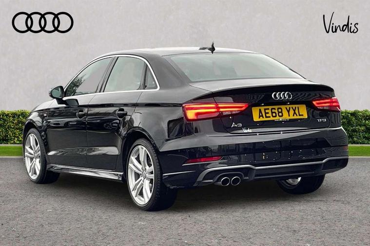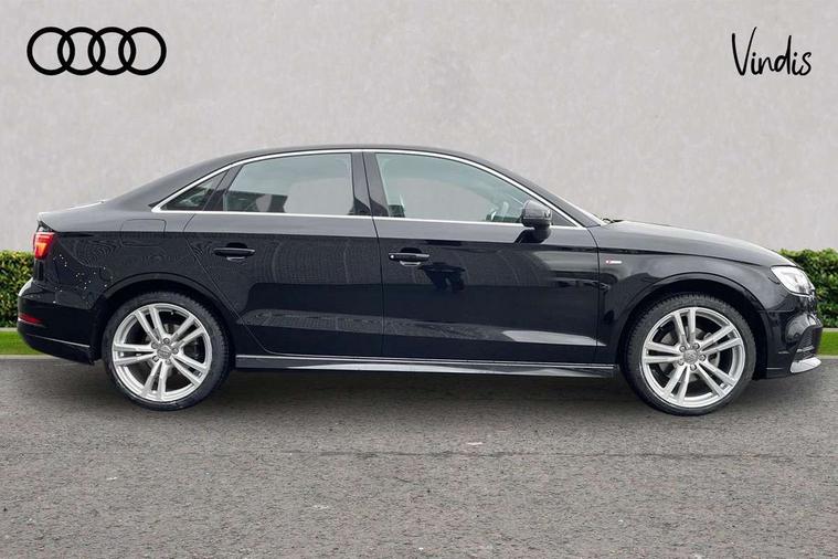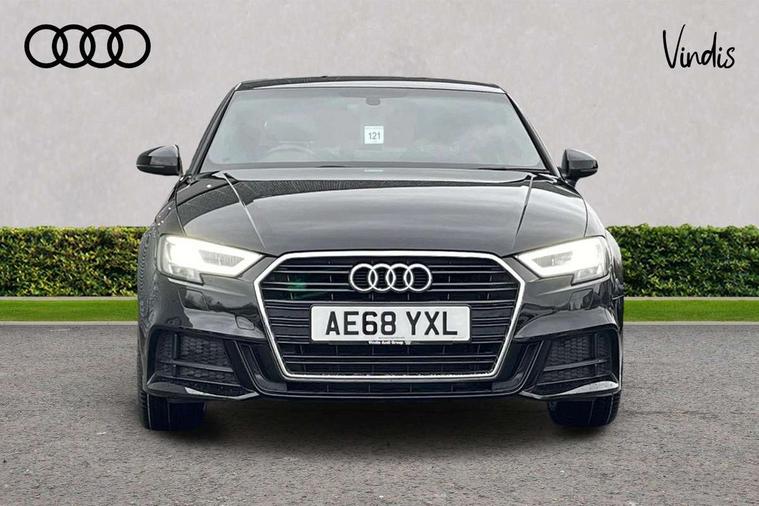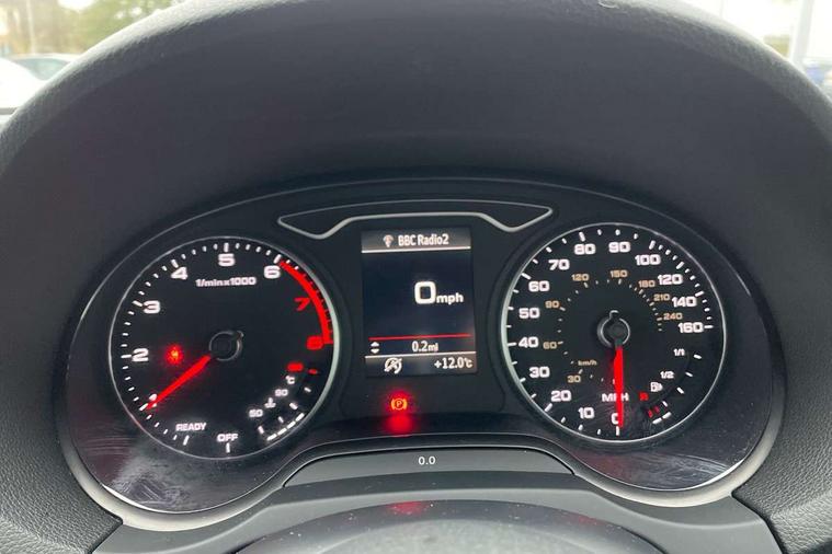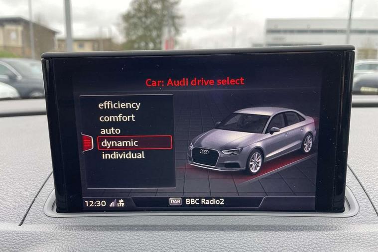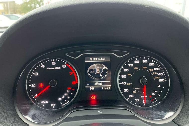 Audi connect, Audi drive select, Audi smartphone interface, Bluetooth interface, Colour driver's information system display, Electro-mechanical PAS, SD card based satellite navigation system, Service interval indicator, Voice control system, 2 USB ports, Audi music interface, Aux-in socket, CD player, DAB Digital radio, MMI radio plus with 7" colour MMI screen and MMI controller, Aluminium side window trim, Automatic lights and wipers, Body colour bumpers, Body colour door mirrors with integral indicators, Body colour roof spoiler, Chrome exhaust tailpipes, Electric operated/heated door mirrors, Front and rear electric windows, Heated rear window, Heated windscreen washer jets, High gloss dark chrome radiator grille, LED daytime running lights, S Line body styling, 3 adjustable rear headrests, 3 spoke flat bottomed multi-function leather steering wheel, 4 lashing points to secure luggage, Adjustable front armrest, Black cloth headlining, Driver/passenger sunvisors, Dual zone electronic climate control, Front and rear interior lights with delay, Front sports seats, Front/rear floor mats, Height/depth adjustable steering column, Illuminated door sills, Illuminated glovebox, ISOFIX child seat preparation+airbag deactivation, Jack and tool kit, Stainless steel pedals, Storage compartment in centre console, Storage compartments in doors, Storage under driver's seat, LED interior light pack - A3/RS3, Non smoking pack - A3, Storage and luggage pack - A3/RS3, 3 point seatbelts on all seats, ABS/EBD, ASR, Curtain airbags, Driver and passenger side airbags, Driver/Front Passenger airbags, Drivers knee airbag, EDL, Electromechanical parking brake, ESC - Electronic Stability Control + traction control, Front passenger airbag deactivation, Seatbelt warning, Tyre pressure warning, Warning triangle and first aid kit, Anti theft alarm, Anti-theft wheel bolts, Immobiliser, Remote control central locking, Aluminium air vent surrounds, Aluminium trim elements, Matt brushed aluminium inlays,