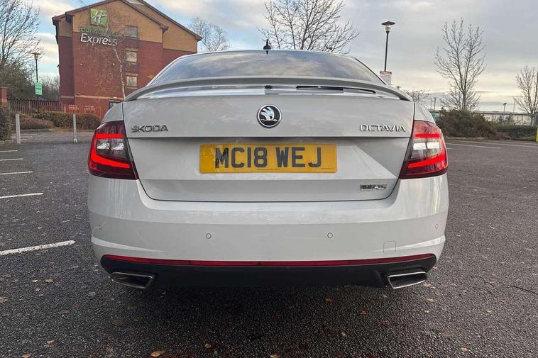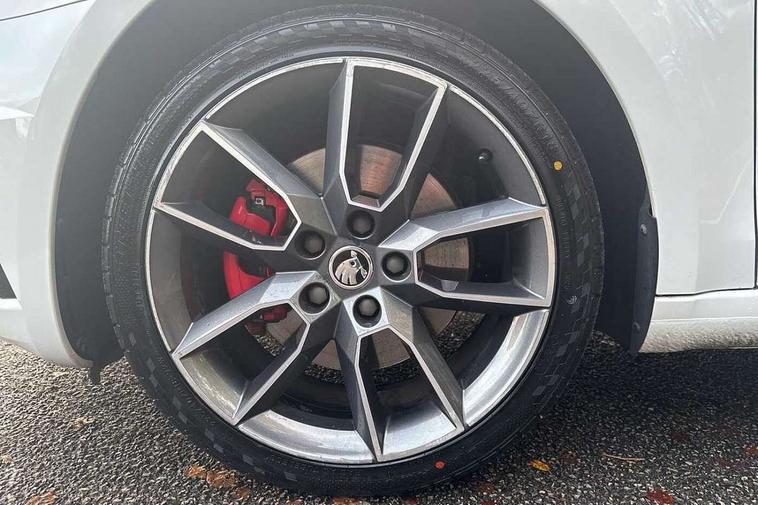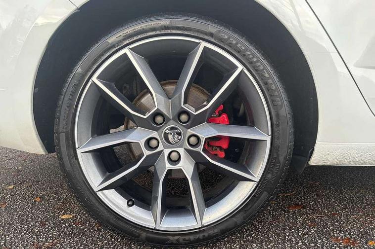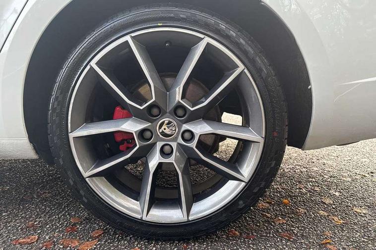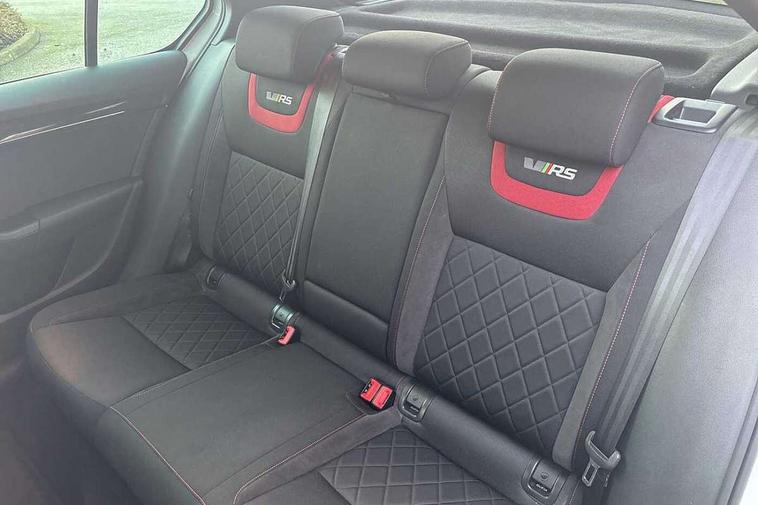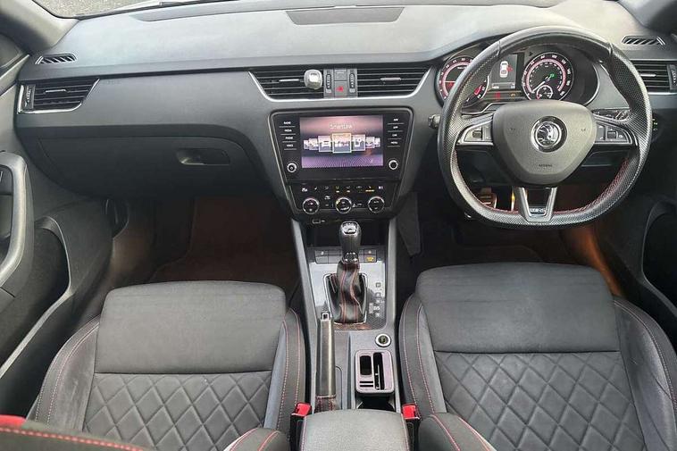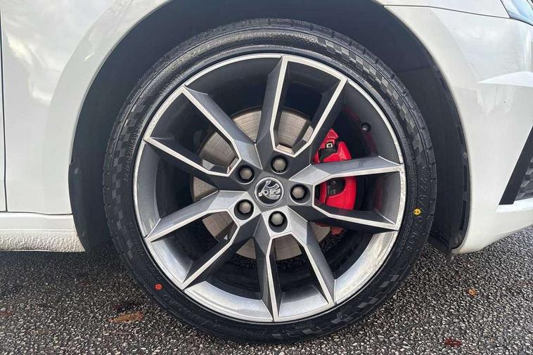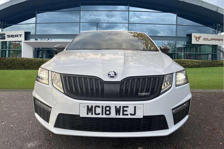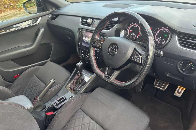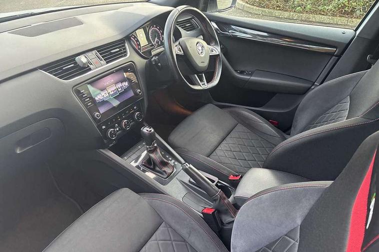 Bluetooth system, Drive mode selector, Driver alert system, Driver fatigue sensor, Driver profile selection, Electro-mechanical power steering, Outside temperature gauge, Service interval indicator, Stop/start system, Voice control system, Diesel particulate filter, Electronic limited slip differential, Sports suspension, Auxiliary input socket, Bolero Radio, DAB Digital radio, Multi device interface, USB, SD card and Proximity sensors, Aero wiper + intermittent function, Auto dimming rear view mirror, Body colour door mirrors and handles, Body coloured bumpers and protective side mouldings, Door sill trim with vRS logo, Electric front and rear windows with child safety lock, Full LED Headlights with adaptive front light system and LED daytime running lights, Headlight washers, High level third brake light, Internally adjustable headlight beam level, LED rear lights (high), Privacy glass, Rain sensor, Rear wiper, Tinted glass, vRS exterior design with bumper and spoiler, Air re-circulation and pollen filter, Ambient lighting in door trim, Chrome inner door handles, Driver + passenger vanity mirrors, Dual zone automatic air conditioning with humidity sensor and control, Front and rear footwell illumination, Front centre armrest, Front seat and rear pockets, Gear shift indicator, Height adjustable driver and passenger seat with lumbar support, Height adjustable drivers seat, Height adjustable front and rear head restraints, Height/reach adjust steering wheel, Illuminated air conditioned glovebox, Illuminated luggage compartment, Interior courtesy light operated by door switches, Interior door handle lighting in front and rear, Lashing eyelets in boot, Rear armrest with 2 cupholders and load through provision, Rear armrest with through load boot access, Rear seat backrest release, Safety vest holder under passenger seat, Split folding rear seat backrests, Split folding rear seats with centre armrest and storage, Sunglasses storage, Textile floor mats, Two isofix child seat fitting in rear, Umbrella under front passenger seat, vRS Cloth upholstery + Front sport seats, LED Interior lighting package - Octavia, 3 rear 3 point seatbelts + pretensioners, Automatic post collision braking, Driver and passenger front and side airbags, Drivers knee airbag, Energy recovery system, ESC including ABS, EBV, MSR, ASR, EDS, HBA, DSR, ESBS, TSA, MKB, XDS and Prefill brake function, Fuel supply cut off, Head and curtain airbags, Height adjustable front seatbelts + pretensioners, Hill hold control, Passenger airbag deactivate switch, Red brake calipers, Seatbelt warning lamp, Tyre pressure monitor, Alarm, Electronic engine immobiliser, Remote central locking, Low rolling resistance tyres,