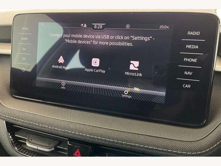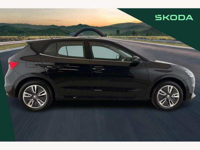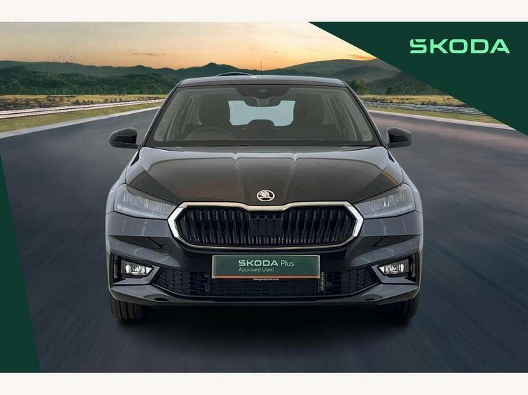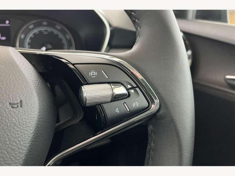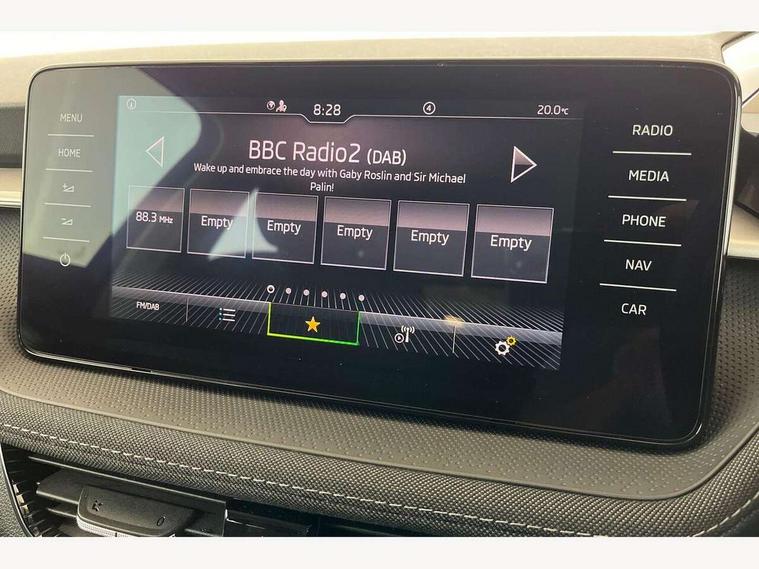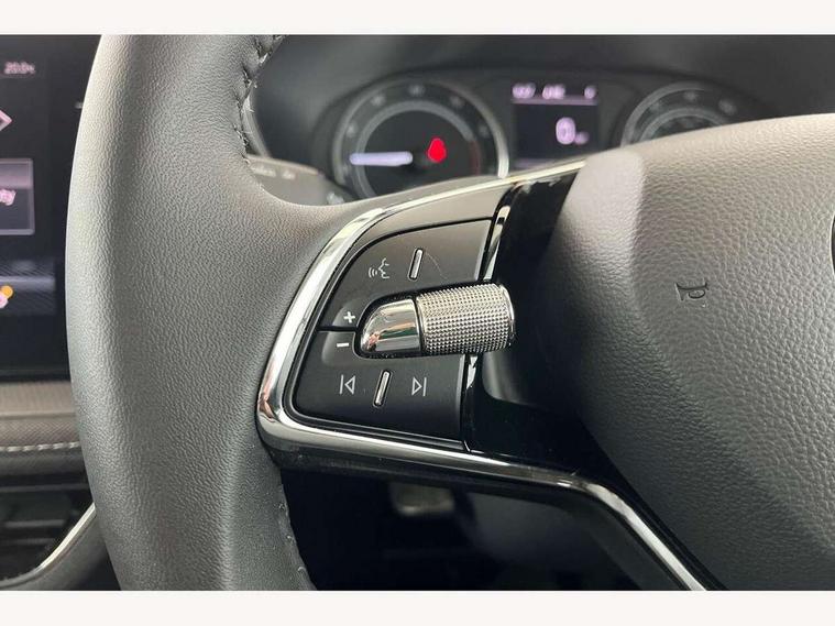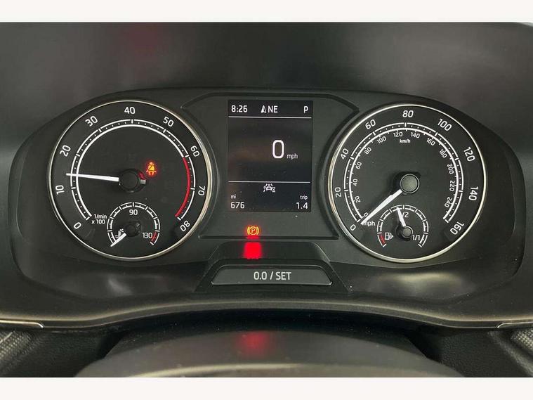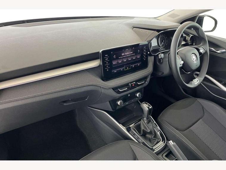 Bluetooth connection, Driver alert system - DAS, Electromechanical power steering, Exterior temperature gauge, Service interval indicator, 2x USB-C in the front (for data transmission and charging), 6 Speakers (4 in front and 2 in rear), Auxiliary socket for external MP3 player, DAB digital radio reception, Web radio, Auto dimming rear view mirror, Basic LED Headlights, Body colour door mirrors, Body coloured bumpers, Chrome window surround, Door mirror integrated indicators, Electrically adjustable and heated door mirrors, Front and rear electric windows, Front fog lights, Front window wiper intermittent control, Headlight range control - Automatic, Ice scraper in fuel cap, LED daytime running lights with coming and leaving home feature, Rain sensor, Rear LED fog light, Rear side wing doors, Rear window wiper with washing nozzles, Roof mounted spoiler, SKODA tailgate lettering in chrome, Third brake light, 3 rear headrests, Backrest split and folding, Central console with fixed cup holder and storage box, Chrome handbrake release button, Comfort seats, Fabric upholstery, Front centre armrest, Gearshift knob/handle in leather, Hand brake lever handle in leather, Height adjustable front headrests, Height adjustable front seats, Height adjustable steering wheel, ISOFIX and TopTether anchorage points to the outer rear seats, ISOFIX and TopTether on the front passenger seat, Luggage compartment lighting, Manually adjustable lumbar support in front seats, Pollen filter, Rear seat bench unsplit, Removable cup holder, Single front passenger seat, Storm grey headlining, Sun visors with mirror and airbag label on passenger side, Textile floor mats, Ticket holder, Umbrella in drivers door, 3-point height adjustable front seats belts with pretensioner and force limiter, Automatic warning lights in case of crash, Driver and passengers airbag with switch off function, e-Call+, ESC including ABS, MSR, ASR, EDS, HBA and XDS, Front and rear seat belt warning, FRONT ASSIST (AEB City and AEB Inter Urban), Front side airbags, Head airbags, Hill hold assist, One tone horn, Pedestrian protection, Three rear 3-points safety seat belts with pretensioner and force limiter including stop function for outer rear seat belts, Tyre pressure monitoring system, Anti-theft alarm system including immobiliser, interior monitoring, backup horn, and towing protection, Central locking with radio remote control, interior controls, SAFE function and 2 foldable keys, KESSY - Keyless engine start/stop, Chrome edged air vents, Satin black door and side trim panel in front, Anti-theft wheel bolts protection, Super-low rolling resistance tyres,