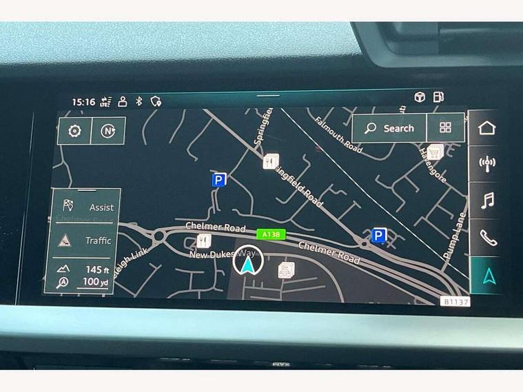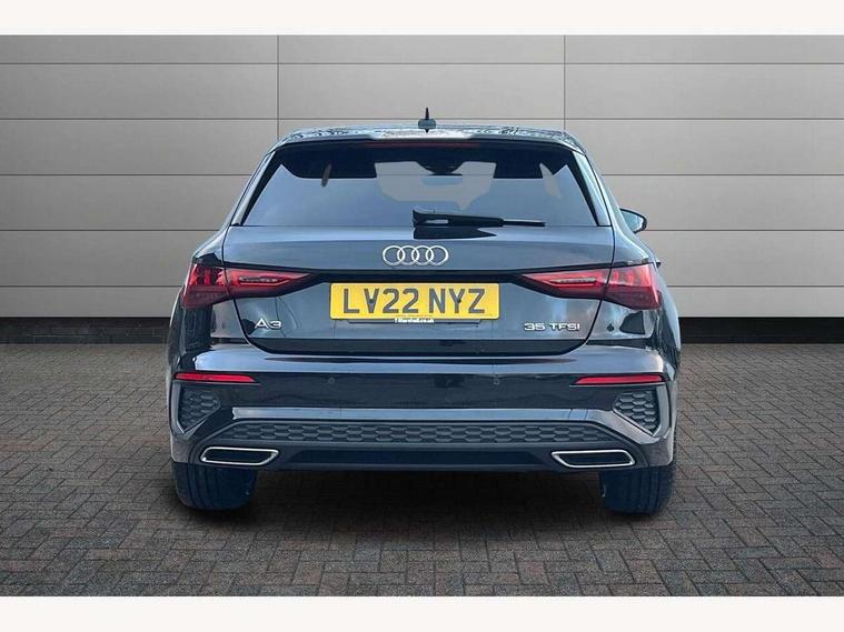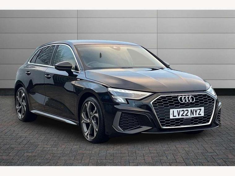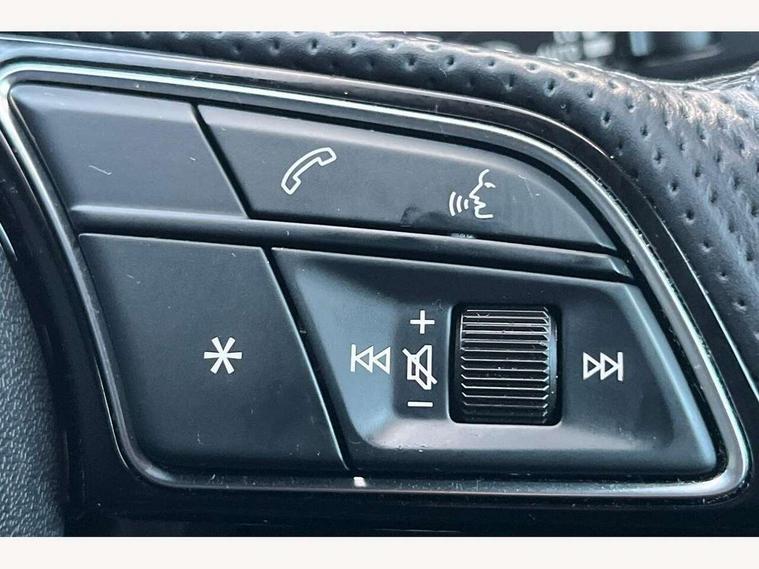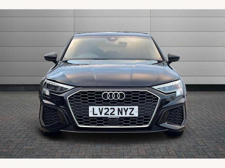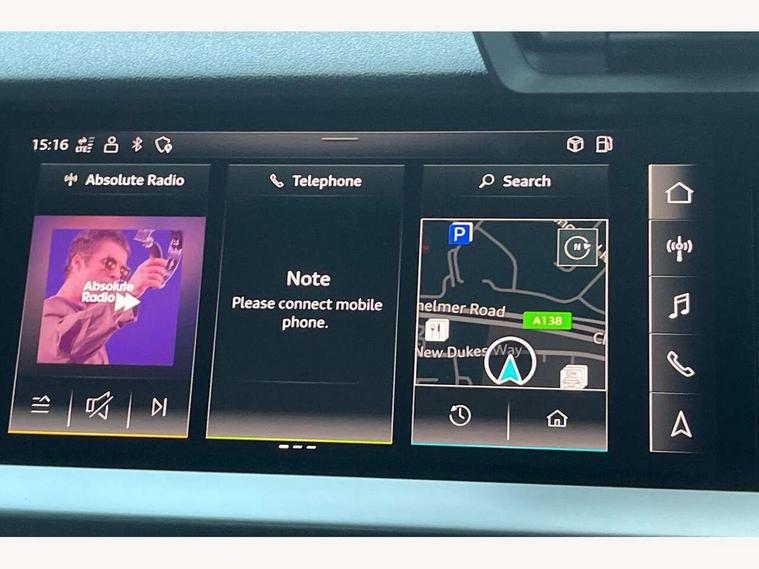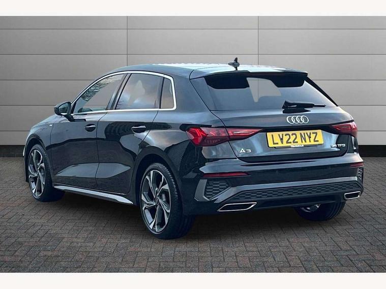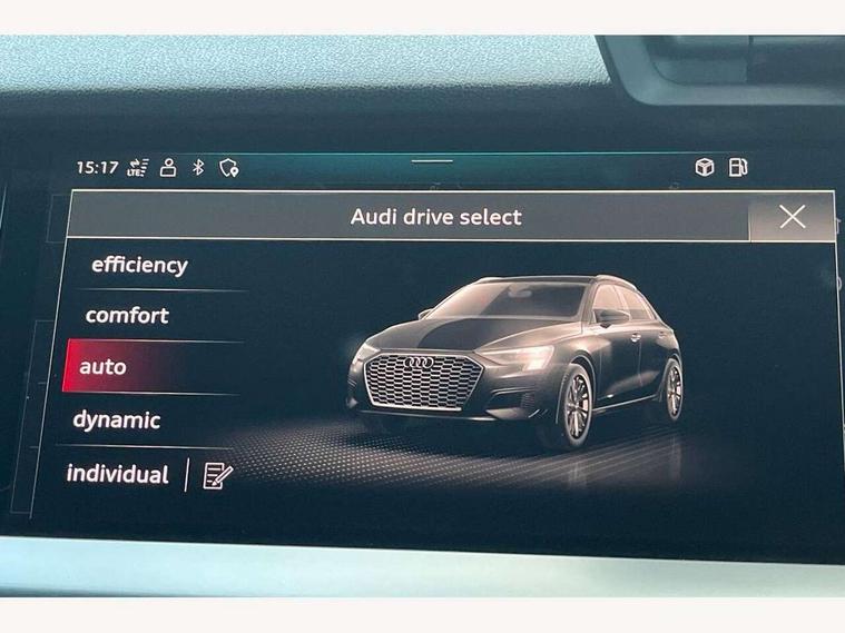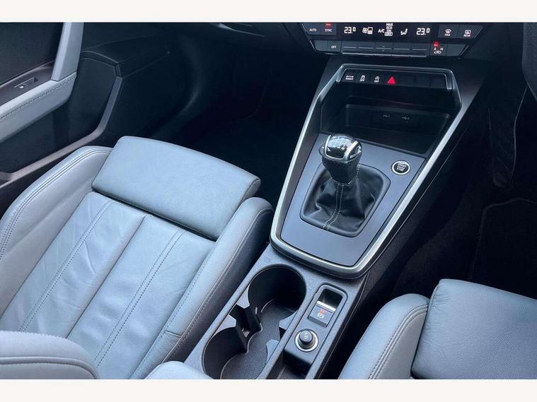 Audi connect emergency call and service, Audi drive select (Auto, Comfort, Dynamic, Efficiency and Individual), Audi smartphone interface, Audi Virtual Cockpit - 10.25" digital and colour instrument cluster, Automatic start/stop system with recuperation, Bluetooth interface, Collision avoidance assistant, Electromechanical power speed sensitive steering, Lane departure warning system, MMI Navigation Plus with high resolution 10.1" colour touch screen display, Service indicator, Trip computer, Voice control system with natural language interaction, 2xUSB-C connection with data and charging functions, 6 passive loudspeakers, DAB Digital radio, 3rd brake light, Acoustic glass windscreen, Aluminium window trim, Auto dimming frameless rear view mirror, Electrically adjustable/heated/folding/auto dimming door mirrors with integrated LED indications + kerb view function for passenger side, Front electric windows, Illuminated aluminium inserts front door sills with S logo, LED daytime running lights, LED headlights with LED rear lights and dynamic rear indicators, Light and rain sensors, Privacy glass - dark tinted rear window, rear door and side windows, Rear electric windows, Rear side air outlets in grained matt black, Rear side wing doors, Rear wiper, S line bumpers, S roof spoiler, 12V socket and storage compartment in front centre console, 3 seat bench in 2nd row, 40/20/40 split folding rear seat bench with cupholder, Black cloth headlining, Dual zone electronic climate control, Front and rear centre armrest in leather, Front and rear headrests, Front/rear floor mats, Height and reach adjustable steering wheel, Illuminated vanity mirror, Interior lighting - glove compartment light and right hand side, Luggage compartment floor covering, Manual boot compartment lid, Manually adjustable front seats, Seat side bolsters, Single front passenger seat, Stainless steel pedals and front footrest in black, Twin leather upholstery with front sports seats S embossed logo, Aluminium interior elements pack - A3 Sportback, S line styling pack - A3 Sportback, 3x3 point rear seat belts, Driver and front passenger airbag with passenger airbag deactivation, Electronic Stabilisation Control (ESC) including ABS, ASR and EDL, First aid kit with warning triangle and 2 safety vests, Front side airbags with head airbags and interaction airbag, Pre-sense front with pedestrian and cyclist detection, Seatbelt monitoring, Tyre pressure loss indicator, Anti theft alarm, Anti-theft wheel bolts, Immobiliser, Manual child locks, Remote control central locking, Accent surfaces in the dashboard and centre console in platinum grey silk effect paint finish, Dark spectrum aluminium inlays,