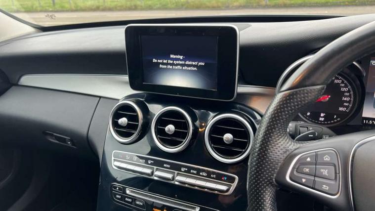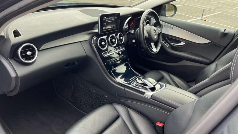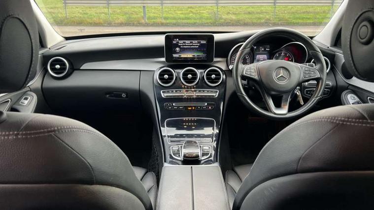 Active park assist with parktronic system, Attention assist, Bluetooth interface for hands free telephone, Collision prevention assist, DYNAMIC SELECT with a choice of driving modes (ECO, Comfort, Sport, Sport+ and Individual), Garmin Map Pilot navigation system with SD card, touchpad and voice control, Multi function trip computer, Outside temperature gauge, Power opening/closing tailgate, Remote boot release, Service indicator (ASSYST PLUS), Speed sensitive steering, Diesel particulate filter, DAB Digital radio, Frontbass loudspeakers, Mercedes Audio 20 radio/single CD + telephone keypad, USB connection, Adaptive brake lights, Body coloured bumpers, Chrome roof rails, Electric windows one touch open/close, Electrically adjustable and heated door mirrors, Green tinted glass, Heated windscreen washers, LED daytime running lights, Radiator grille with integral star and 2 louvres in matt iridium silver with chrome trim, Rain sensor windscreen wipers, Rear wiper, Side windows surround in polished aluminium, 12V power socket in centre console, 2 cupholders in front centre console, 2 way rear head restraints, 3 spoke nappa leather steering wheel, 4 way adjustable front head restraints, 40:20:40 split folding rear seats, Aluminium door trim, Auto Mercedes-Benz child seat recognition sensor, Bottle holders, Dual zone automatic climate control, Electric front seat height adjustment, Front centre armrest with storage compartment, Gearshift paddles, Heated front seats, Height/reach adjustable steering column, Illuminated glovebox, Load compartment cover, Multifunction steering wheel, Partial electric front seats, Rear top tether child seat ISOFIX attachment, Sports seats, Sunvisors with illuminated vanity mirrors, Lighting pack - C class, Mirror pack - C Class, Seat comfort pack - C Class, Stowage space pack - C Class, 3 rear 3 point seatbelts, ABS with Brake Assist, Active bonnet, Adaptive brake system, Child proof door locks, Drivers knee airbag, Dual stage driver/passenger airbags, Electronic parking brake, ESP with ASR, Front passenger seat occupancy sensor, Front side airbags, Hill start assist, Pre-Safe anticipatory safety system, Tyre pressure monitoring system, Warning triangle and first aid kit, Window airbags, Alarm system/interior protection/immobiliser, Chrome surround in electric key, Remote central locking, 17" 5 twin spoke alloy wheels, Tyre inflation kit,