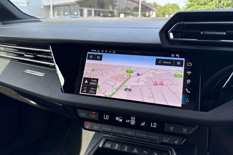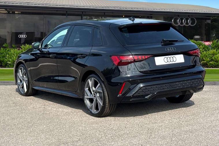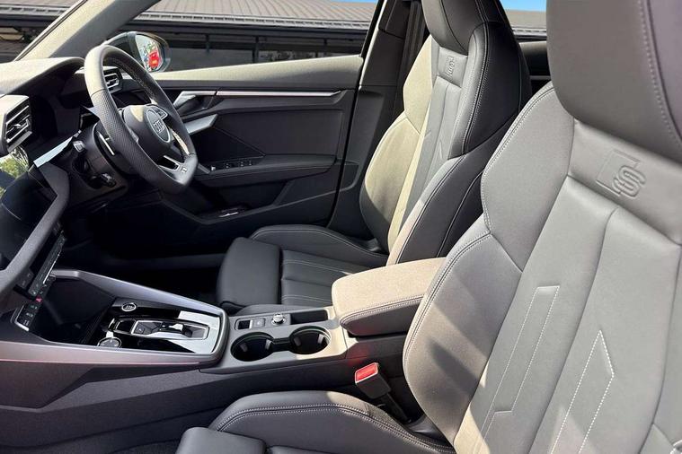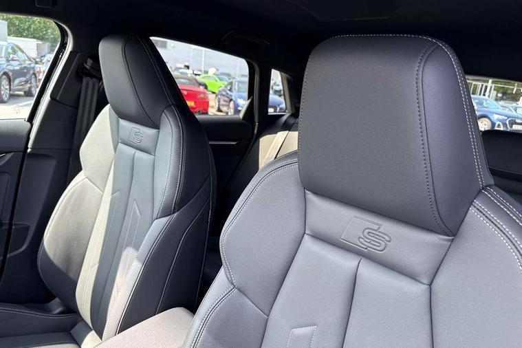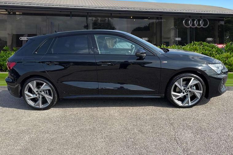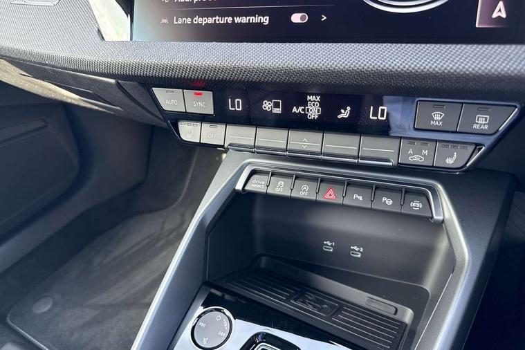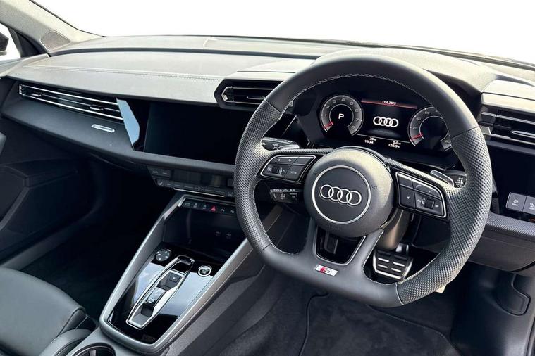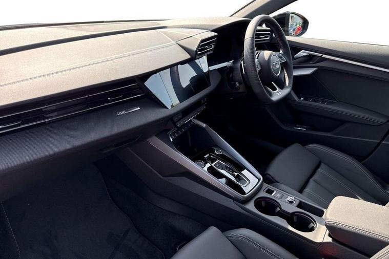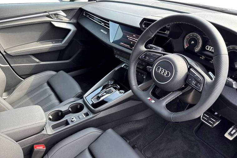 Adjustable speed limiter, Audi drive select, Audi smartphone interface with app store includes wireless Apple carplay, Android auto and Amazon alexa integration, Audi virtual cockpit plus - 12.3" full HD resolution dynamic digital instrument cluster, Automatic start/stop system with recuperation, Bluetooth interface, Camera based traffic sign recognition, Collision avoidance assistant, Cruise control, Distraction and Fatigue warning, e-Call (emergency call), Electromechanical power speed sensitive steering, Lane departure warning system, MMI Navigation Plus with high resolution 10.1" colour touch screen display, Park Assist with parking system Plus, Service indicator, Trip computer, Voice control system with natural language interaction, Sports suspension, Audi Phonebox light with wireless charging, Audi sound system - 10 loudspeakers including centre loudspeaker and subwoofer, DAB Digital radio, USB ports with charging function in the rear, 3rd brake light, Acoustic glass windscreen, Anthracite grey Audi rings (front and rear), Audi beam uses LEDs to project the Audi logo onto the ground as you exit your A3, Auto dimming frameless rear view mirror, Black accents front and rear bumpers, Black accents in the area of the Audi single frame grille, Black accents window trims strips, Electrically adjustable/heated/folding/dimming door mirrors with kerb view includes integrated LED indications + kerb view function for passenger side, Exterior model badging, Front electric windows, Heat insulating glass windscreen, Illuminated door sills with aluminium inserts at the front with S logo, LED daytime running lights, LED headlights with LED rear lights and dynamic rear indicators, Light and rain sensors, Privacy glass - dark tinted rear window, rear door and side windows, Rear electric windows, Rear side wing doors, Rear wiper, S roof spoiler, 12V socket and storage compartment in front centre console, 3 seat bench in 2nd row, 3 spoke flat bottomed leather multifunction sport steering wheel with gear shift paddles, 3-zone deluxe automatic air conditioning, 4 way electrically adjustable lumbar support for driver and front passenger, 40/20/40 split folding rear seat bench, Black cloth headlining, Front and rear centre armrest in artificial leather, Front and rear headrests, Front/rear floor mats, Heated front seats, Height and reach adjustable steering wheel, Manual boot compartment lid, Manually adjustable front seats, S badging on the steering wheel, Seat side bolsters, Single front passenger seat, Stainless steel pedals and front footrest in black, Twin leather upholstery with front sports seats S embossed logo, Aluminium interior elements pack - A3 Sportback, Multi-coloured LED interior lighting pack - A3, 3x3 point rear seat belts, Driver and front passenger airbag with passenger airbag deactivation, Electronic Stabilisation Control (ESC) including ABS, ASR and EDL, First aid kit with warning triangle and 2 safety vests, Front side airbags with head airbags and interaction airbag, Hill hold assist, Pre-sense front with pedestrian and cyclist detection, Seatbelt monitoring, Tyre pressure loss indicator, Anti theft alarm, Anti-theft wheel bolts, Electronically operated child locks, Immobiliser, Remote control central locking, Inlays in black Impressum woven textile,