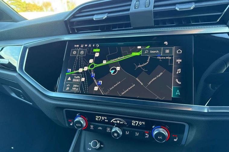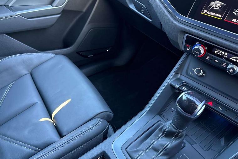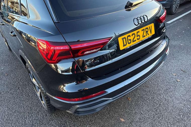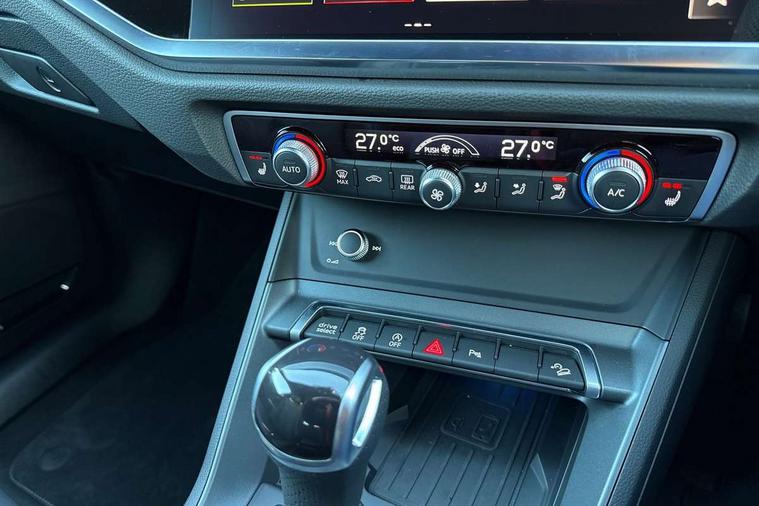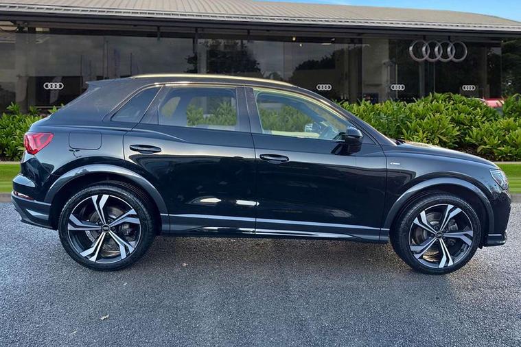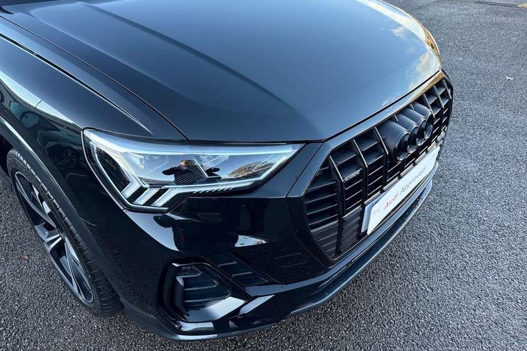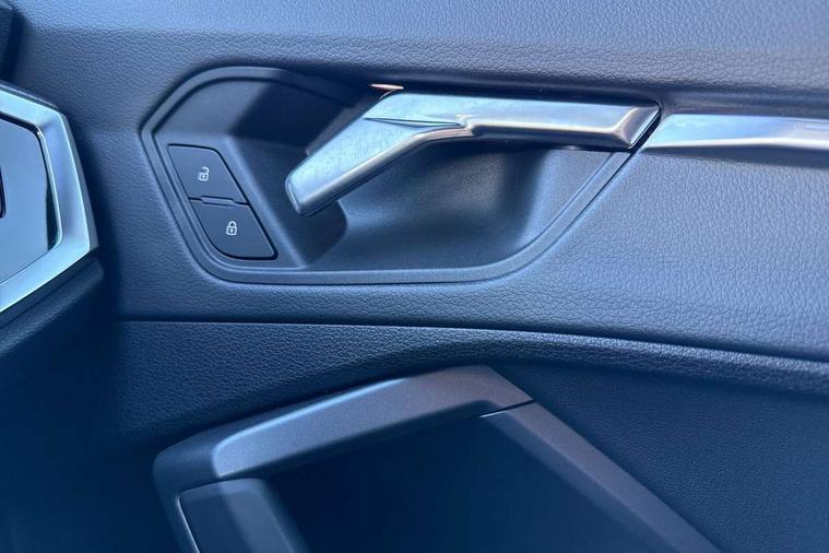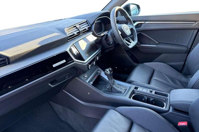 Amazon alexa Integration, Audi connect safety and service, Audi drive select, Audi lane departure warning, Audi Virtual Cockpit - 10.25" display, Bluetooth interface, Camera based traffic sign recognition, Distraction and Fatigue warning, Legal emergency call, MMI Navigation Plus with high resolution 10.1 inch touchscreen colour display, Power operated tailgate, Progressive steering, Service interval indicator, Smartphone interface includes wireless Apple carplay/Android Auto, Start stop system with recuperation, Voice control system with natural language interaction, Sports suspension, 2 USB-C ports with charge and data functions, 6 passive loudspeakers, DAB digital radio module, Acoustic windscreen, Audi Beam uses LEDs to project the Audi logo onto the ground as you exit your Q3, Auto dimming door mirrors, Auto dimming frameless rear view mirror, Black roof rails, Electrically folding, adjustable and heated door mirrors with integrated LED side indicators and kerb view function for passenger side, Front and rear electric windows, Front fog lights, Grille vertical bars in aluminium silver/Matt, High gloss black finish B and C pillars, LED Dynamic rear indicators, LED headlights with LED daytime running lights, LED rear lights, LED third brake light, Privacy glass dark tinted rear and rear-side windows (from B-pillar backwards), Rain and light sensors, Rear diffuser grille in grained matt black, Rear diffuser strip in matt anthracite black, Rear side wing doors, Rear wiper, S line bumpers in contrasting Manhattan grey, Variable front intermittent wipers, 12V socket in rear centre console, 3 seat bench in 2nd row, 40:20:40 folding with manual adjustment for 60:40 forwards/backwards position and backrest angle, Adjustable rear seat bench/backrest with centre armrest and cupholder, Black cloth headlining, Dual zone electronic climate control, Electric lumbar support, Front and rear black floor mats with contrast stitching in rock grey, Front and rear headrests, Front centre armrest, Height and reach adjustable steering wheel, Illuminated door sill trims with S logo, ISOFIX child seat mounting for front passenger with airbag deactivation and outer rear seat including top tether attachment point for outer rear seats, Manual front seats with height adjustment, Perforated leather gearknob, Single front passenger seat, Stainless steel luggage compartment sill finisher, Stainless steel pedals, Twin leather upholstery with front sport seats + S embossing, Black styling pack - Q3, Non smoking pack - Q3, 3x3 point rear seatbelts, 6 airbags - Driver, front passenger, curtain and side windows, Audi pre-sense front with pedestrain and cyclist recognition, Electrically operated child locks on rear doors, Electromechanical parking brake, Electronic stabilisation control including ABS, ASR and EDL, Front seatbelt reminder, Hill descent control, Hill hold assist, Pre sense basic, Seatbelt monitoring, Tyre pressure warning, Warning triangle and first aid kit, Anti theft wheel bolts, Immobiliser, Remote central locking, Thatcham approved category 1 anti theft alarm, Aluminium look interior elements, Detail dashboard around MMI touch colour display in glass look, black with surround in aluminium look, Leatherette door armrest, Piano black inlay,