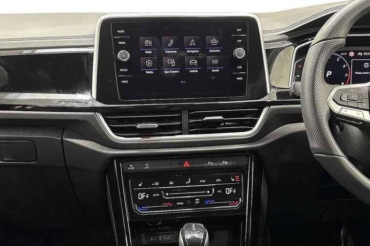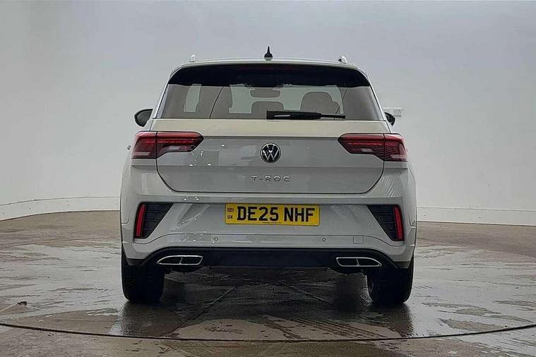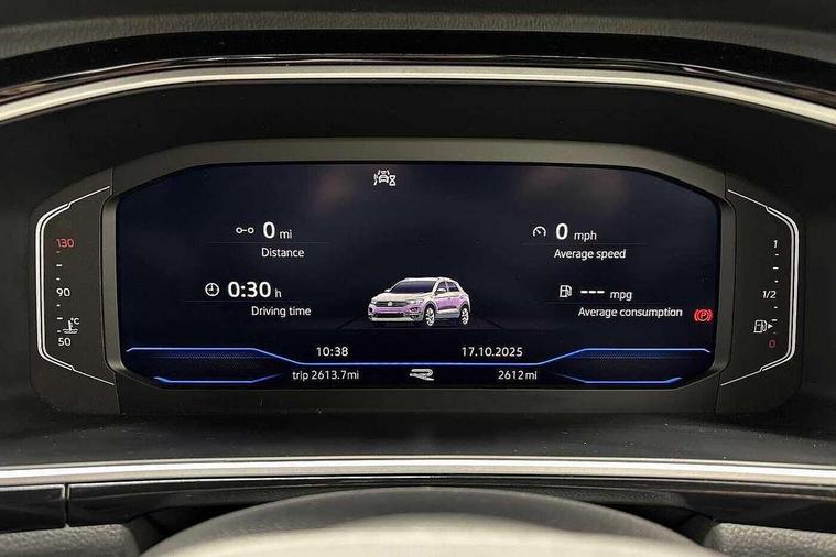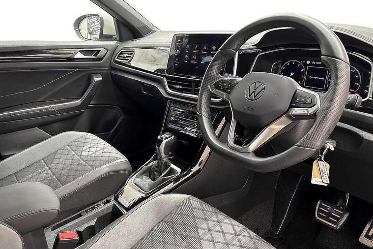 10.25" Digital cockpit pro, Advanced driver attention and drowsiness monitor, Emergency call service, Lane keeping system Lane Assist, Mobile phone interface, Modified key software - reduce switch off time for key status change to Long no motion, Online services, Park assist including front and rear parking sensors, Service interval indicator, Tailgate/trunk lid release from outside, Think blue trainer driver tips and journey analysis, Warning sound and light for front seatbelts unfastened, Wireless app connect, Battery regeneration during braking, Start/stop function with battery regeneration, DAB Digital radio, Diversity antenna for FM reception, Front and rear 6 speakers, Music playback - MP3, WMA and AAC files, Premium USB cable in choice of either Apple or Android smartphone compatibility, SD card slot, Simultaneous pairing of 2 compatible mobile devices, Title and cover art display, We Connect and We Connect Plus functionality, Auto dimming interior rear view mirror, Automatic hazard lights activation under emergency braking, Automatic headlight control with LED separate daytime running lights with coming/leaving home function, Body coloured exterior mirror housings and door handles, Electrically adjustable and heated door mirrors, Extended roof spoiler, Exterior mirrors aspherical on driver side, convex on front passenger side, External USB type C socket and charging sockets, Front windscreen wiper with intermittent wipe and 4 position delay, Heated rear window, LED 3rd brake light, LED rear combination lamps, LED rear number plate lights, Power windows with comfort operation and circuit breaker, Privacy glass for rear side windows and rear window, R-Line design body coloured bumpers, Rain sensor, Rear exhaust tailpipe, Rear fog light on one side and reversing lights on both sides, Rear side wing doors, Rear wash/wipe with intermittent wipe setting, Remote electrically foldable door mirrors, puddle lights and reverse activated passenger's door mirror, 12V power socket in centre console, 3 rear head restraints, 3 seat bench in 2nd row, 4 load lashing points in luggage compartment, Air care climatronic air conditoning system with active combination filter and 2-zone temperature control, Black roof lining, Chrome plated decorative trims, Chrome plated radiator grille inserts, air vent surrounds and light switch surrounds, Door and side trim panel with leatherette insert, Front + rear carpet mats, Front centre armrest, Front cupholders x 2, Front footwell illumination, Front reading light, Front scuff plates with R Line logo, Front seat back storage pockets, Glove compartment door with light, Instrument lighting, white adjustable panel illumination, Interior ambient lighting and surround lighting, Interior light delay, Isofix child seat preparation, Leather gearshift handle, Load-through provision with cup holder when folded down ('Unsplit rear seat bench, split folding backrest, with centre armrest), Luggage compartment lighting, Single front passenger seat, Stainless steel pedals, Storage compartment in left and right luggage area, Storage compartment in rear doors, Storage compartments in driver and front passenger doors, Sunvisors with illuminated vanity mirrors, Variable boot floor, height adjustable and removable, Driver assistance pack without proactive passenger protection - T-Roc, 3 point height adj front seatbelts + pretensioners, 3 point seatbelts in outer rear with ECE label, ABS, Child locks on rear doors, City emergency braking and pedestrian monitoring, Driver and front passenger airbag with front passenger airbag deactivation, Driver and front passenger safety-optimised head restraints, Drivers seatbelt reminder, Electronic parking brake, Electronic Stability Control (ESC) inc EDL (Electronic Differential Lock) and ASR (Traction Control), Front and rear passengers curtain airbag system including front side airbags, Hill start assist, Predictive pedestrian protection, Rear disc brakes, Two tone horn, Tyre pressure loss indicator, Volkswagen roadside assistance, Piano black decorative inserts in dashboard and front door trim panels, Trims for alloy wheels,