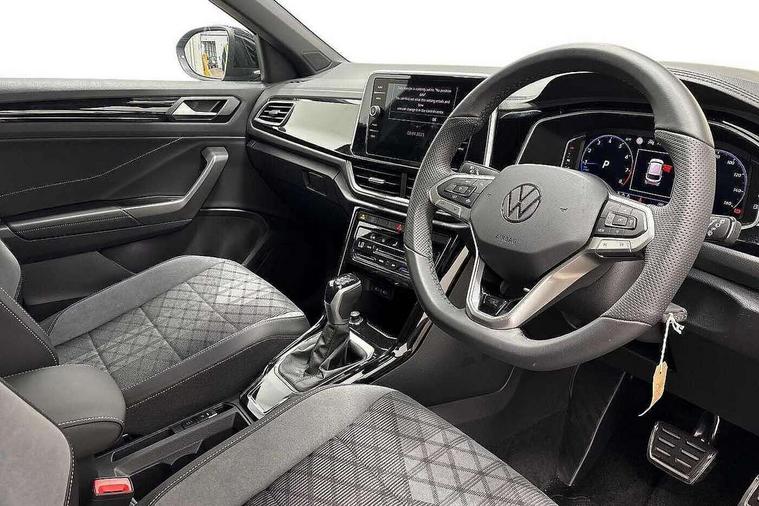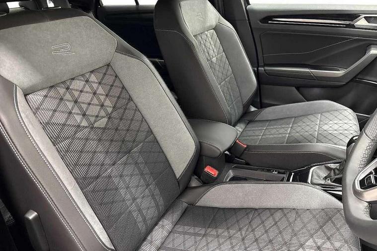 10.25" Digital cockpit pro, Advanced driver attention and drowsiness monitor, Emergency call service, Lane keeping system Lane Assist, Mobile phone interface, Modified key software - reduce switch off time for key status change to Long no motion, Online services, Park assist including front and rear parking sensors, Service interval indicator, Tailgate/trunk lid release from outside, Think blue trainer driver tips and journey analysis, Warning sound and light for front seatbelts unfastened, Wireless app connect, Battery regeneration during braking, Start/stop function with battery regeneration, DAB Digital radio, Diversity antenna for FM reception, Front and rear 6 speakers, Music playback - MP3, WMA and AAC files, Premium USB cable in choice of either Apple or Android smartphone compatibility, SD card slot, Simultaneous pairing of 2 compatible mobile devices, Title and cover art display, We Connect and We Connect Plus functionality, Auto dimming interior rear view mirror, Automatic hazard lights activation under emergency braking, Automatic headlight control with LED separate daytime running lights with coming/leaving home function, Body coloured exterior mirror housings and door handles, Electrically adjustable and heated door mirrors, Extended roof spoiler, Exterior mirrors aspherical on driver side, convex on front passenger side, External USB type C socket and charging sockets, Front windscreen wiper with intermittent wipe and 4 position delay, Heated rear window, LED 3rd brake light, LED rear combination lamps, LED rear number plate lights, Power windows with comfort operation and circuit breaker, Privacy glass for rear side windows and rear window, R-Line design body coloured bumpers, Rain sensor, Rear exhaust tailpipe, Rear fog light on one side and reversing lights on both sides, Rear side wing doors, Rear wash/wipe with intermittent wipe setting, Remote electrically foldable door mirrors, puddle lights and reverse activated passenger's door mirror, 12V power socket in centre console, 3 rear head restraints, 3 seat bench in 2nd row, 4 load lashing points in luggage compartment, Air care climatronic air conditoning system with active combination filter and 2-zone temperature control, Black roof lining, Chrome plated decorative trims, Chrome plated radiator grille inserts, air vent surrounds and light switch surrounds, Door and side trim panel with leatherette insert, Front + rear carpet mats, Front centre armrest, Front cupholders x 2, Front footwell illumination, Front reading light, Front scuff plates with R Line logo, Front seat back storage pockets, Glove compartment door with light, Instrument lighting, white adjustable panel illumination, Interior ambient lighting and surround lighting, Interior light delay, Isofix child seat preparation, Leather gearshift handle, Load-through provision with cup holder when folded down ('Unsplit rear seat bench, split folding backrest, with centre armrest), Luggage compartment lighting, Single front passenger seat, Stainless steel pedals, Storage compartment in left and right luggage area, Storage compartment in rear doors, Storage compartments in driver and front passenger doors, Sunvisors with illuminated vanity mirrors, Variable boot floor, height adjustable and removable, Driver assistance pack without proactive passenger protection - T-Roc, 3 point height adj front seatbelts + pretensioners, 3 point seatbelts in outer rear with ECE label, ABS, Child locks on rear doors, City emergency braking and pedestrian monitoring, Driver and front passenger airbag with front passenger airbag deactivation, Driver and front passenger safety-optimised head restraints, Drivers seatbelt reminder, Electronic parking brake, Electronic Stability Control (ESC) inc EDL (Electronic Differential Lock) and ASR (Traction Control), Front and rear passengers curtain airbag system including front side airbags, Hill start assist, Predictive pedestrian protection, Rear disc brakes, Two tone horn, Tyre pressure loss indicator, Volkswagen roadside assistance, Piano black decorative inserts in dashboard and front door trim panels, Trims for alloy wheels,