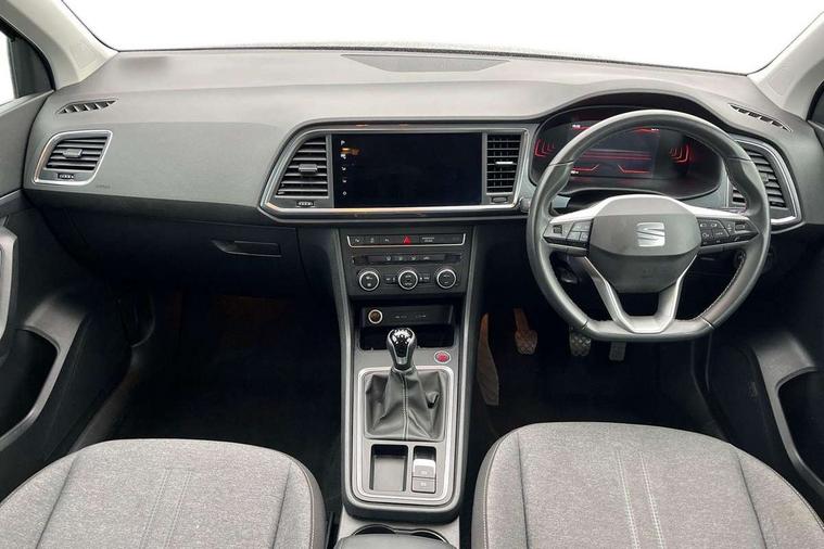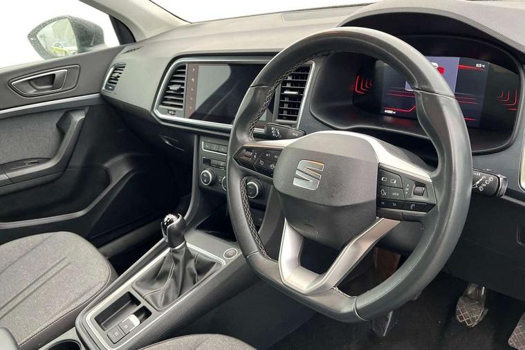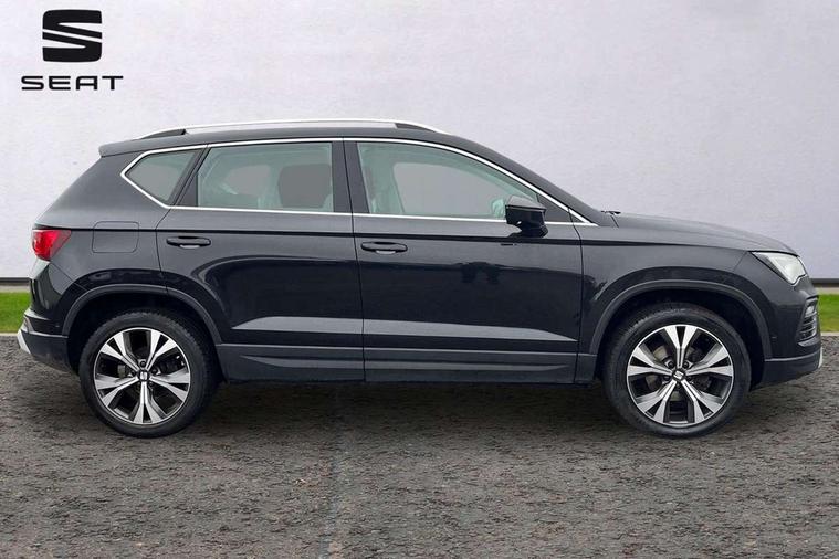 8" Digital cockpit, Colour multi-function on board computer display, Cruise control system with speed limiter, E-call, Outside temperature gauge, PAS, SEAT drive profile with driving experience button - Normal, Sport, Eco and Individual mode, steering and throttle response, Self parking functionality (includes front and rear parking sensors), Start/stop system, Tailgate, Trip computer, Wireless full link smartphone integration, Wireless phone charger, Steering wheel mounted audio/phone controls, Black wheel arch surrounds, Body colour bumpers, Chrome front grille frame, Chrome roof rails, Chrome side window trim, Daytime running lights, Door mirrors with welcome light silhouette, Dynamic headlight range control with self adjusting whilst driving, Electric adjustable/heated/folding door mirrors, Front and rear electric windows, Full LED headlamps with lens and LED front fog lamps with cornering function, LED rear tail lights with dynamic indicators, Rear fog lights, Rear side wing doors, Rear wash/wipe, Simulated exhaust pipes, Variable front intermittent wipers, 12V socket in front, 3 seat bench in 2nd row, 60/40 split folding rear seat, Cloth upholstery with front comfort seats, Drawer under right front seat, Dual zone climate control, Front and rear head restraints, Front centre armrest, Front seat back storage pockets, Height adjustable driver and passenger seat with lumbar adjustment, ISOFIX points in outer rear seats with top tether anchorage points, Leather steering wheel and gear knob, Rear armrest and easy back seat release mechanism from boot, Single front passenger seat, Interior lighting pack - Ateca, Navigation system pack with DAB - Ateca, 3x3 point rear seatbelts, ABS, Traction control system (TCS), Electronic stability control (ESC) and Electronic differential lock system (XDS), Airbags - Driver and front passenger airbag with deactivation, front side, two curtain and driver's knee airbags, Electric parking brake with auto hold function, Front and rear seatbelt reminder, Front assist with autonomous emergency braking, Hill hold control, Manual rear child locks, Single tone horn, Tiredness recognition system, Traction control, Tyre pressure monitoring system, Alarm, Keyless entry, Locking wheel bolts, Remote central locking, Chrome interior detailing, 18" Performance machined alloy wheels 36/2 in nuclear grey,