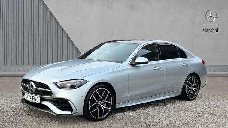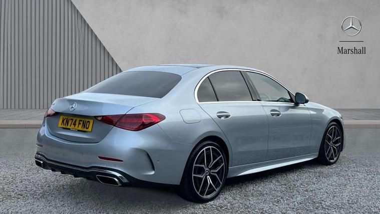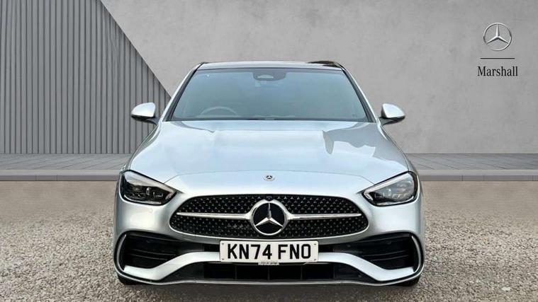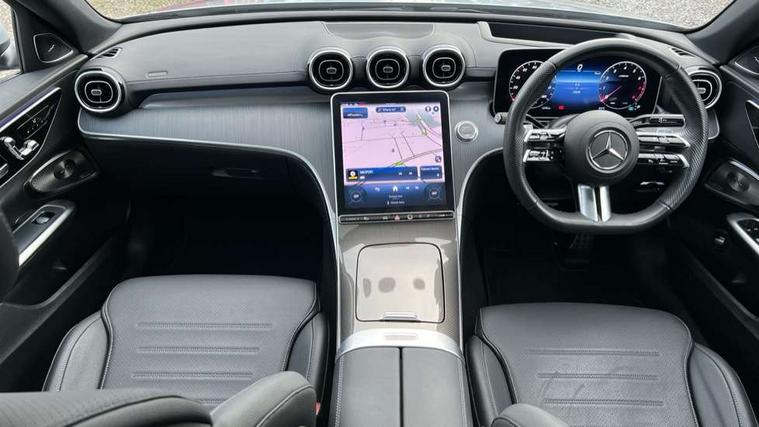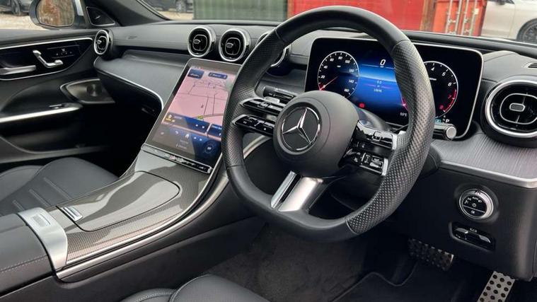 11.9" high resolution multimedia colour display, 12.3" digital instrument cluster display, Active parking assist with PARKTRONIC, Attention assist, DYNAMIC SELECT with a choice of driving modes (Comfort, ECO, Sport, Sport+, Individual), E-call, Extended MBUX functions, Finger print sensor, Fluorescent jacket for driver, Hard disc navigation, Head up Display, MBUX navigation premium, Mercedes me remote services, Outside temperature gauge, Service indicator (ASSYST), Smartphone integration, Sports direct steer speed sensitive steering, Status display for rear seat belts in instrument cluster, Traffic sign assist, Wireless charging system for mobile devices, 9G TRONIC 9 speed automatic transmission, Petrol Particulate Filter, Sport suspension, Burmester 3D surround sound system, DAB Digital radio, MBUX multimedia system, Adaptive brake lights, Adaptive high beam assist plus, AMG body styling front apron, rear apron and side skirts, AMG Line exterior, Body coloured bumpers, Body coloured door mirrors, Digital light LED headlamps, Electric panoramic glass sunroof, Electric windows with one touch opening/closing and obstruction sensors, Electrically adjustable and heated door mirrors, Heat insulating dark tinted glass, LED daytime running lights, LED Indicators, LED tail lights, LED third brake light, Noise acoustic glass, Radiator diamond grille with integrated Mercedes Benz star and louvre silver with chrome pins, Rain sensor with automatic windscreen wiper activation, Rear boot, Rear side wing doors, Two visible exhaust pipes integrated into rear bumper, 3 seat bench in 2nd row, 40:20:40 split folding rear bench seat, Ambient lighting premium, Ambient lighting with projection of brand logo, AMG floor mats, AMG line interior, Artico man-made leather upholstery, Auto Mercedes-Benz child seat recognition sensor, Black roof liner, Boot lid convenience closing feature, Comfort seats, Double cupholder in centre console, Electrically height/reach adjustable steering column, Folding rear seat backrest, Front and rear head restraints, Gearshift paddles on steering wheel, Illuminated door sills with Mercedes Benz lettering, Illuminated glove compartment stowage, Multifunction sports steering wheel in nappa leather, Rear top tether child seat ISOFIX attachment, Single front passenger seat, Sunvisors with illuminated vanity mirrors, THERMATIC 2 zone automatic climate control, AIR BALANCE Package - C Class, Energizing package plus - C Class, Interior light package - C Class, Keyless go comfort package - C Class, Memory package - C Class, Mirror package - C Class, Parking package with 360 degree camera - C Class, Stowage space pack - C Class, USB package plus - C Class, 3 rear 3 point seatbelts, Active bonnet pedestrian safety measure which detects an impact and raises bonnet, Adaptive brake system with HOLD function and brake drying in the wet, Anti-lock braking system (ABS), Black seat belts, Brake calipers with Mercedes-Benz lettering + perforated front brake discs, Child proof door locks, Drivers knee airbag, Drivers pelvis airbag, Dual stage driver/passenger airbags, Electric parking brake, Electronic Stability Programme (ESP), Front centre airbag between driver and front passenger seats, Front side airbags, Tyre pressure monitoring system, Warning triangle and first aid kit, Window airbags for driver, front passenger and rear passenger, Antitheft alarm system, Interior monitoring system and Increased antitheft protection, Central locking with interior switch, automatic locking and crash sensor with emergency opening function, Chrome surround in electric key, Urban guard vehicle protection plus, Black open pore aluminium lines wood trim with centre console in metal structure finish, Dashboard, instrument panel and beltlines in ARTICO man made leather in nappa look, 19" AMG multi spoke light alloy wheels painted black with high sheen finish, TIREFIT with tyre inflation compressor,