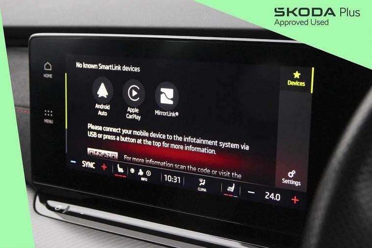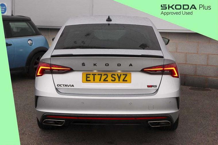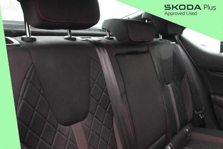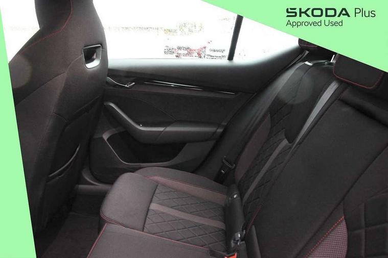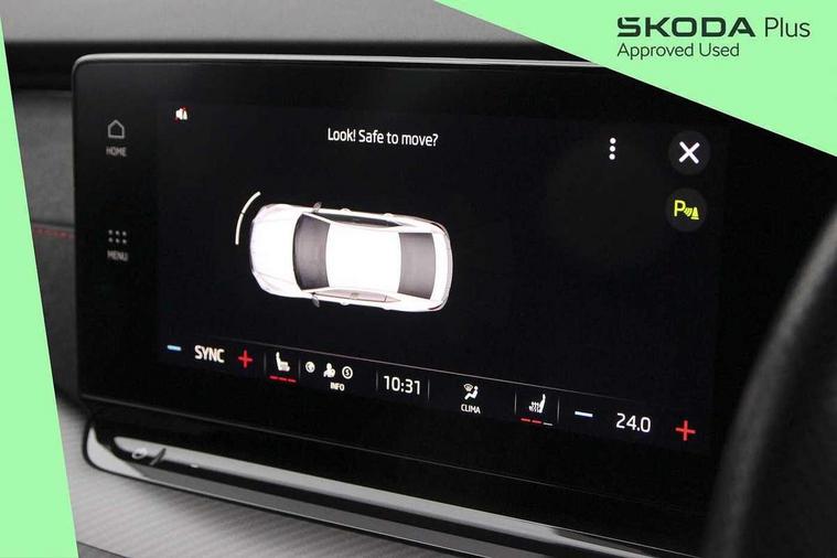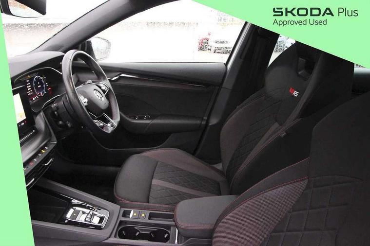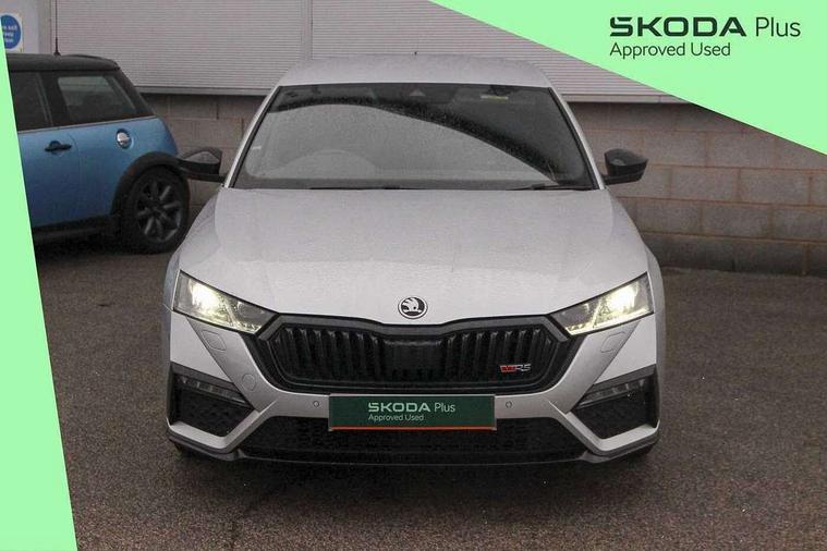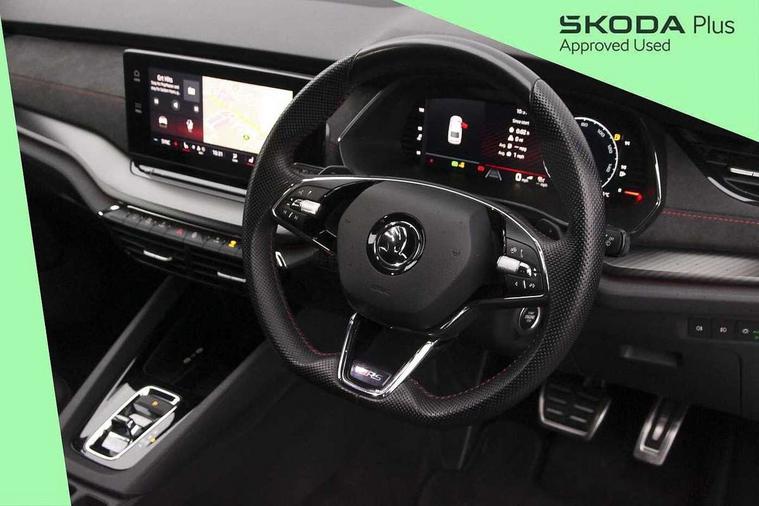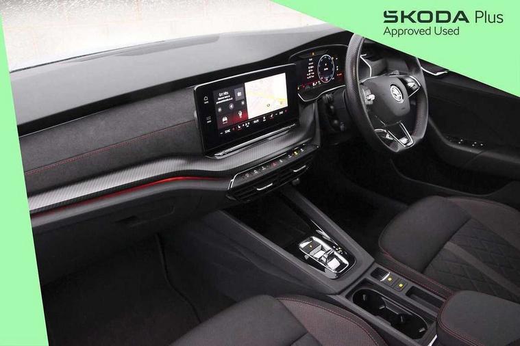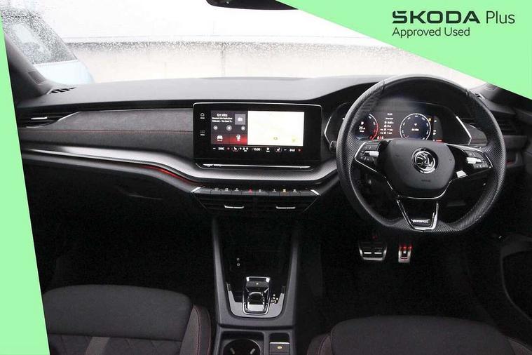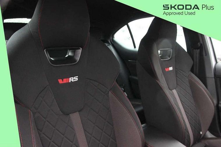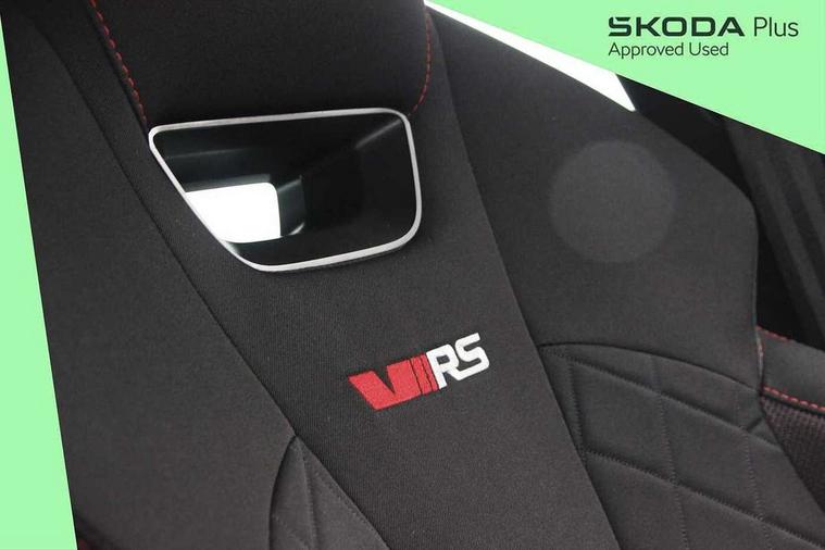 1x USB Type C port in rear view mirror (charging only), 2x USB Type C ports in rear of front centre armrest (charging only), Bluetooth system, Columbus satellite navigation with 10" touchscreen display, Driver fatigue sensor, eCall emergency system, Front and rear parking sensors with manoeuvre assist, Front assist system, Progressive dynamic steering, Speed limiter, Turn Assist, Virtual Cockpit - 10.25" digital display, Virtual pedal with electrically operated boot door (Rear LED lights (high functionality), dynamic indicators, Voice control system, Wireless SmartLink for Apple Car Play, Electronically controlled limited slip differential, Front and rear stabilizers, 2x USB Type C ports (for charging and data transfer), 8 Speakers, DAB Digital radio, Aero front windscreen wipers with intermittent function, Auto dimming rear view mirror, Body colour door handles, Chrome exhaust tailpipes, Door sills with vRS logo, Electric front and rear windows, Exterior gloss black sports styling including front grille, side strip, window surrounds, door mirror and badging, Full LED Matrix headlights with AFS, rear LED lights (high functionality) and dynamic indicators and cornering front fog lights, Headlight washers, Heated rear windscreen, High level third brake light, Ice scraper in fuel cap, LED daytime running lights, Rain and light sensors, Rear fog light on one side, Rear privacy glass, Rear side wing doors, vRS bumpers and lip spoiler, 3 rear headrests, 3 seat bench in 2nd row, 4 foldable roof handles, Aluminium pedals, Black headlining, Black microsuede padded dash panel with red contrast stitching, Chrome inner door handles, Front centre armrest, Front head restraints, Heated front seats, Illuminated glovebox, Leather trimmed gearshift lever, Luggage compartment lighting x1 light, Mechanical rear seat release, Parcel shelf - folding, Single front passenger seat, Sunglasses storage, Textile floor mat set, Three spoke leather sports multifunction steering wheel with paddles, Ticket holder, Umbrella in door panel, Unsplit rear bench seat and split folding backrest, LED interior light pack - Octavia, 3 point front/outer rear seatbelts+pre-tensioners, Alarm with interior monitoring, tilt sensor and back up horn, Automatic door unlocking in case of crash, Automatic fuel cut off in case of crash, Automatic warning lights in case of emergency braking, Curtain airbags and front side airbags, Driver and front passenger airbags, Drivers knee airbag, Electronic parking brake, ESC including ABS, EBV, MSR, ASR, EDS, HBA, DSR, Front and rear disc brakes, Front central airbag, Hill hold control, Hill start assist, ISOFIX on front passenger seat and outer rear seats, Manual rear child locks, Passenger airbag deactivate switch, Pro active services, Red brake calipers, Two tone horn, Tyre pressure monitor, Visual and acoustic seat belt reminder, Warning reflectors in front door, Door locks with immobiliser, Keyless entry and start/stop including rear doors, Remote central locking, Carbon optic decorative inserts, Gloss black air vent surrounds, 19" Altair anthracite alloy wheels,