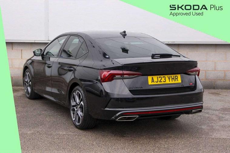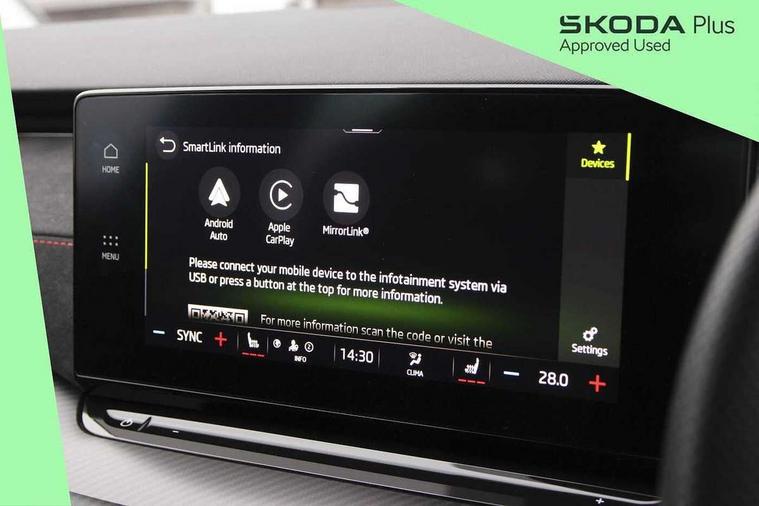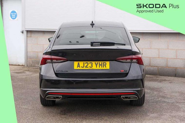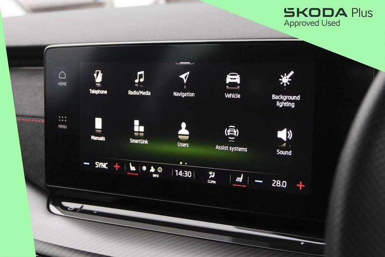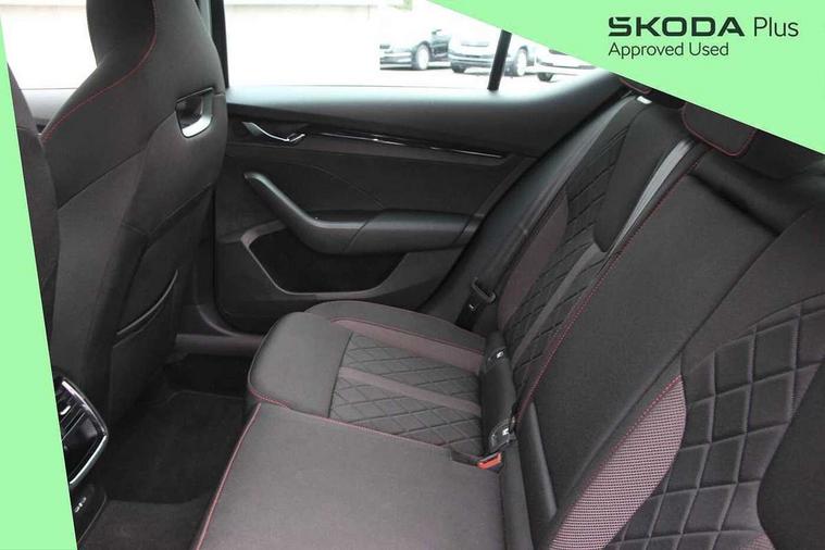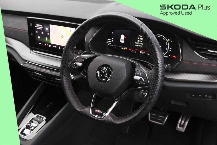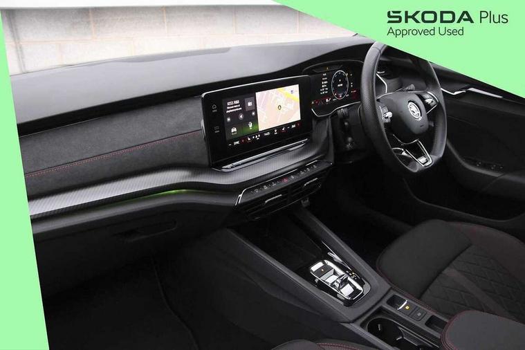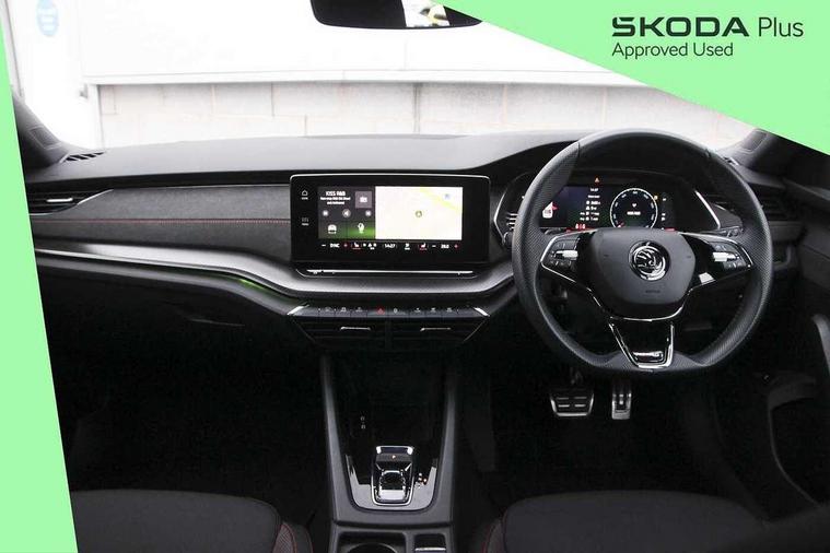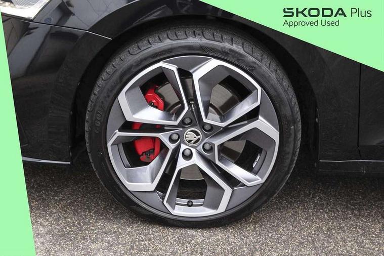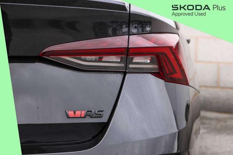 1x USB Type C port in rear view mirror (charging only), 2x USB Type C ports in rear of front centre armrest (charging only), Bluetooth system, Columbus satellite navigation with 10" touchscreen display, Driver fatigue sensor, eCall emergency system, Front and rear parking sensors with manoeuvre assist, Front assist system, Progressive dynamic steering, Speed limiter, Turn Assist, Virtual Cockpit - 10.25" digital display, Virtual pedal with electrically operated boot door (Rear LED lights (high functionality), dynamic indicators, Voice control system, Wireless SmartLink for Apple Car Play, Electronically controlled limited slip differential, Front and rear stabilizers, 2x USB Type C ports (for charging and data transfer), 8 Speakers, DAB Digital radio, Aero front windscreen wipers with intermittent function, Auto dimming rear view mirror, Body colour door handles, Chrome exhaust tailpipes, Door sills with vRS logo, Electric front and rear windows, Exterior gloss black sports styling including front grille, side strip, window surrounds, door mirror and badging, Full LED Matrix headlights with AFS, rear LED lights (high functionality) and dynamic indicators and cornering front fog lights, Headlight washers, Heated rear windscreen, High level third brake light, Ice scraper in fuel cap, LED daytime running lights, Rain and light sensors, Rear fog light on one side, Rear privacy glass, Rear side wing doors, vRS bumpers and lip spoiler, 3 rear headrests, 3 seat bench in 2nd row, 4 foldable roof handles, Aluminium pedals, Black headlining, Black microsuede padded dash panel with red contrast stitching, Chrome inner door handles, Front centre armrest, Front head restraints, Heated front seats, Illuminated glovebox, Leather trimmed gearshift lever, Luggage compartment lighting x1 light, Mechanical rear seat release, Parcel shelf - folding, Single front passenger seat, Sunglasses storage, Textile floor mat set, Three spoke leather sports multifunction steering wheel with paddles, Ticket holder, Umbrella in door panel, Unsplit rear bench seat and split folding backrest, LED interior light pack - Octavia, 3 point front/outer rear seatbelts+pre-tensioners, Alarm with interior monitoring, tilt sensor and back up horn, Automatic door unlocking in case of crash, Automatic fuel cut off in case of crash, Automatic warning lights in case of emergency braking, Curtain airbags and front side airbags, Driver and front passenger airbags, Drivers knee airbag, Electronic parking brake, ESC including ABS, EBV, MSR, ASR, EDS, HBA, DSR, Front and rear disc brakes, Front central airbag, Hill hold control, Hill start assist, ISOFIX on front passenger seat and outer rear seats, Manual rear child locks, Passenger airbag deactivate switch, Pro active services, Red brake calipers, Two tone horn, Tyre pressure monitor, Visual and acoustic seat belt reminder, Warning reflectors in front door, Door locks with immobiliser, Keyless entry and start/stop including rear doors, Remote central locking, Carbon optic decorative inserts, Gloss black air vent surrounds, 19" Altair anthracite alloy wheels,