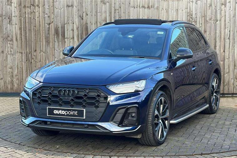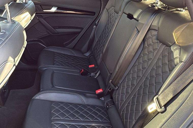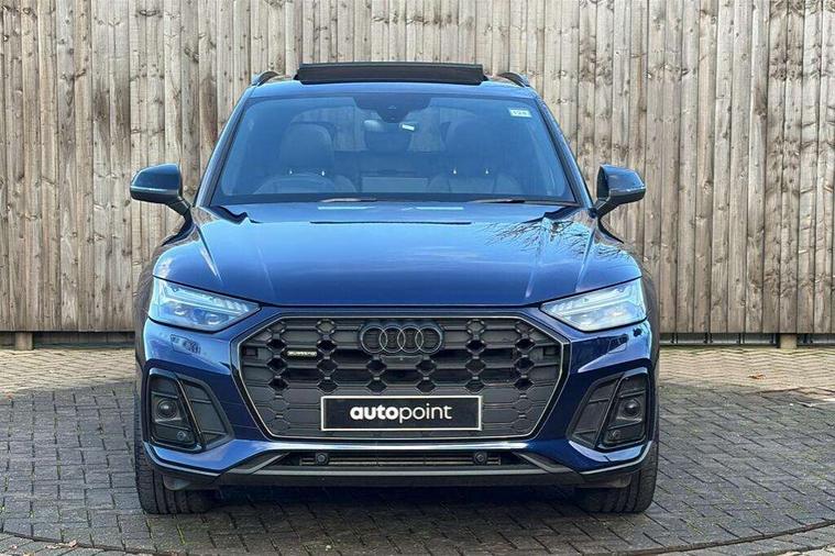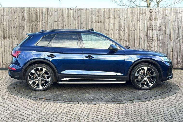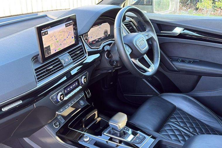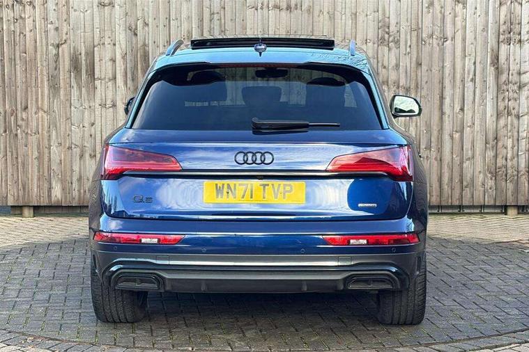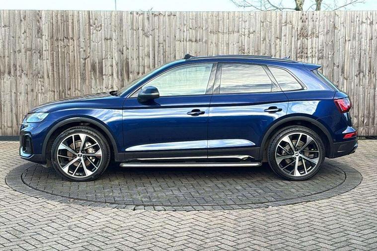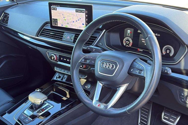 360 degree camera with top view, Advanced key with electric hands free boot opening system, Audi connect safety and service (e-call), Audi connect with Amazon Alexa Integration, Audi drive select, Audi virtual cockpit plus with 12.3" screen and three different layout designs, Audi wireless smartphone interface, Automatic start-stop system with coasting functionality and efficiency programme, Electro - mechanical power assisted steering, Head up Display, MMI navigation plus with 10.1" touch screen, Mobile telephone preparation - bluetooth interface, Park assist with parking aid plus, Power tailgate, Service interval indicator, Voice control system with Audi hotword activation "Hey Audi", Adaptive air suspension, Quattro on demand, 2 x USB charging port with aux input socket, Bang + Olufsen sound system, DAB Digital radio, Acoustic windscreen, Audi beam with 'Vorsprung' logo, Auto dimming rear view mirror, Automatic headlights and windscreen wipers, Black roof rails, Body colour bumpers, Body colour underbody protection, Chrome plated exhaust trims, Door sills in Selenite silver, Electric adjustable/heated/folding door mirrors, Electric panoramic glass sunroof, Front air inlet surrounds in titanium black, Front and rear electric windows, Gloss black finish for Audi rings and Q5 logos without engine badging, Headlight washers, High gloss black B pillar trims and triangular rear door trim, Lower bumpers painted in contrast Manhattan grey, Matrix LED headlights with dynamic front and rear indicators, Rear chrome trim strip below lights, Rear privacy glass and rear side windows, Rear spoiler, Rear wiper, Roof bars, Running boards, 3 rear headrests, 3 spoke heated leather multi-function steering wheel, 4 way electric lumbar support for driver and front passenger, 40:20:40 split folding rear seat with rear centre armrest, Black cloth headlining, Comfort front centre armrest, Contrast stitching on seats, steering wheel and gear lever gaiter, Deluxe 3 zone electronic climate control, Electrically adjustable front seats with driver memory, Fine Nappa leather upholstery with diamond pattern contrast stitching + front sport seats with S embossed logo, Front/rear floor mats, Gear lever in black leather, Heated front and outer rear seats, Height adjustable front head restraints, Illuminated door sill trims with aluminium inlays, ISOFIX child seat mounting and top tether, Luggage compartment cover, Massage function for front seats, Rear seat bench plus, Removable luggage compartment floor, Stainless steel pedals, Sunvisors with vanity mirrors, Black styling package - Q5, City Assist pack - Q5, Extended interior upholstery pack - Q5, Extended LED Interior multi coloured Lighting Pack - Q5, Tour pack - Q5, 3 point seatbelts on all seats, 6 airbags - Driver, front passenger, curtain and side airbags, Electrically operated child locks on rear doors, Electromechanical parking brake, Electronic stabilisation control including ABS, ASR and EDL, Front passenger airbag deactivation, Hill descent control, Hill hold assist, Multi collision brake assist, Pop-up bonnet for pedestrian protection, Pre sense city, Seat belt force limiter, Seatbelt monitoring, Tyre pressure warning, Warning triangle and first aid kit, Anti theft alarm, Anti-theft wheel bolts, Keyless Go access/ignition system, Piano black finish inlay, Tool kit, Tyre repair kit,