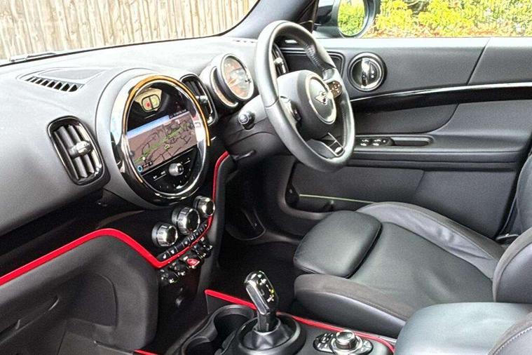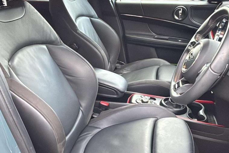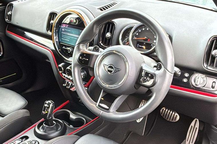 Active Guard incl speed limiting and lane departure functions with auto steering, and front collision warning with brake intervention, Automatic start/stop function with brake energy recuperation, Compatible mobile phone bluetooth with audio streaming, Cruise control with brake assist, Electro-mechanical speed dependant steering assistance, Instrument cluster, MINI Driving Modes - centre toggle switch to control driving setting (sport, mid and green), Mini E-call, On board computer, Rear parking distance control, 51 Litre fuel tank, Double Vanos system, Fully variable valve control, High precision injection, Performance Control, Steptronic sport transmission with double clutch and steering wheel paddles, FM tuner and DAB digital radio, 3rd brake light, Bonnet scoop, Chrome fuel filler cap, Day time driving lights, Dynamic brake lights, Electric windows, Heated rear window, Heated windscreen washer jets, John Cooper Works - aerodynamic kit (front and rear apron, spoiler), front and rear sport bumpers and part-painted side sills with door sill finishers, John Cooper Works Logo, LED fog lights, LED Headlights, Metal door sill strips with Cooper S imprint, Model logo, Model logo on Tailgate, Rain sensor with auto headlights, Rear fog lights, Rear side wing doors, Rear window wiper, Side scuttle panel with integrated indicator, Split rear doors, Sun/heat protection glass, White indicator lenses, 12V socket in centre console, 3 seat bench in 2nd row, 360L luggage compartment capacity, 4 lashing eyes in luggage compartment, 40:20:40 split folding rear seats, Anthracite headlining with grab handles and clothes hooks, Chrome interior highlights, Colour line - Carbon black, Cupholders, English handbook, Floor mats, Front headrests, Glove compartment, Height and length steering column adjustment, Interior lighting with 12 basic colours selectable via toggle switch in roof, Isofix rear child seat preparation, LED reading lights, vanity mirror lights, front foot well light and spotlight on front seats, Manual air conditioning, Mini John Cooper Works leather gearshift lever and handbrake gaiters, Multifunction steering wheel, Nappa leather steering wheel with MINI Yours logo, Rear headrests, Single front passenger seat, Stainless steel pedals and foot rest, Storage compartments in doors, Sunvisors with vanity mirrors, Excitement pack - Countryman, Navigation pack - Countryman, Piano black exterior pack - Countryman Cooper S/SD/SE/Boardwalk, 2 tone horn, 3 point seatbelts on all seats, 6 Airbags - front, side, head and seat belt tensioners, Anti-lock braking system (ABS), DSC - Dynamic Stability Control, Electronic handbrake, Front and rear disc brakes, Hill start assist, Manual rear child locks, Tyre pressure monitoring system, Alarm system with tilt sensor, monitoring doors, bonnet interior and tailgate, Auto drive away locking, Deadlocking function, Electronic vehicle immobiliser, Locking wheel bolts, Start/stop toggle with keyless go, Piano black JCW interior trim, Tool kit,