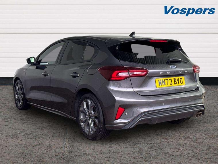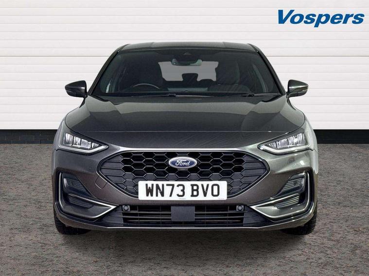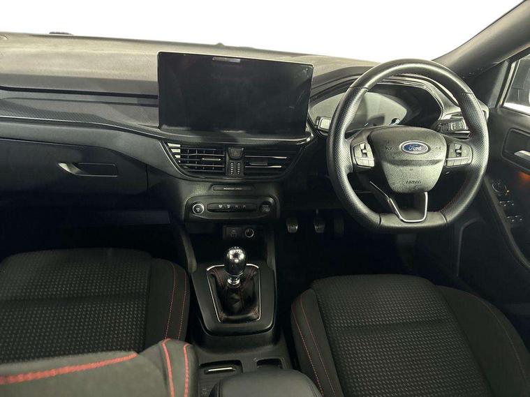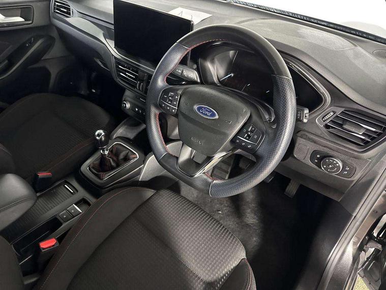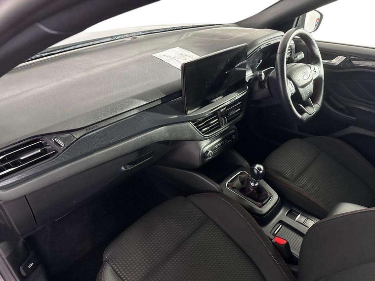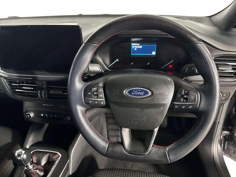 4.2" Colour TFT Ice blue illumination analogue cluster with trip computer, Bluetooth system, Digital clock, Easy fuel capless refuelling system, Eco mode, Ford SYNC 4 Navigation with 13.2'' touchscreen, DAB radio, Emergency Assistance, Apple Carplay & Android Auto, 6 speakers & FordPass Connect, Lane keeping system - lane keeping alert and lane keeping aid, PAS, Rev counter, Selectable drive mode, Service interval indicator, Sports tuned suspension, 2 USB ports, Auto headlamps (on/off), Body coloured door handles, Electrically operated front and rear windows with one touch opening and closing, Electrically operated heated power fold door mirrors with puddle lamp with side indicators, Front variable intermittent wipers with electric wash, Full fixed LED headlamps, Heated rear window, LED daytime running lamp, LED rear lamps, LED third brake light, Polished twin tailpipe, Privacy glass, Quickclear heated windscreen, Rain sensor, Rear side wing doors, Tailgate wash/wipe, Unique ST-Line grille, full bodystyling kit, and large body coloured rear spoiler, 3 rear headrests, 3 seat bench in 2nd row, Cloth upholstery, Dual zone electronic air temperature control, Height adjustable front headrests, Isofix child seat preparation, Reach + rake adjustable steering column, Single front passenger seat, 3x3 point rear seatbelts, ABS+Electronic Brake force Distribution, Auto hold function, Driver airbag, EDL traction control, Electronic parking brake, Electronic stability control, Front and rear seatbelt reminder, Front inertia reel height adjustable seatbelts with pre-tensioners, Front passenger airbag, Front side airbags, Passenger airbag deactivate switch, Post collision braking, Pre collision assist with autonomous emergency braking and pedestrian/cyclist detection, Remote/power child rear door locks, Side curtain airbags, Three rear inertia reel lap/diagonal seatbelts, Tyre pressure monitoring system, Keyless entry and keyless start, MyKey system, Remote central locking & engine immobiliser, Thatcham alarm with power door dead locks, 17" 5 spoke Rock mettalic finish alloy wheels with mini spare wheel,