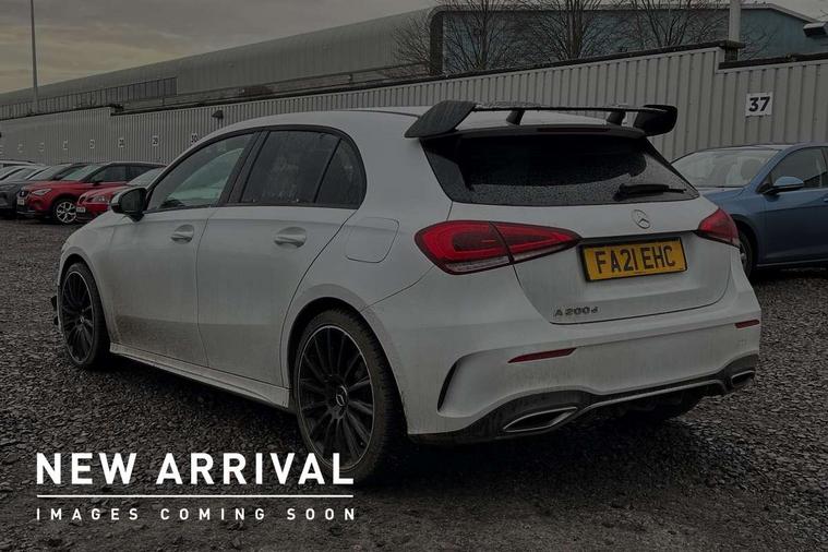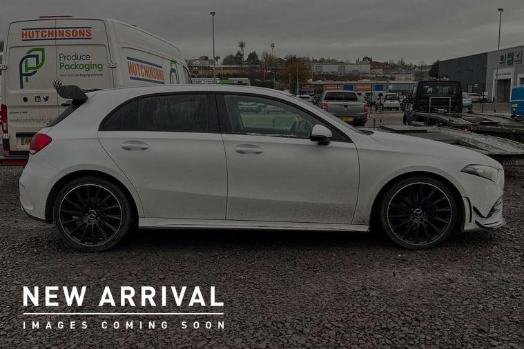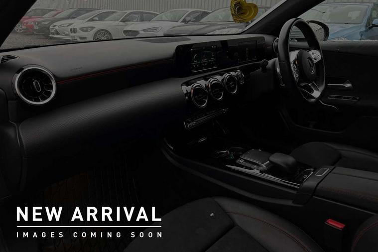 180 degree rear view camera with parking guidelines, 7" colour screen in instrument panel, 7" touchscreen media display, Attention assist, Brake pad wear indicator warning light, Car wash mode, Cruise control + speed limiter, Direct steering, Dual bluetooth interfaces, DYNAMIC SELECT with a choice of driving modes (ECO, Comfort, Sport and Individual), ECO start/stop function, Fluid level warning indicator for fuel, oil, coolant and washer fluid, Hard-disk navigation, Hey Mercedes Voice activation, Lamp failure indicator, Mercedes me connect including emergency call system, accident recovery, breakdown and maintenance management, Mercedes me remote services, Outside temperature gauge, Owners manual in English, Pre-installation for private car sharing, Preinstallation for Mercedes Benz link, Service indicator (ASSYST), Speed sensitive power steering, Trip computer, Lowered comfort suspension, Rear axle torsion beam, 2 USB ports (type C) in rear stowage compartment and one in front of center console, 6 speakers, DAB Digital radio, MBUX multimedia system with DAB digital radio and touchpad including satellite navigation, Mercedes-Benz sound system - 100W, 4 Electric Front and Rear windows, Adaptive brake lights, AMG bodystyling - Front apron with splitter in chrome, rear apron with chrome trim and chrome visible trim elements in tailpipe, Black weather strip, Body colour bumpers, Body colour door handles, Body colour side skirt, Body coloured door mirrors, Chrome beltline trim, Diamond radiator grille with chrome pins and silver louvre + chrome insert, Electric adjustable and heated door mirrors with integrated LED side indicators, Exhaust system - Twin visible tailpipes in polished stainless steel, Headlamp assist automatic headlamp activation, Heated glass rear windscreen + timer control, LED high performance headlamps with integrated LED daytime running lights, LED tail lamp, LED third brake light, Privacy glass, Radio aerial, Rain sensing windscreen wipers with two sensitivity settings, Rear fog lights, Rear wiper, Window line trim strip in chrome, 3 Spoke flat bottom leather multi function steering wheel with perforated leather in grip area, 40:20:40 split folding rear seats, Artico man-made leather/Microfibre Dinamica upholstery with red contrast stitching, Auto Mercedes-Benz child seat recognition sensor, Black air vents with surround in silver chrome, Black roof lining, Brushed stainless steel sports pedals with rubber studs, Controller on centre console with chrome surround, Floor mats with stitched edging and AMG lettering, Front centre armrest with storage compartment, Front door sills with Mercedes Benz lettering, Front seat backs luggage nets, Front seat cushion length adjustment, Galvanished gear shift paddles on steering wheel, Heated front seats, Height/reach adjustable steering column, Interior mirror with reading lamps in black and frameless, Manual height adjustable front seats, Rear head restraints, Seat occupancy sensor for front passenger seat, Sports seats with integrated headrests, Stowage compartment in centre console with retractable cover, Sunvisors with illuminated vanity mirrors, Touchpad on center console, Twin front cupholders, Two zone thermotronic luxury automatic climate control, Light and sight pack - A Class, Seat comfort pack - A Class, 3 rear 3 point seatbelts, ABS with Brake Assist, Active bonnet, Active brake assist includes forward collision warning system with autonomous braking, Adaptive brake assist with hold function and hill start assist, Black seatbelts, Childproof locks manually operated for rear doors and electrically operated for rear power windows, Crash responsive emergency lighting, Driver and passenger head and side airbags, Drivers knee airbag, Dual stage driver/passenger airbags, Electronic parking brake, ESP curve dynamic assist, ESP with ASR, Front and rear seatbelt reminder, Front brake callipers with Mercedes Benz lettering, ISOFIX and top tether child seat fixing points in two outer rear seats, Tyre pressure monitoring system, Warning triangle and first aid kit, Window airbags, Alarm system/interior protection/immobiliser, Keyless Go, Remote central locking and crash sensor with emergency opening function, Urban guard vehicle protection system with immobiliser and interior protection, Dinamica microfibre trim in black, 18" AMG 5 twin spoke light alloy wheels in titanium grey with highsheen finish, Summer tyres, Tirefit sealant kit,