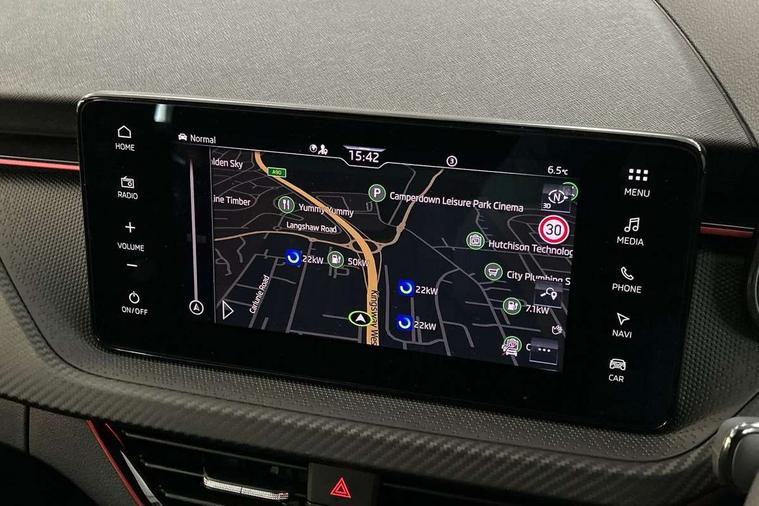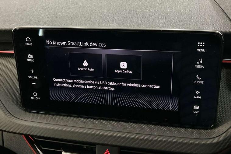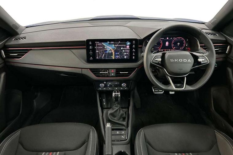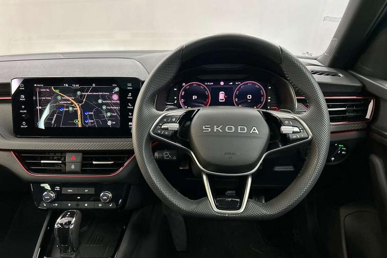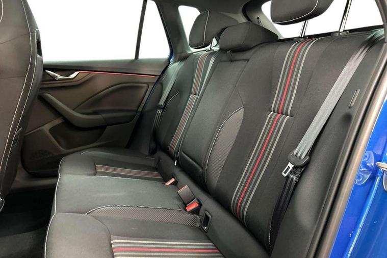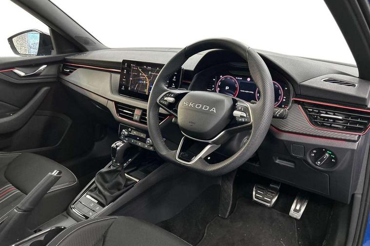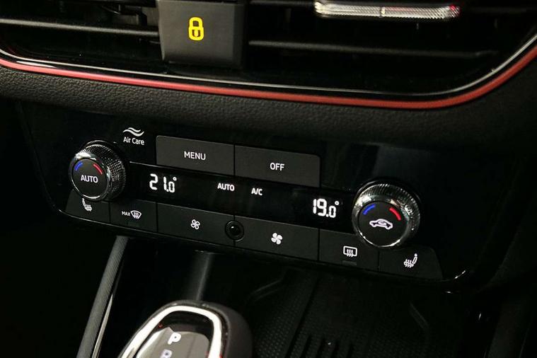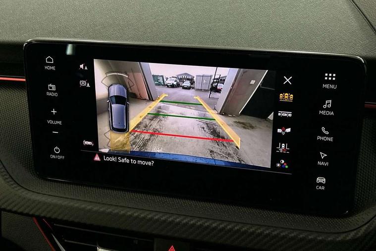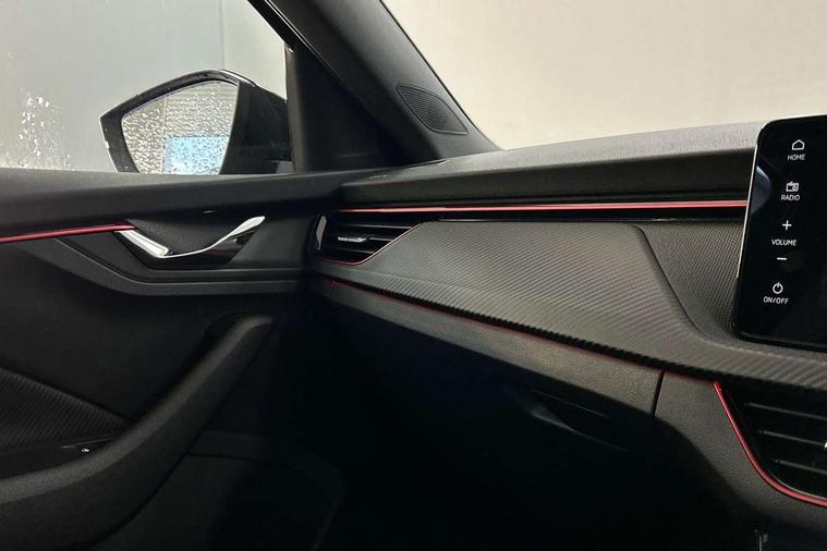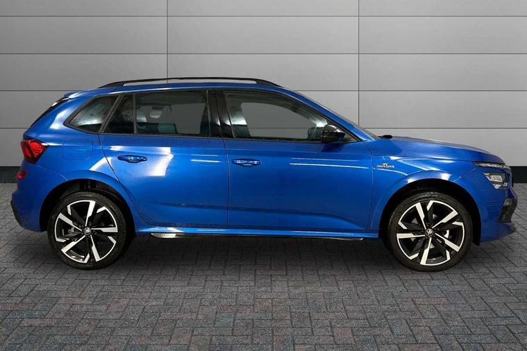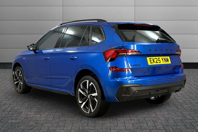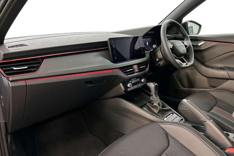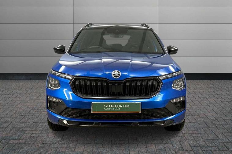 Advanced driver attention and drowsiness monitor, Bluetooth system, E-call, Front assist system, PAS, Rear parking sensors, Rear view camera, Service indicator, Speed limiter, Traffic sign recognition, Virtual cockpit with 10.25" display, Voice control system, Wireless smartlink, 4 USB C ports, 8 Speakers, 9.2" Skoda navigation display, DAB Digital radio, Auto dimming rear view mirror, Automatic headlight control with coming home and leaving home feature, Black door mirrors, Black radiator grille, Black rear diffuser, Black roof spoiler, Body colour bumpers, Body colour door handles, Boot lettering in black, Extended tailgate glass, Fixed panoramic sunroof with black roof rails, Front and rear electric windows, Heated rear window, LED daytime running lights, LED high beam, LED low beam, LED third brake light, Light sensors, Monte carlo plaque, Privacy glass, Rear side wing doors, Rear wiper, Ticket holder inside windscreen, 12V socket in luggage compartment, 3 seat bench in 2nd row, Aluminium pedals, Ambient lighting in white/red, Art leather carbon decor inserts, Art leather carbon door inserts, Black roof lining, Cargo elements, Chrome inner door handles, Driver and passenger sun visors with vanity mirror, Dual zone climate control, Front and rear roof lights, Front centre armrest, Front head restraints, Glove compartment with illumination, Height adjustable driver seat, Height adjustable front passenger seat, Ice scraper, Inner circulation control with pollen filter, ISOFIX on front passenger seat, Isofix preparation for back seats, Leather gearknob and handbrake lever, Manual lumbar support for front seats, Monte Carlo cloth upholstery, Net package and top tether hooks in boot space, Net under rear shelf, Pocket on the back of both front seats include mobile phone pockets, Rake/reach adjustable steering wheel, Reading lights, Rear centre armrests, Red hotstamping, Single front passenger seat, Sports seats, Textile floor mats, Third rear headrest, Top tether for front passenger seat, Umbrella in driver's door, Light and view plus package - Kamiq, 3x3 point rear seatbelts, Airbags - driver and front passenger, Disc brakes, ESP, Extended and predictive pedestrian/cyclist protection, Front passenger airbag deactivation switch, Front side airbags with curtain airbags, Hill hold control, Manual leather parking brake, Manual rear child locks, One tone horn, Seatbelt reminder for driver an co-driver, Traction control, Tyre pressure monitor, Anti-theft alarm system with interior monitoring, backup horn, towing protection and remote central locking with SAFE system, Anti-theft wheel bolts, Electronic engine immobilizer, 18" Ursa black diamond cut alloy wheels,