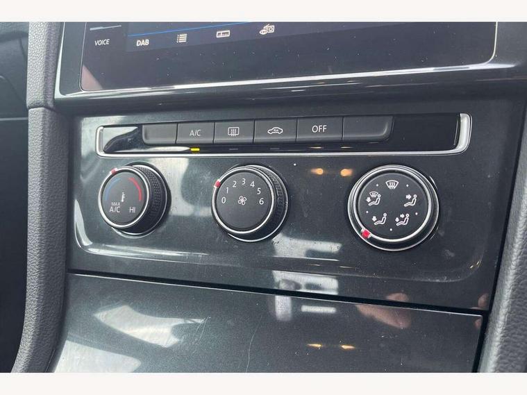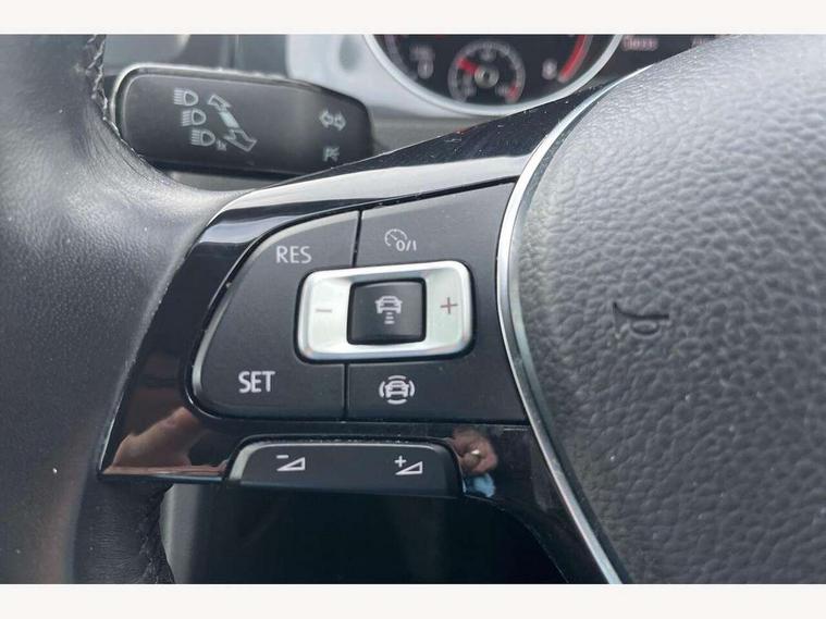 'Lights On' Reminder warning buzzer, 8" colour touch screen, ACC - Adaptive cruise control with front assist, forward collision warning, distance monitoring, city emergency brake and speed limiter, App-Connect, Bluetooth telephone and audio connection for compatible devices, Brake pad wear indicator warning light, Drive mode selector, Driver alert system, Driver profile selection, Front assist, radar sensor controlled distance monitor, city emergency braking + predictive pedestrian protection, Front assistant collision mitigation, Instrument cluster in white, Multifunction computer with visual gear change recommendation for fuel consumption, Power assisted speed sensitive electro-mechanical steering, Speedo, rev counter, electronic odometer, trip, service interval display, exterior temperature and fuel gauge, Stop/start system, Ultrasonic front and rear optical and audible parking sensors, Warning buzzer and light for front seatbelts unfastened, Battery regeneration during braking, XDS electronic differential lock, 8 speakers, Composition media system, DAB Digital radio receiver, MP3/WMA compatability, SMS Functionality, USB and SD card connectivity, Aerodynamic black radiator grille with chrome trimmed insert, Automatic coming/leaving home lighting function, Automatic dimming rear view mirror/rain sensor, Black rear diffuser, Body colour bumpers, Body colour door handles, Body colour door mirrors with integrated indicators, Electric front windows, Electric rear windows, Electrically adjustable and heated door mirrors, Glavanised body, Heated rear windscreen, High level 3rd brake light incorporating LED Technology, Range adjustable headlights via infotainment system with LED daytime running lights, Rear number plate lights incorporating LED technology, Rear window aerial, Rear window wash/wipe with intermittent wipe, Reflectors in all doors, Remote electrically foldable door mirrors, door mirror puddle lights and reverse activated kerb-view adjustment on passengers door mirror, Tailgate with integrated rear roof spoiler, Windscreen wipers/ intermittent wipe + 4 position delay, 12V socket in luggage compartment, 3 rear headrests, 4 load lashing points in luggage compartment, 60/40 split folding rear seat backrest, Bag hook in luggage compartment x 2, Cooled glovebox, Dust/pollen filter, Front and rear reading lights incorporating LED technology, Front centre armrest with storage compartment and two rear air vents, Front seat back storage pockets, Grab handles front x 2, rear x 2 with integrated coat hooks, Height and reach adjustable steering wheel, Illuminated vanity mirrors, Instrument lighting white adjustable panel illumination, Interior light delay, Isofix preparation for 2 rear child seats, Load through provision with rear centre armrest and cupholders x2, Luggage compartment light, Multifunction leather steering wheel with leather trimmed gear knob, Overhead storage box, Pearl grey headlining, Storage box in luggage compartment, Storage compartment in roof console with cover, Storage compartments in front doors, Storage compartments in rear doors, Stowable luggage compartment cover, Sun visors, Three spoke multi-function leather trimmed steering wheel and gearknob, Variable boot floor, height adjustable and removable, Mirror pack - Golf, 3 rear three point seatbelts, Airbags - Driver's and front passenger's, curtain airbag, Driver's knee, front side impact and passenger's airbag deactivation switch, Anti-lock Braking System (ABS) with Hydraulic Brake Assist (HBA), Automatic post collision braking system, Child locks on rear doors, Driver/Passenger optimised head restraints, Electronic parking brake with auto hold, Electronic stability control (ESC) including Electronic differential lock (EDL) and ASR (Traction control) with deactivation via infotainment system, Pre crash preventive occupant protection, Three point height adjustable front seatbelts with tensioners, Tyre pressure loss indicator, Alarm with interior protection, Electronic engine immobiliser, Remote central locking with 2 remote folding keys, Brushed dark silver decorative inserts in dash and door panels, Chrome plated air vent surround, Chrome-plated light switch surround, Polar night black centre console, Steel space saver spare wheel,