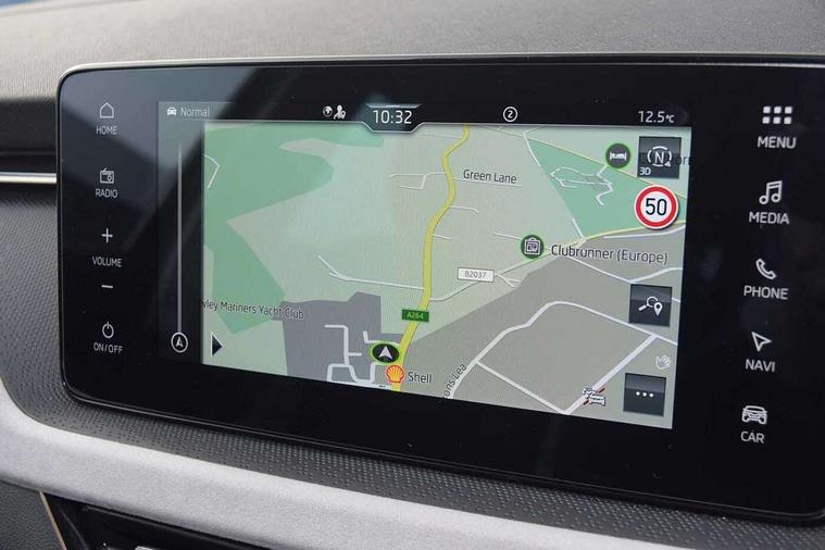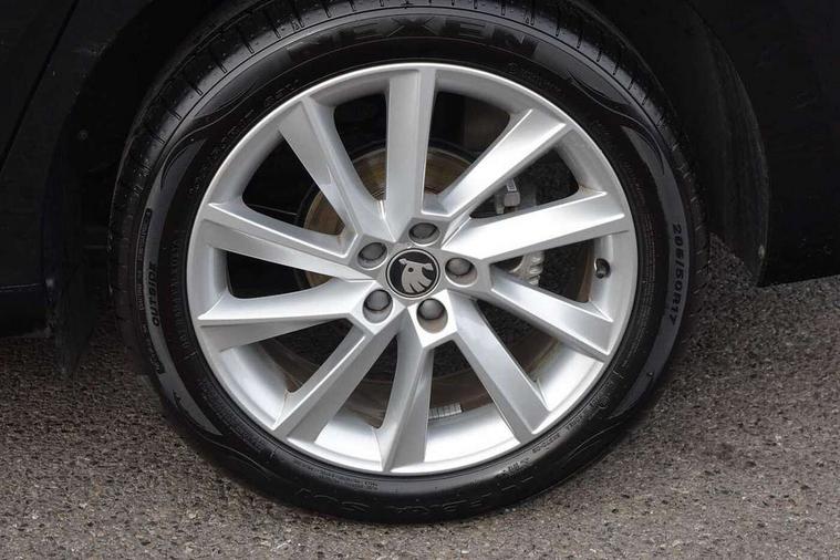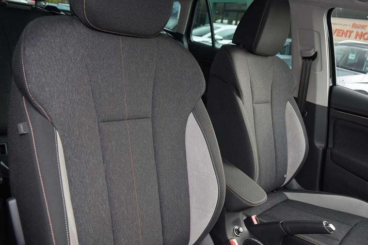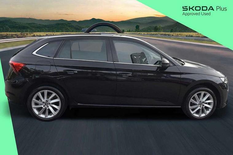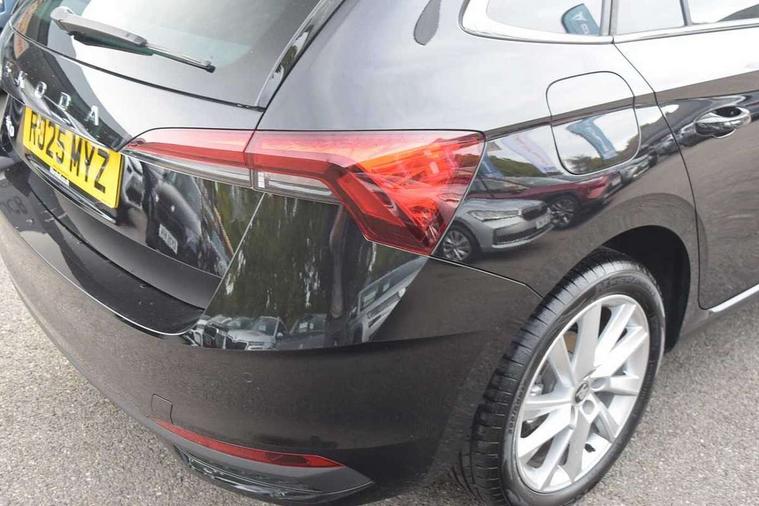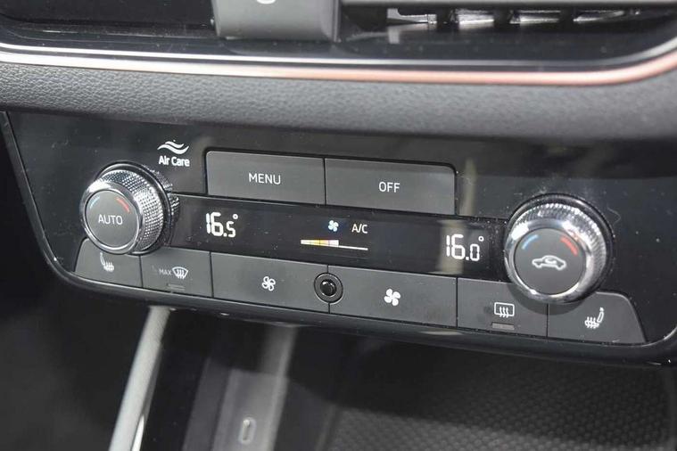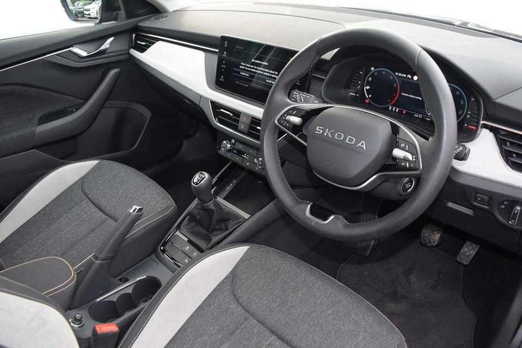 Advanced driver attention and drowsiness monitor, Bluetooth, e-Call (emergency call), Front assist system, PAS, Rear parking sensors, Rear view camera, Speed limiter, Tailgate, Traffic sign recognition, Virtual Cockpit - 10.25" digital display, Voice control system, Wireless smartlink, 4 USB C ports, 8 Speakers, 9.2" Skoda navigation display, DAB radio, Auto dimming rear view mirror, Automatic headlamp activation with Coming home and Leaving home feature, Automatic high/low beam, Automatic intermittent wipers, Body colour bumpers, Body colour door mirrors and handles, Chrome moulding around grille, Chrome window frames, Front and rear electric windows, Heated rear window, LED 3rd brake light, LED brake lights, LED daytime running lights, LED front turning lights, LED high beam, LED low beam, Light sensors, Privacy glass, Rear LED fog light, Rear side wing doors, Rear wiper, Tinted windows, Unique dark chrome design logo on alloy wheels, 12V socket in luggage compartment, 3 seat bench in 2nd row, Ambient lighting in white/red, Black / Copper armrest stitching, Cargo elements, Chrome inner door handles, Copper hotstamping, Door inserts in accent black, Driver and passenger sun visors with vanity mirror, Dual zone climate control, Front and rear roof lights, Front centre armrest, Front head restraints, Glasses storage in roof liner, Height adjustable driver seat, Height adjustable passenger seat, Ice scraper, Illuminated glove compartment, Inner circulation control with pollen filter, ISOFIX for front passenger seat, Isofix preparation for back seats, Leather gearknob and handbrake lever, Lodge cloth upholstery, Luggage net under rear parcel shelf, Manual lumbar support for front seats, Net package and top tether hooks in boot space, Pearl grey ceiling, Pocket on the back of both front seats, incl. mobile phone pockets, Rear centre armrest, Single front passenger seat, Skoda lettering on steering wheel, Textile floor mats, Third rear headrest, Ticket holder, Top tether for front passenger seat, Umbrella in driver's door, Convenience pack without rear camera - Scala, 3x3 point rear seatbelts, ABS, Child locks, Curtain airbags and front side airbags, Disc brakes, Driver and front passenger airbags, ESP, Hill hold control, Manual leather parking brake, One tone horn, Passenger airbag switch off function, Seatbelt reminder for driver and front passenger, Tyre pressure monitoring system, Anti theft alarm system with interior monitoring, backup horn and towing protection, Anti-theft wheel bolts, Remote central locking with 2 remote folding keys, SAFE function for remote central locking, Decorative inserts,