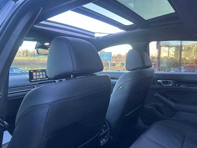 10.2" Multi information display, Adaptive cruise control, Adaptive motion for electric power steering, Adjustable speed limiter, Agile handling assist, BLIS (Blind Spot Information System) with Cross Traffic Monitor, Bluetooth hands free telephone connection, Driving modes, Economy mode, Electric power steering wheel with variable gear ratio steering, Emergency call service, Emergency stop signalling system, Forward collision warning, Front and rear parking sensors, Honda CONNECT with Navigation 9" touchscreen, AM/FM/DAB, Apple Carplay and Android Auto, live traffic info, Honda sensing, Idle stop, Intelligent speed limiter, Lane departure warning system, Lane keep assist, Low speed following, Power meter, Rear parking camera, Road departure mitigation, Smartphone wireless charging plate, Tailgate, Traffic jam assist, Traffic sign recognition, Wireless apple carplay, Vehicle stability assist, 'Shark fin' mobile antenna, 2x USB Front socket (1 data & 1 charge), Centre speaker, Digital Audio Broadcast (DAB) Tuner, Front tweeters, Premium BOSE audio system with 12 speakers, Steering wheel mounted audio controls, Subwoofer, Adaptive driving beam, Aspherical driver door mirrors, Auto dimming rear view mirror, Auto headlight adjuster, Auto headlights, Automatic coming/leaving home lighting function, Automatic rain sensing wipers, Body colour door handles, Chrome window garnish, Electric adjustable heated door mirrors, Electric front and rear windows, Electrically folding door mirrors, Headlight extension aluminium, High beam assist, High level LED brake light, LED daytime running lights, LED front fog lights, LED front turn type, LED Headlights, LED rear lights, Material finish grille, Panorama glass roof, Pop up hood, Privacy glass, Rear side wing doors, Rear wiper, Single hidden exhaust pipe, Variable front intermittent wipers, 3 seat bench in 2nd row, 4 way electric adjustable passenger seat, 60/40 split folding rear seat, 8 way electric adjustable drivers seat, Cargo accessory power socket, Cargo net hooks, Driver and front passenger seat armrests, Driver and front passenger seat electric lumbar adjustment, Driver's seat electric height adjustment, Driver/passenger front seatback pockets, Dual climate control air conditioning system, Front accessory power socket, Front map lights, Front/rear courtesy lights, Glovebox light, Heated front seats, Heated steering wheel, Hybrid emblem, Isofix points/i size, Leather steering wheel, Leather/synthetic leather upholstery, Meter Illumination white, Platinum chrome interior door handles, Rear air vents, Rear head restraints, Rear reading lights, Rear seat centre armrest, Single front passenger seat, Stainless steel sports pedals, Sunglasses holder, Sunvisors with illuminated vanity mirrors, Tilt/telescopic adjustable steering wheel, Tonneau cover, Trunk light, USB Rear number 2 x charge, White ambient roof light, 3x3 point rear seatbelts, ABS+EBD+Brake assist, Airbags - driver and front passenger, Airbags - Knee (AS), Airbags - Knee (DR), Anti-whiplash front headrests, Brake hold function, Collision mitigation braking system, Collision mitigation throttle control, Deflation detection system, Driver SRS airbag (single stage inflation), Electronic parking brake with auto hold, Front and rear curtain airbags, Front and rear seat belts with emergency locking retractor (ELR), Front centre airbag, Front side airbags, Hill start assist, Low speed brake system, Manual child lock in rear doors, Passenger airbag deactivate switch, Rear airbags, Regenerative braking/deceleration paddle control, Immobiliser, Mirrors and windows key fob, Remote central locking with 2 jack knife keys, Security alarm, Selectable door unlock, Smart entry + Smart start, Superlocking, Tilt sensors, Ultrasonic security sensor, Tyre repair kit,