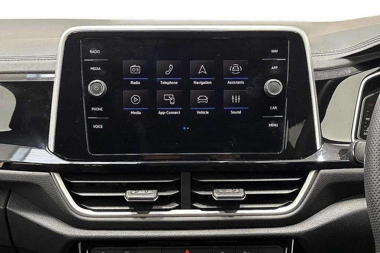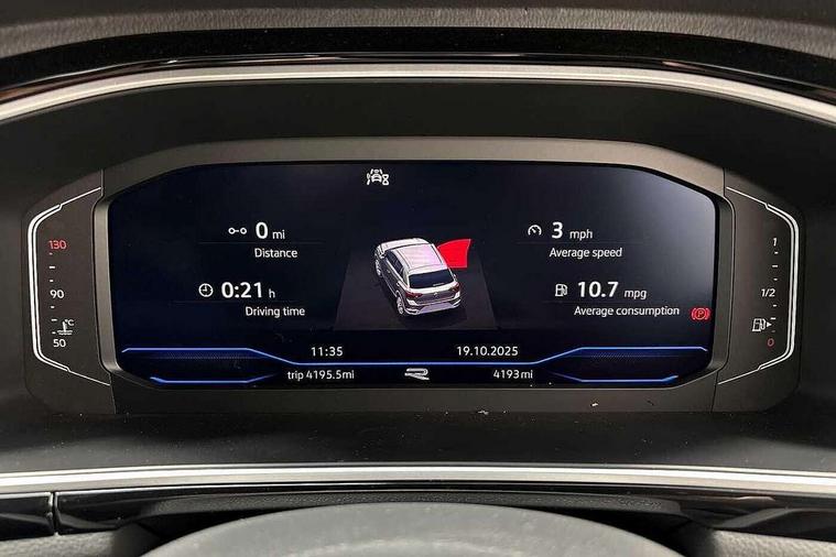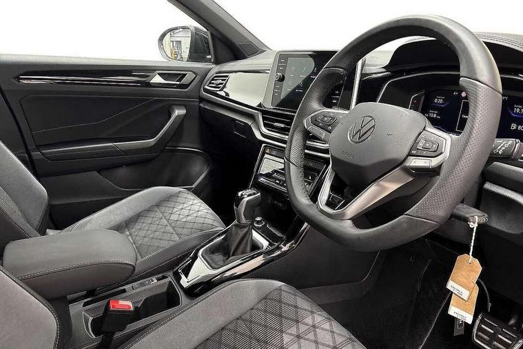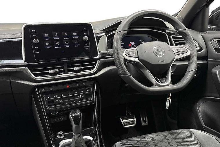 10.25" Digital cockpit pro, Advanced driver attention and drowsiness monitor, Emergency call service, Lane keeping system Lane Assist, Mobile phone interface, Modified key software - reduce switch off time for key status change to Long no motion, Online services, Park assist including front and rear parking sensors, Service interval indicator, Tailgate/trunk lid release from outside, Think blue trainer driver tips and journey analysis, Warning sound and light for front seatbelts unfastened, Wireless app connect, Battery regeneration during braking, Start/stop function with battery regeneration, DAB Digital radio, Diversity antenna for FM reception, Front and rear 6 speakers, Music playback - MP3, WMA and AAC files, Premium USB cable in choice of either Apple or Android smartphone compatibility, SD card slot, Simultaneous pairing of 2 compatible mobile devices, Title and cover art display, We Connect and We Connect Plus functionality, Auto dimming interior rear view mirror, Automatic hazard lights activation under emergency braking, Automatic headlight control with LED separate daytime running lights with coming/leaving home function, Body coloured exterior mirror housings and door handles, Electrically adjustable and heated door mirrors, Extended roof spoiler, Exterior mirrors aspherical on driver side, convex on front passenger side, External USB type C socket and charging sockets, Front windscreen wiper with intermittent wipe and 4 position delay, Heated rear window, LED 3rd brake light, LED rear combination lamps, LED rear number plate lights, Power windows with comfort operation and circuit breaker, Privacy glass for rear side windows and rear window, R-Line design body coloured bumpers, Rain sensor, Rear exhaust tailpipe, Rear fog light on one side and reversing lights on both sides, Rear side wing doors, Rear wash/wipe with intermittent wipe setting, Remote electrically foldable door mirrors, puddle lights and reverse activated passenger's door mirror, 12V power socket in centre console, 3 rear head restraints, 3 seat bench in 2nd row, 4 load lashing points in luggage compartment, Air care climatronic air conditoning system with active combination filter and 2-zone temperature control, Black roof lining, Chrome plated decorative trims, Chrome plated radiator grille inserts, air vent surrounds and light switch surrounds, Door and side trim panel with leatherette insert, Front + rear carpet mats, Front centre armrest, Front cupholders x 2, Front footwell illumination, Front reading light, Front scuff plates with R Line logo, Front seat back storage pockets, Glove compartment door with light, Instrument lighting, white adjustable panel illumination, Interior ambient lighting and surround lighting, Interior light delay, Isofix child seat preparation, Leather gearshift handle, Load-through provision with cup holder when folded down ('Unsplit rear seat bench, split folding backrest, with centre armrest), Luggage compartment lighting, Single front passenger seat, Stainless steel pedals, Storage compartment in left and right luggage area, Storage compartment in rear doors, Storage compartments in driver and front passenger doors, Sunvisors with illuminated vanity mirrors, Variable boot floor, height adjustable and removable, Driver assistance pack without proactive passenger protection - T-Roc, 3 point height adj front seatbelts + pretensioners, 3 point seatbelts in outer rear with ECE label, ABS, Child locks on rear doors, City emergency braking and pedestrian monitoring, Driver and front passenger airbag with front passenger airbag deactivation, Driver and front passenger safety-optimised head restraints, Drivers seatbelt reminder, Electronic parking brake, Electronic Stability Control (ESC) inc EDL (Electronic Differential Lock) and ASR (Traction Control), Front and rear passengers curtain airbag system including front side airbags, Hill start assist, Predictive pedestrian protection, Rear disc brakes, Two tone horn, Tyre pressure loss indicator, Volkswagen roadside assistance, Piano black decorative inserts in dashboard and front door trim panels, Trims for alloy wheels,