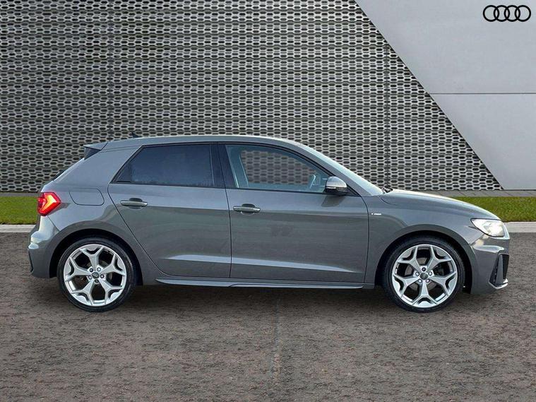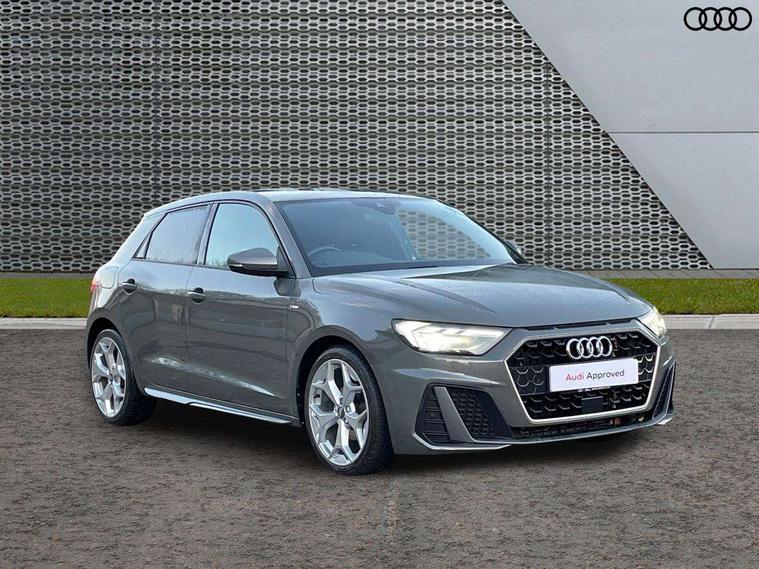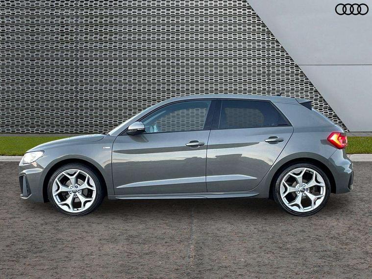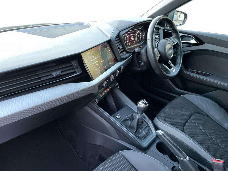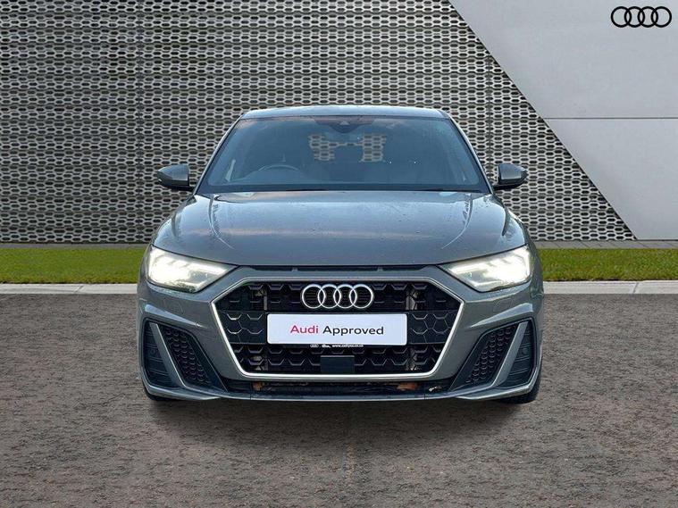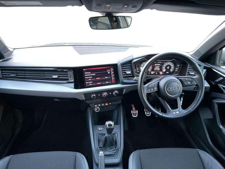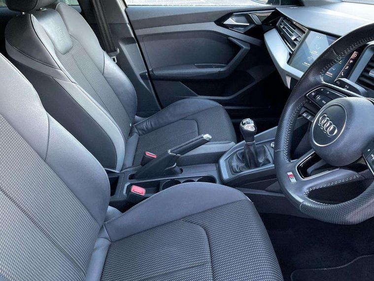 Aluminium trim for control switches, air vents and digital instrument cluster, Silver grey inlays polygon structure in diamond paint finish, Structured grey accent areas including air vents, door handle recesses and centre console in quartz paint finish, Anti theft alarm, Anti theft wheel bolts and loose wheel warning, Audi pre-sense front with pedestrain and cyclist recognition, Immobiliser, Remote central locking with 2 remote folding keys, 1 x SDXC card reader, 1 x USB type C and 1 USB type A charging points, Audi music interface, Bluetooth audio streaming, DAB Digital radio, MMI radio plus with 8.8" colour MMI display screen and MMI touch, 3x3 point rear seatbelts, Brake assist function, Driver and front passenger airbag with front side and head airbags, Electronic Stability Control including ABS, EBD, ASR and EDL, Front and rear seatbelt reminder, Front passenger airbag deactivation switch, Hill hold assist, Seatbelt height adjustment for front seats, Seatbelt monitoring, Tyre pressure warning light, Warning triangle and first aid kit, Auto dimming rear view mirror, Body colour side sill mouldings, Body coloured bumpers, Body coloured door mirrors, Door sills with aluminium inlays and S Line logo, Electric front and rear windows, Front side air inlets in grained matt black and C frame in titanium black, Heat insulating glass windscreen and side windows, Heated rear windscreen, LED headlights with LED rear lights + dynamic rear indicators, Matt aluminium silver tailpipe trim, Matt black radiator grille frame, Matt platinum grey in front spoiler clip and rear diffuser clip, Rain and light sensors, Rear fog lights, Rear wiper, S line badges on front wings, S line exterior bumpers, S line roof spoiler, Side air inlet frames titanium black, Side front spoiler lips in grained matt black, 12V socket in centre console with two cup holders, 3 rear seats, Black cloth headlining, Driver and passenger seat with manual height adjust with forward and backwards adjustment, Front and rear black floor mats with contrast stitching in fine silver, Front head restraints, Height and reach adjustable steering wheel, ISOFIX child seat mounting in front passenger and rear outer seats, Leather gear knob with aluminium trim, Leatherette handbrake grip, Luggage compartment light with front and rear reading lights, Lumbar adjustment for front seats, Rear head restraints, Split folding rear seats, Stainless steel pedals, 10.25" Digital instrument cluster display screen, Audi connect safety emergency and service including E-call, Audi drive select, Audi smartphone interface, Automatic start/stop system, Bluetooth interface, Driver's information system, Electromechanical power steering, Lane departure warning system, Service interval indicator, Speed limiter, Voice control system, Washer fluid level indicator, Sports suspension,