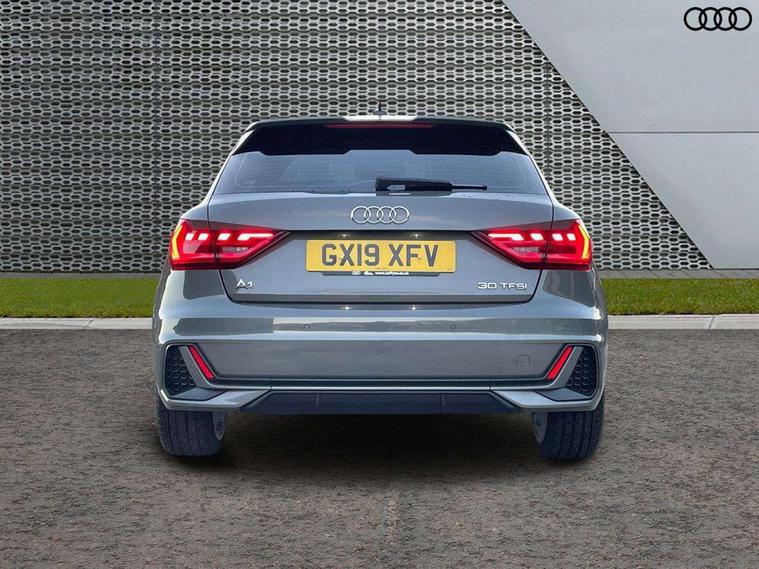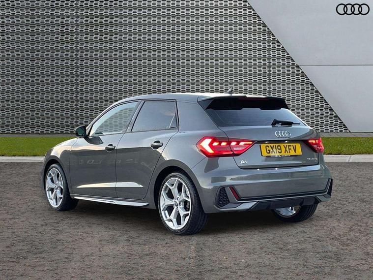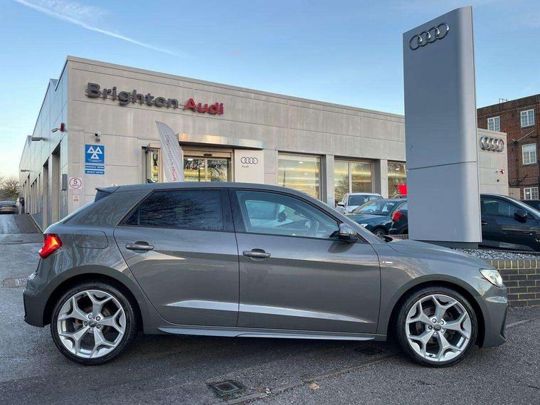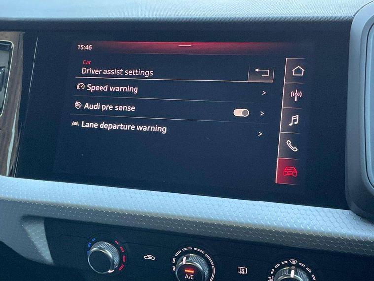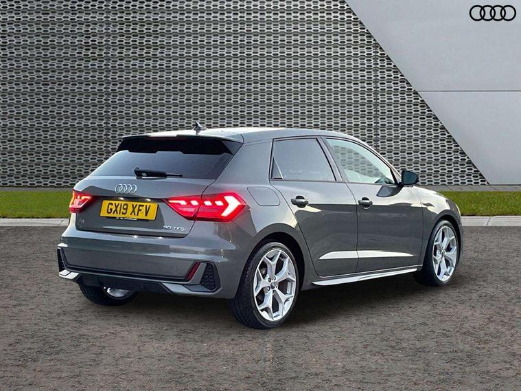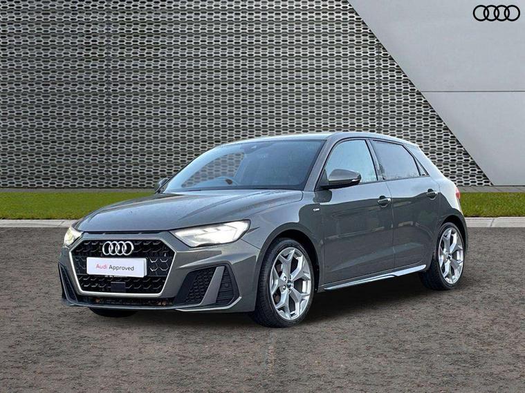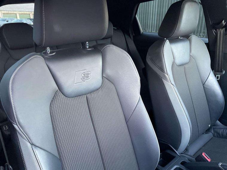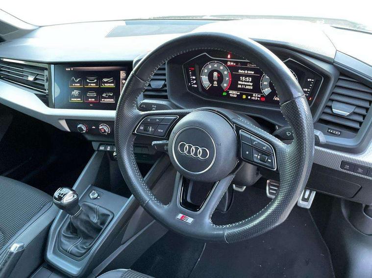 Aluminium trim for control switches, air vents and digital instrument cluster, Silver grey inlays polygon structure in diamond paint finish, Structured grey accent areas including air vents, door handle recesses and centre console in quartz paint finish, Anti theft alarm, Anti theft wheel bolts and loose wheel warning, Audi pre-sense front with pedestrain and cyclist recognition, Immobiliser, Remote central locking with 2 remote folding keys, 1 x SDXC card reader, 1 x USB type C and 1 USB type A charging points, Audi music interface, Bluetooth audio streaming, DAB Digital radio, MMI radio plus with 8.8" colour MMI display screen and MMI touch, 3x3 point rear seatbelts, Brake assist function, Driver and front passenger airbag with front side and head airbags, Electronic Stability Control including ABS, EBD, ASR and EDL, Front and rear seatbelt reminder, Front passenger airbag deactivation switch, Hill hold assist, Seatbelt height adjustment for front seats, Seatbelt monitoring, Tyre pressure warning light, Warning triangle and first aid kit, Auto dimming rear view mirror, Body colour side sill mouldings, Body coloured bumpers, Body coloured door mirrors, Door sills with aluminium inlays and S Line logo, Electric front and rear windows, Front side air inlets in grained matt black and C frame in titanium black, Heat insulating glass windscreen and side windows, Heated rear windscreen, LED headlights with LED rear lights + dynamic rear indicators, Matt aluminium silver tailpipe trim, Matt black radiator grille frame, Matt platinum grey in front spoiler clip and rear diffuser clip, Rain and light sensors, Rear fog lights, Rear wiper, S line badges on front wings, S line exterior bumpers, S line roof spoiler, Side air inlet frames titanium black, Side front spoiler lips in grained matt black, 12V socket in centre console with two cup holders, 3 rear seats, Black cloth headlining, Driver and passenger seat with manual height adjust with forward and backwards adjustment, Front and rear black floor mats with contrast stitching in fine silver, Front head restraints, Height and reach adjustable steering wheel, ISOFIX child seat mounting in front passenger and rear outer seats, Leather gear knob with aluminium trim, Leatherette handbrake grip, Luggage compartment light with front and rear reading lights, Lumbar adjustment for front seats, Rear head restraints, Split folding rear seats, Stainless steel pedals, 10.25" Digital instrument cluster display screen, Audi connect safety emergency and service including E-call, Audi drive select, Audi smartphone interface, Automatic start/stop system, Bluetooth interface, Driver's information system, Electromechanical power steering, Lane departure warning system, Service interval indicator, Speed limiter, Voice control system, Washer fluid level indicator, Sports suspension,