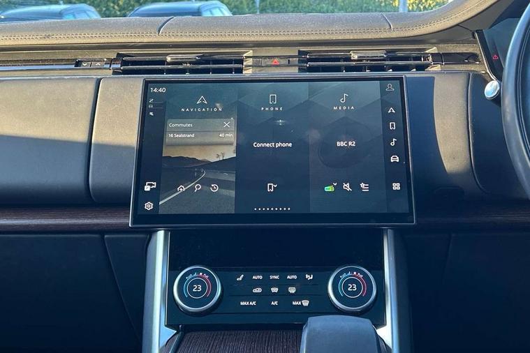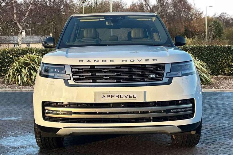 13.1" Touchscreen, 3D surround camera inc frwd traffic detection, vehicle clearance guidance, 3D view, clearsight ground view, manoevure light, 360 parking aid, wade sensing, Adaptive cruise control with steering assist, All Terrain Info Centre, All wheel steering, Android Auto, Apple car play, Blind spot assist, Bluetooth connectivity streaming, Driver condition response, Eco mode, Electric power assisted steering (EPAS), Emergency call service, Front and rear parking aid, Head up Display, Interactive driver display, Lane keep assist, Powered gesture tailgate/boot lid, Rear collision monitor, Rear traffic monitor, Remote, Traffic sign recognition with adaptive speed limiter, Wi-Fi Enabled with data plan, Wireless device charging with phone signal booster, 8 speed automatic transmission, Active damper technology system, Adaptive dynamics, All terrain progress control, All Wheel Drive (AWD), Automatic access height, Electronic active differential with torque vectoring by braking, Electronic air suspension with dynamic response, Terrain Response 2 Auto, Twin speed transfer box, Digital Audio Broadcast radio-DAB, Pivi pro including smart settings, Connected navigation pro, nuance speech, USB socket, Acoustic laminated windscreen, Animated directional indicators, Automatic headlights, Automatic levelling headlights, Centre high mounted stop light, ClearSight interior rear view mirror, Electric windows with one touch open/close and anti trap, Flush deployable exterior door handles, Front and rear recovery eyes, Front fog lights, Headlamp power wash, Heated rear window, Heated washer jets, LED tail lights, Power fold, auto-dimming, heated door mirrors with approach lights, Rain sensing windscreen wipers, Range rover badge, Rear boot, Rear fog lights, Rear side wing doors, Rear wash/wipe, Side repeater indicators in mirror, Trailer stability assist, Winter wiper park position, 12V power sockets, 3 seat bench in 2nd row, Air quality sensor, Bright metal pedals, Cabin air purification pro, Cabin lighting, Customer configurable single point entry, Driver and passenger front seat armrests, Easy boot loading, Ebony Carpet, Front and rear cupholders, Front and rear grab handles, Front head restraints, Gearshift paddles, Heated steering wheel, Hook in load space, Loadspace light, Luggage tie down in loadspace, Multifunction steering wheel, Rear centre armrest, Rear head restraints, Rear ISOFIX, Single front passenger seat, Soft close doors, Twin blade sunvisors with Illuminated vanity mirrors, Upper and lower glovebox, Online pack with data plan - Range Rover, 3x3 point rear seat belts, Anti-lock braking system (ABS), Brake hold function, Cornering brake control (CBC), Customer configurable autolock, DSC - Dynamic Stability Control, Electronic brake force distribution, Electronic parking brake, Electronic traction control, Emergency brake assist, Emergency braking, Front airbags with passenger seat occupant detector, Front side airbags, Hill descent control, Hill launch assist, Illuminated seat belt buckles, Low traction launch, Occupant protection assist, Power operated child locks, Roll stability control, Tyre pressure monitoring system (TPMS), Immobiliser, Intrusion sensor and alarm, Keyless entry, Locking wheel nuts, Remote central locking, Noble chrome controls,
