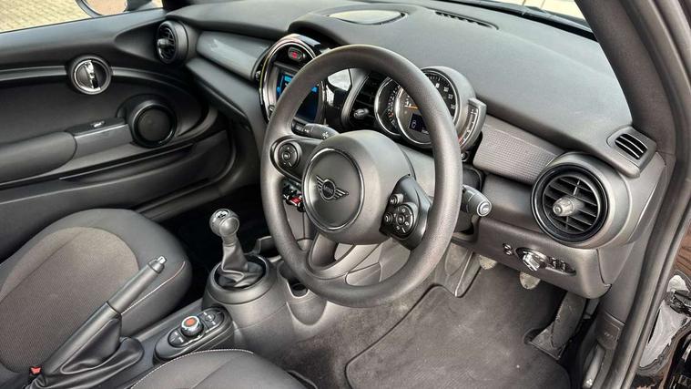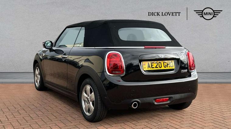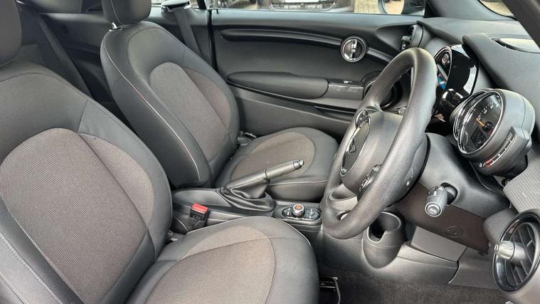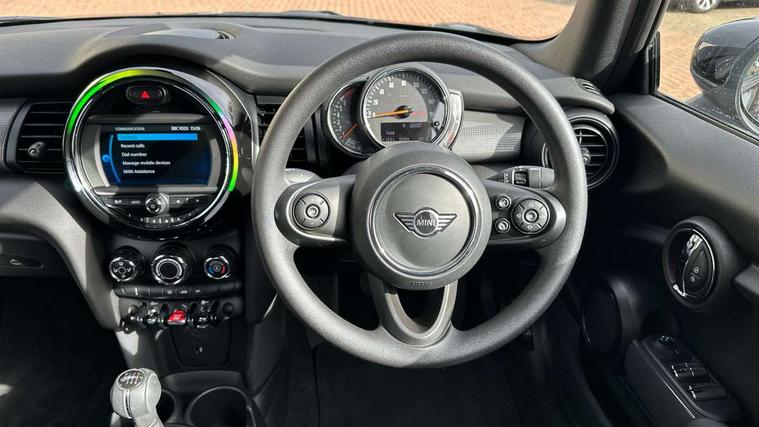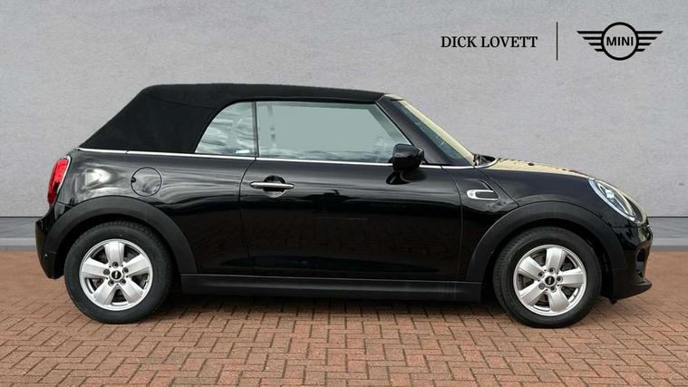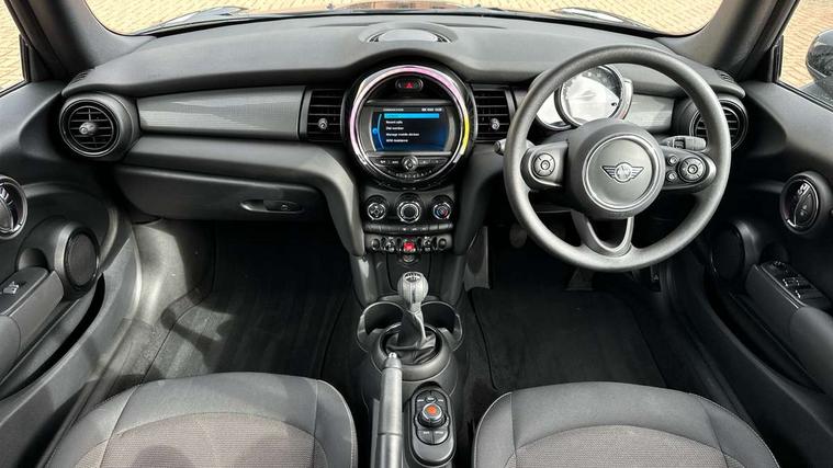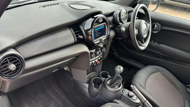 Automatic start/stop function with brake energy recuperation, Compatible mobile phone bluetooth with audio streaming, Electro-mechanical speed dependant steering assistance, Gear change indicator, Instrument cluster, Mini E-call, MINI TeleServices, On board computer, Rear park distance control, Service interval indicator, Double Vanos system, Fully variable valve control, High precision injection, 6.5" touchscreen with LED ring, FM tuner and DAB digital radio, Automatic headlight activation switch, Body colour fuel filler cap, Chrome border high gloss black slats radiator grille, Dynamic brake lights, Electric windows, Fully electric black softtop with integrated sunroof functionality, Heated rear window, Heated windscreen washer jets, LED headlight with closed ring and daytime driving lights, Left exhaust tailpipe with chrome finisher, Metal door sill strips with MINI imprint, Model logo Cooper on right of tailgate, Rain sensor window wipers, Rear fog lights, Rear LED lights with union jack design, Side scuttle panel with integrated indicator, Sun/heat protection glass, White indicator lenses, 12V Accessory socket in centre console, 4 lashing eyes in luggage compartment, 50/50 split folding rear seats, Chrome interior highlights, Colour line - Carbon black, Cupholders, Easy Load boot handles, Front and rear head restraints, Front and rear isofix with front passenger airbag deactivation, Glove compartment, Height and length steering column adjustment, Interior lighting with 12 basic colours selectable via toggle switch in roof, Leather gearshift lever and handbrake gaiters, LED reading lights, vanity mirror lights, front foot well light and spotlight on front seats, Manual air conditioning, Mechanical seat adjustment, driver seat height adjust, forward/back and front seats backrest, Mini logo projection on floor from drivers exterior mirror, Multifunction steering wheel, Storage compartments in doors, Sunvisors with vanity mirrors, Tool kit, 3 point seatbelts on all four seats, 6 Airbags - front, side and seat belt tensioners, Active rollover protection, Anti-lock braking system (ABS), DSC - Dynamic Stability Control, Front and rear disc brakes, Hill start assist, Single tone fanfare horn, Tyre pressure monitoring system, Alarm system with tilt sensor, monitoring doors, bonnet interior and tailgate, Electronic vehicle immobiliser, Keyless Go,