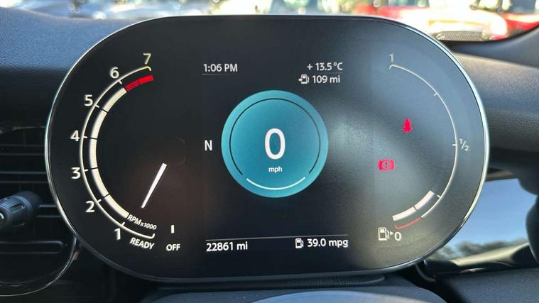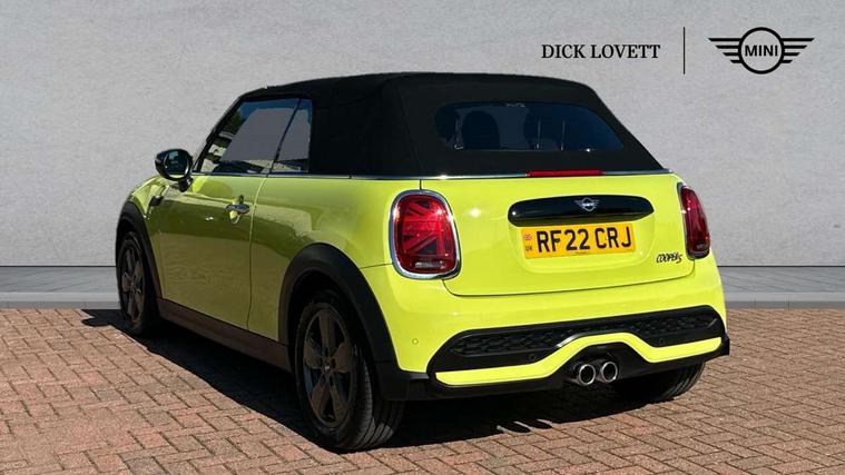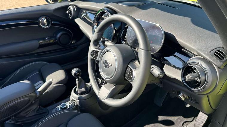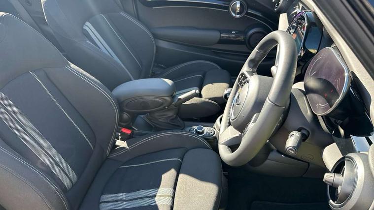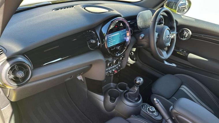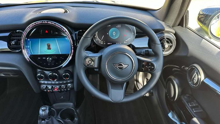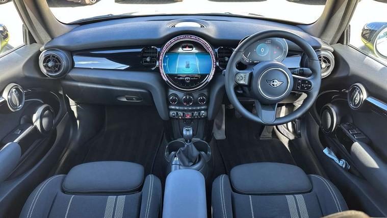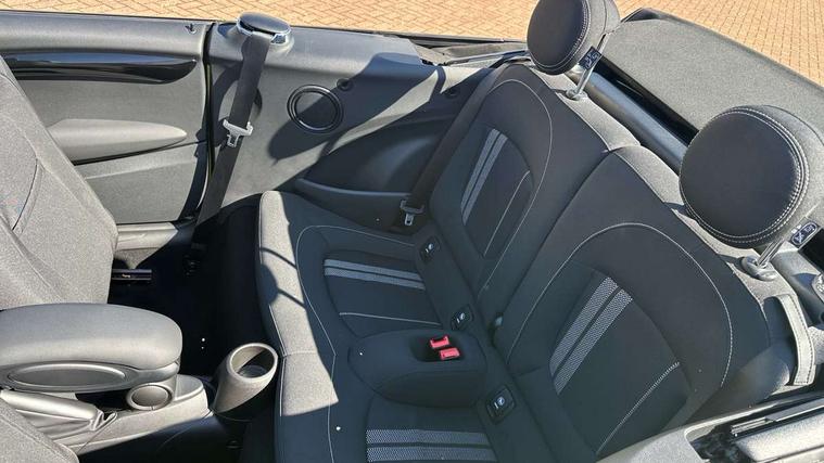 Apple CarPlay, Automatic start/stop function with brake energy recuperation, Compatible mobile phone bluetooth with audio streaming, Cruise control with brake assist, Electro-mechanical speed dependant steering assistance, Instrument cluster, MINI Driving Modes - centre toggle switch to control driving setting (sport, mid and green), Mini E-call, MINI TeleServices, On board computer, Rear park distance control, Service interval indicator, 6 Speed manual transmission including gear change indicator display, Double Vanos system, Fully variable valve control, High precision injection, Performance Control, 8.8" touchscreen with LED ring, FM tuner and DAB digital radio, Automatic headlight activation switch, Bonnet scoop, Chrome border honeycomb structure radiator grille with S badge, Chrome plated fuel cap, Dynamic brake lights, Electric windows, Fully electric black softtop with integrated sunroof functionality, Heated rear window, Heated windscreen washer jets, LED headlight with closed ring and daytime driving lights, Metal door sill strips with Cooper S imprint, Model logo Cooper S on right of tailgate, Rain sensor window wipers, Rear boot, Rear fog lights, Rear LED lights with union jack design, Side scuttle panel with integrated indicator, Sun/heat protection glass, Third brake light, Two central exhaust tailpipes with chrome finisher, White indicator lenses, 12V Accessory socket in centre console, 2 seat bench in 2nd row, 4 lashing eyes in luggage compartment, 50/50 split folding rear seats, Chrome interior highlights, Colour line - Carbon black, Cupholders, Easy Load boot handles, Front and rear head restraints, Front and rear isofix with front passenger airbag deactivation, Front seatback storage pockets, Glove compartment, Height and length steering column adjustment, Interior lighting with 12 different colours running across the dashboard, underneath door bezel illuminated laser engraved design on central display, Leather gearshift lever and handbrake gaiters, LED reading lights, vanity mirror lights, front foot well light and spotlight on front seats, Manual air conditioning, Mechanical seat adjustment, driver seat height adjust, forward/back and front seats backrest, Multifunction steering wheel, Single front passenger seat, Sports steering wheel, Storage compartments in doors, Sunvisors with vanity mirrors, Velour floor mats, Convertible pack with comfort access - Mini Convertible, 3 point seatbelts on all four seats, 6 Airbags - front, side and seat belt tensioners, Active rollover protection, Anti-lock braking system (ABS), DSC - Dynamic Stability Control, Front and rear disc brakes, Hill start assist, Two tone horn, Tyre pressure monitoring system, Alarm system with tilt sensor, monitoring doors, bonnet interior and tailgate, Electronic vehicle immobiliser, Keyless Go, Piano black interior trim, Tool kit, Tyre repair kit,