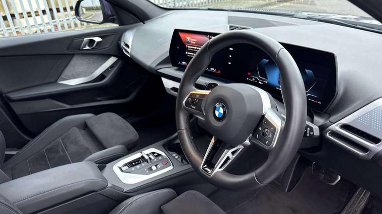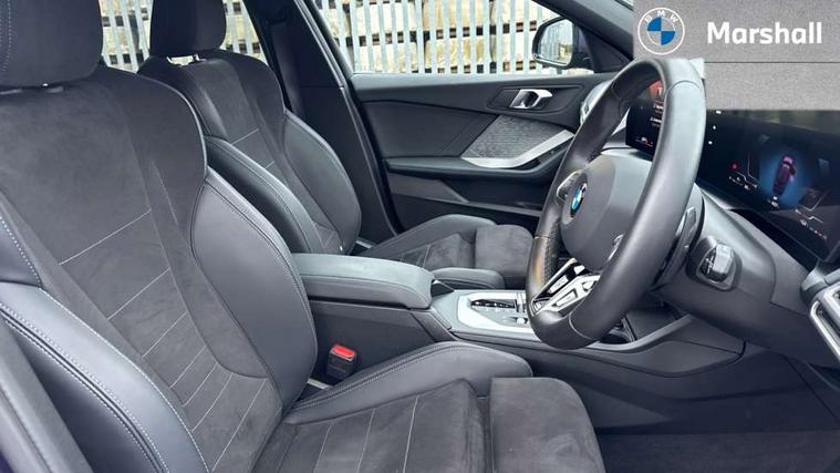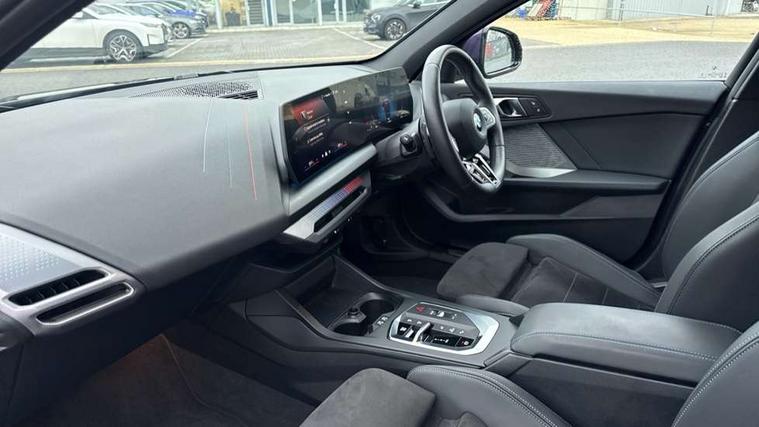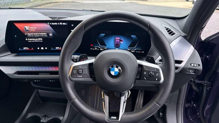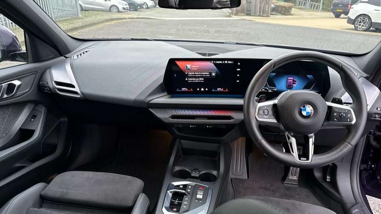 Active guard plus, Attentiveness assist, Bluetooth / WiFi interface for wireless connection of mobile terminal devices and audio streaming, BMW ConnectedDrive online services, BMW Live cockpit plus, BMW Teleservices, Check Control warning system for monitoring of lights and door/luggage compartment open warning, Eco pro mode, Electric power steering with Servotronic steering optimised at all speed ranges, Evasion assistant, Flat airvents in instrument panel with adjustable slats, Front and rear parking sensors, Front axle single joint with specific axle kinematics to minimise drive influences on steering + provide increased rigidity agile driving behaviour, Gearshift time display in manual mode, Integrated owners handbook, Left turn warning with brake function, My modes (Personal / Efficient / Sport), Oil sensor for level and grade, On board computer, Optimum shift indicator, Park assist including reversing assistant, lateral parking aid and reversing assist camera, Personal e-SIM, Personal Profile, Pull away assistant, Rigidly mounted rear subframe - Multi link construction with separate spring / damper configuration and excellent driving characteristics, Speed limit Info including no-overtaking indicator, Speed limiter, 49 litre fuel tank, Aluminium lightweight construction, Anti roll bar front and rear, Balancer shaft, Double VANOS twin scroll turbocharging system, Drive Performance Control, Electronic differential lock, Electronic selector lever, High precision injection, M Adaptive suspension, Petrol Particulate Filter, Steptronic transmission with double clutch, Twin tube gas filled shock absorbers with degressive characteristic curve, VALVETRONIC engine management, DAB Digital radio, Auto dimming rear view mirror, Automatic windscreen wipers and automatic headlight, Body colour door handles, Body colour mirror caps, Body colour roof trims, Chrome 'M' logo side designation, Chrome exhaust twin tailpipes round 90mm in left, Chrome kidney grille frame with Satin Aluminium struts, Direction indicator side lights in exterior mirrors, Electrically adjustable exterior mirror with mirror adjustment switch on drivers armrest and aspheric on driver side, convex on passenger side, Exterior M sport design elements, Fading support, Folding side mirrors with auto dimming/folding wing mirrors with auto dimming, Follow me home headlights, Front and rear bumper system with replaceable deformation elements, Front and rear electric windows with open and close fingertip control, anti trap facility and comfort closing, Front bumper panel with M specific design in vehicle colour with inserts in black high gloss, Front door sill finishers in black plastic with M designation in metallic look, Green tinted heat protection glazing, Heated rear window, High gloss black exterior mirrors, High gloss shadowline window frame, Recess cover mirror frames and B/C pillar embelisher trim, High level third brake light, Integrated front windscreen with washer jets, LED daytime running lights, LED eyebrow turn indicators, LED front fog lights, LED Headlights, Lightweight engineering, M identification on the sides, Matt black air guide grilles, Matt black wheel arch trim, Model badge on tailgate right, Nearside reverse light in rear light cluster, Preparation for high beam assistant, Rain sensor, Rear bumper panel with M-specific design in vehicle colour with inserts in black high gloss, Rear fog lights, Rear side wing doors, Rear window wiper, Shark fin antenna, Side sill covers with M specific design in body colour, Trailer stabilisation logic, Visible VIN plate, Welcome lighting, 12V power socket in front centre console with blanking plug, 3 rear seat head restraints, 3 seat bench in 2nd row, 3 spoke sports leather steering wheel with black leather and stitching, pearl chrome decorative finish, specific M Badge, Anthracite front and rear floor mats, Anthracite headlining, Black boot net with lashing eyes, Cargo function on 2nd seat row, Child seat ISOFIX attachment for two outer rear seats and front passenger seat with anchorage points, Conditioned based service, Driver and front passenger backrest net on rear, Driver and front passenger seat heating, Driver side folding compartment in instrument panel, Folding rear clothes hook, Footrest and pedals in black plastic, Four grab handles integrated in roof lining, Front and rear door pockets with bottle holders, Front and rear side armrest integrated into door trim, Front armrest with storage compartment, Gearshift paddles on steering wheel, Glove compartment, Height adjustable front head restraints, Luggage compartment for bag hooks on left and right, foldable luggage compartment liner and four lashing eyelets, Manual adjust steering wheel, Multi-function controls for steering wheel, Rear seat backrest with manual 60:40 split folding with 3 top tether clips integrated on rear of seat panels, Single front passenger seat, Storage compartment in centre console, Storage compartment in luggage compartment, Stowage of the parcel shelf in luggage compartment trim, Sun visors with vanity mirrors and insert tab, Two front centre console cupholders, Type C two USB ports in rear centre console, Upper retaining strap integrated into backrest rear panels, Connected pack professional - 1 Series, Interior lights pack - 1 Series, M Sport exterior styling aerodynamics pack - 1 Series, 2 tone horn, 3 point seatbelts on all seats, front pyrotechnic belt tensioners, stopper and belt force limiters, rear coded belt buckles, Airbags - Front driver/passenger, front and rear curtain head protection, front side, manual deactivation of front passenger airbag, Anti lock braking system (ABS) with brake assist, BMW emergency call, Brake drying, Braking readiness, Child proof locking system in rear door, Comfort modes, Cornering brake control, Crash sensor activating of airbags, Unlocking doors, hazard warning lights, interior light, safety battery terminal, Driver and front passenger seat belt sec