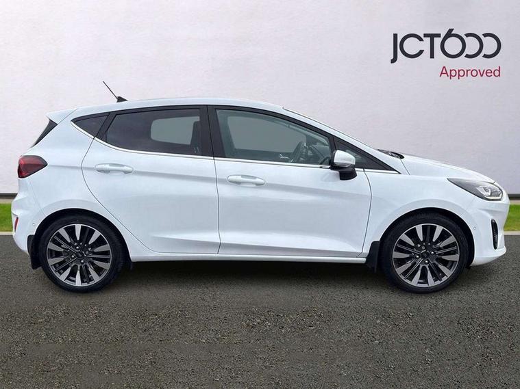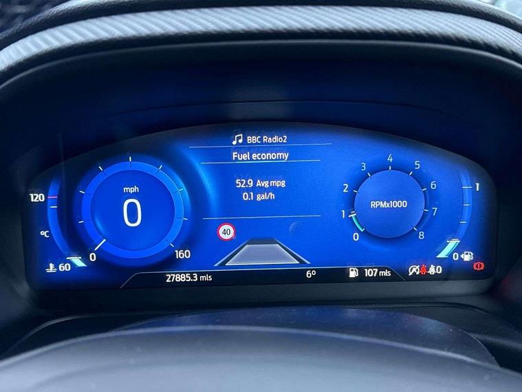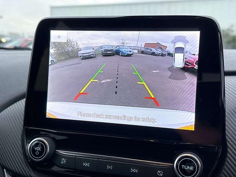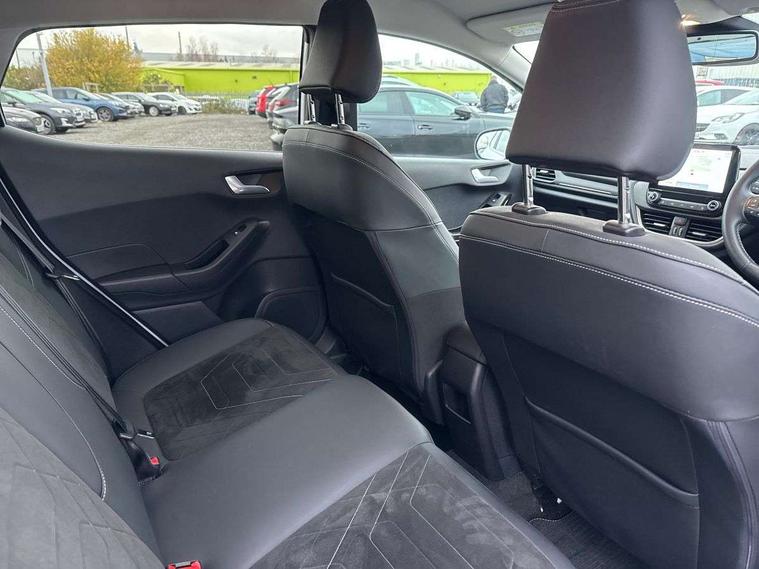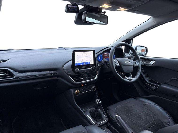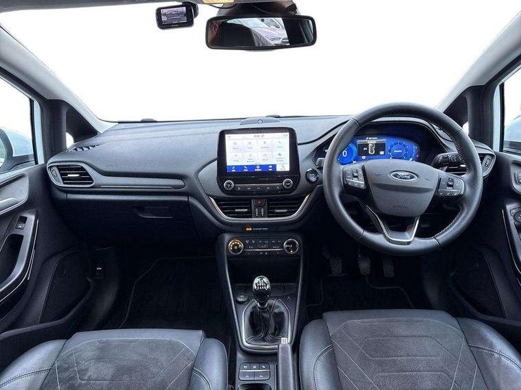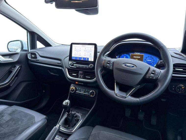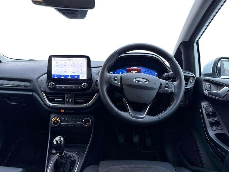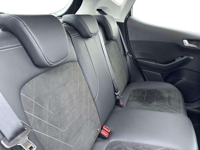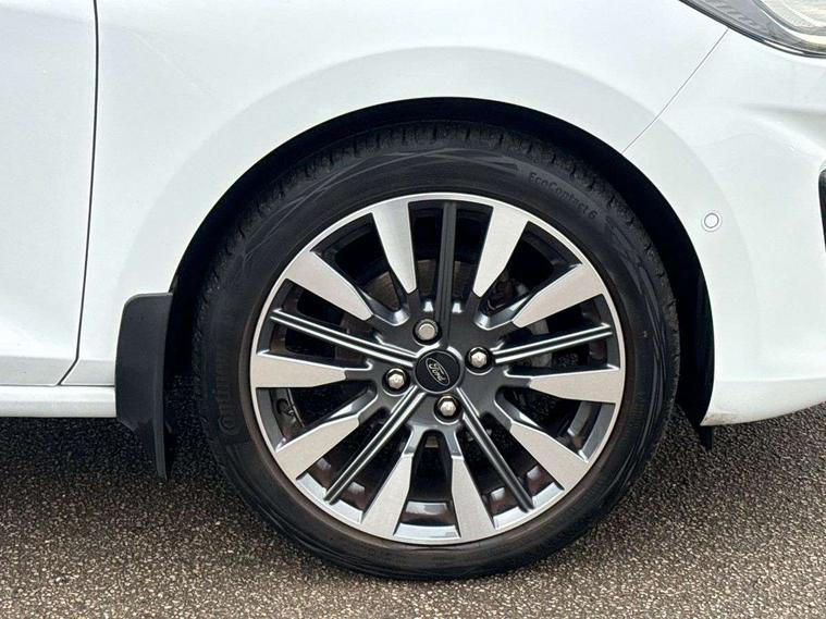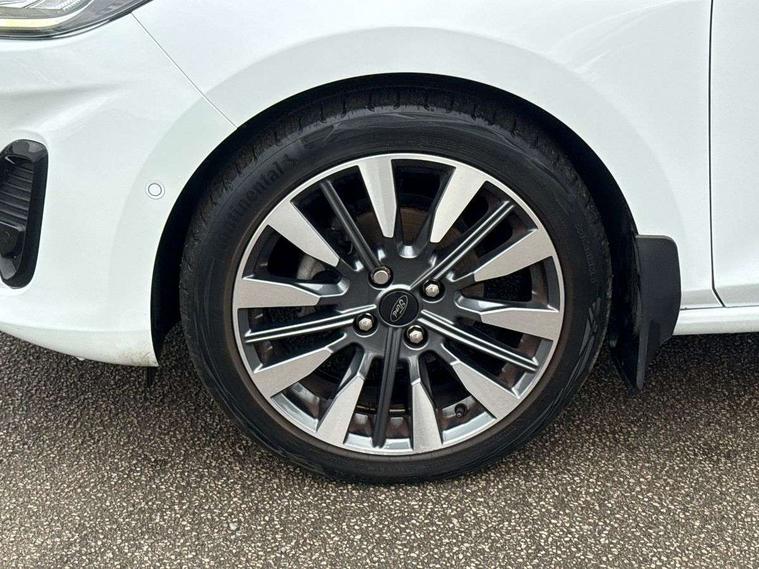 12.3" Full digital cluster, Driver alert system, Electric power steering, Ford easy fuel, Ford SYNC 3 Nav with DAB radio, 8" touch screen, voice control, emergency assist, Apple CarPlay/Android auto, 2x USB, 6 speaker, Ford pass connect, Rear parking distance sensors, Rear view camera, Selectable drive modes (Normal, Sport, Track), Speed sign recognition, Trip computer, Wrong way alert, Standard suspension, Auto high beam, Body colour bumpers, Body coloured electrically operated with side indicators, Electric front windows/one touch facility, Front titanium scuff plates, High gloss chrome surround with satin grille insert, LED Night signature to rear lights, LED third brake light, Quickclear heated windscreen, Rain sensing wipers and auto dimming rear view mirror, Rear privacy glass, Rear side wing doors, Rear wiper, 3 seat bench in 2nd row, 4 way manually adjustable passenger seat, Adjustable head restraints, Centre console with opening armrest, 2x cupholders, 12v and USB, Drivers and Passenger lumbar support, EATC - Electronic Auto Temperature control, Front floor mats in velour, Leather gaiter, LED ambient lighting (Ice blue), Manual 4-way driver seat adjust, Sensico partial premium leather upholstery with metal grey stitching, Sensico wrapped steering wheel, Single front passenger seat, NCAP Pack - Fiesta, Winter pack [GTBAB]- Fiesta, 3 point seatbelts on all rear seats, Electronic stability control with hill start assist, Manual child lock in rear doors, Tyre pressure monitoring system, Ford keyfree system with Keyless entry and keyless start, MyKey system, Remote central locking, Thatcham alarm with power door dead locks, 17" 10 spoke alloys with pearl grey machined finish,