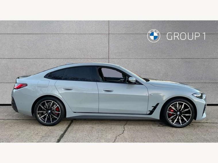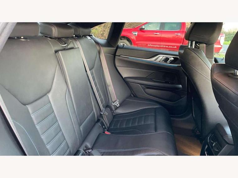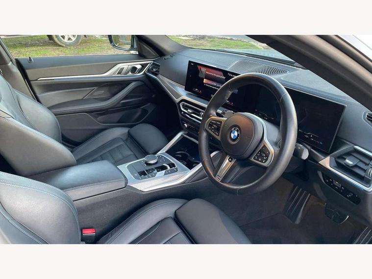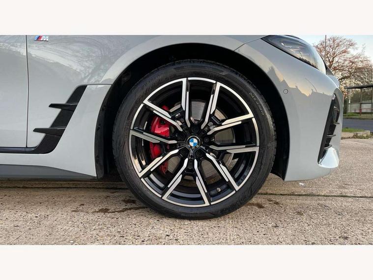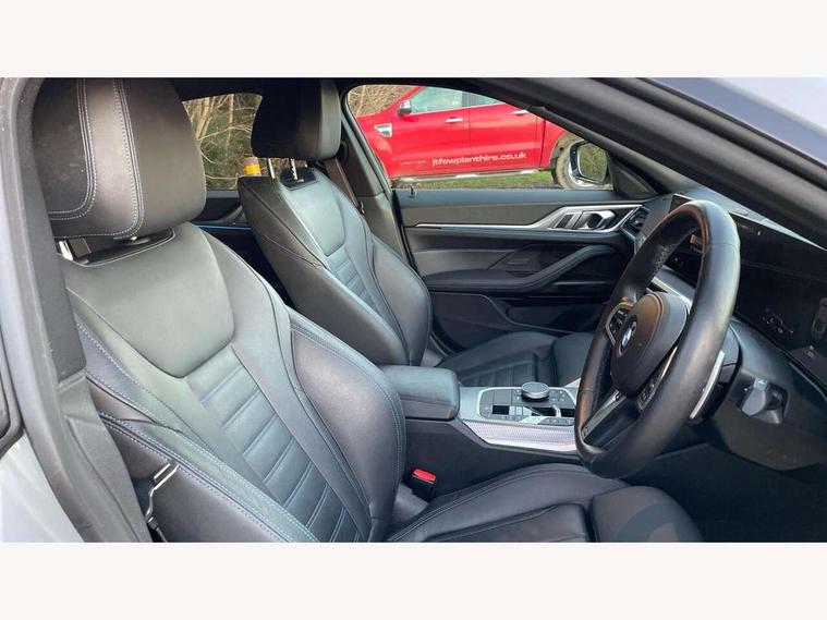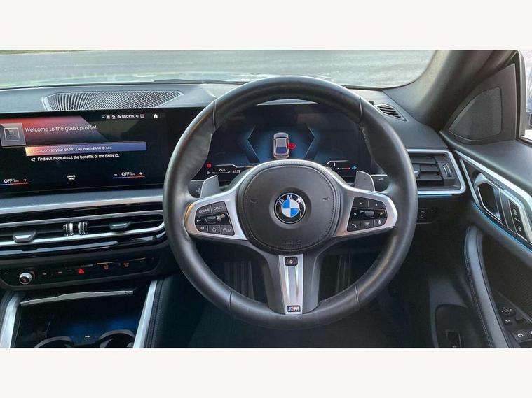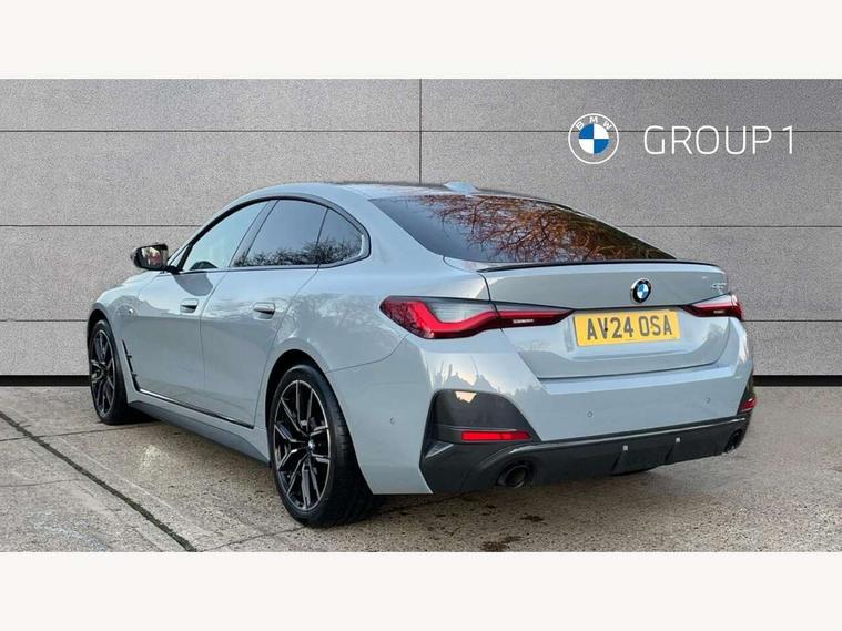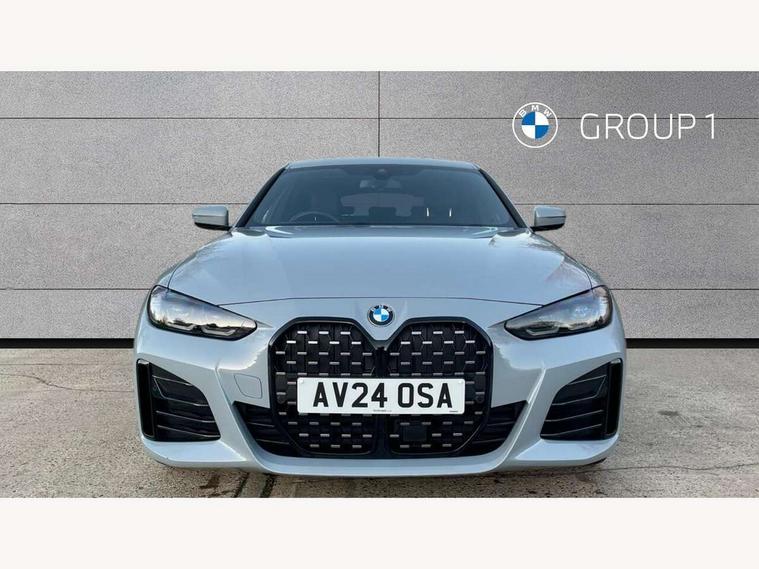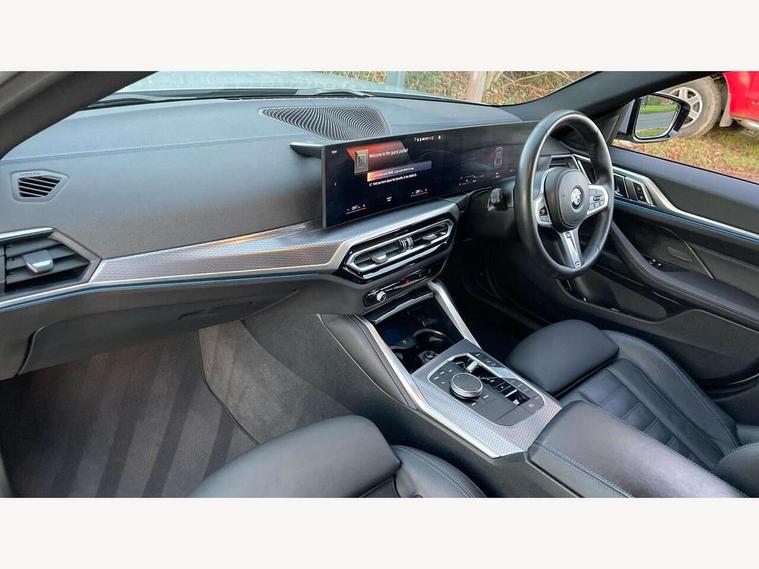 Active guard plus, Auto start-stop, Bluetooth hands free facility with USB audio interface with audio streaming, BMW ConnectedDrive online services, BMW iDrive controller on centre console, BMW Live Cockpit Plus Nav-12.3" instrument&14.9" control Widescreen curved display/Intelligent Voice Assist/iDrive touch/Access 3rd party app/4G LTE, BMW service history, BMW Teleservices, Brake pad wear indicator in front and rear, Check Control warning system for monitoring of lights and door/luggage compartment open warning, Condition based service, Cruise control with speed limit function, Electric bootlid, Electric power steering with Servotronic steering optimised at all speed ranges, Fatigue detection system, Gearshift time display in manual mode, Instrument cluster with speedometer with mph readout, tachometer, fuel gauge and oil temperature gauge, Integrated owners handbook, Language version English, Oil sensor for level and grade, warning by check control system, On board computer - average speed, fuel consumption, outside temp display with acoustic warning, clock/date, service interval, odometer/trip meter, Optimum shift indicator, Shifting point display, Tailgate, Variable sport steering, 8 speed automatic steptronic transmission with gearshift paddles, Double joint spring strut front axle, Double VANOS, Drive performance control - ECO PRO, comfort and sport modes, High precision injection, Low centre of gravity, M sport suspension, Petrol Particulate Filter, Stroke dependent dampers, VALVETRONIC engine management, 2x USB Type C ports in front centre console for charging and data transfer, 2x USB Type C ports in rear centre console for charging, DAB tuner, Electronic service booklet, Acoustic glazing, Automatic headlight beam throw control with load dependent regulating reaction, dynamic compensation of braking dive and acceleration squat, Automatic windscreen wipers and automatic headlight, Automatically dimming electrochromatic rear view mirror, BMW emblem on engine compartment lid and tailgate, BMW kidney grille with mesh grille front side of the nuggets in matt aluminium and frame in chrome high gloss, Body colour fuel filler flap, Body colour roof fin, Brushed aluminium inserts in the front door sill finishers with BMW designation, Door sill strips, Dynamic brake lights, Electric windows - front and rear, with open/close fingertip control, anti trap facility and comfort closing function all round, Exterior mirrors - electrically folding with anti-dazzle, Fading support, Follow me home headlights, Front and rear bumper system, Front apron plastic in body colour, Green tinted heat protection glazing, High gloss shadow line exterior trim, Illuminated bow type door handles in body colour drivers side with door lock, Interior rear view electrochromatic mirror with automatic anti dazzle function, LED 3rd brake light, LED daytime running lights, LED front fog lights, LED front indicators, Licence plate panel integrated into front bumper and tailgate, Lightweight engineering, M designation on front side panels, left and right, M sport rear boot spoiler with body colour gurney, Model designation on right side of tailgate, One piece front bumper cover including towing eye cover in body colour, Preparation for high beam assistant, Rear side wing doors, Rear wiper, Reversing light, Side frame decorative moulding black matt, Two part LED tailights in L-shape with components in smoked glass, brake light, LED turn indicator and rear fog light, Visible exhaust tailpipe finisher, Visible VIN plate, Welcome lights in interior and door handle area, Widened track and increased camber values for max transverse dynamics, agility and steering precision, Window recess cover black high gloss, Windscreen wipers with integrated heated washing jets, 12V power socket in front centre console, 2 front cupholder in centre console with clamping elements and matt black inlay, 3 rear headrests, 3 seat bench in 2nd row, 3 spoke M sport leather multifunction steering wheel, 3 zone automatic air conditioning, 4 pieces lashing eyelets in luggage compartment, 40:20:40 split folding rear seat and rear centre armrest with two cupholders, Anthracite headlining, Armrest integrated in front and rear door trim + front centre console armrest, Battery in luggage compartment, BMW ID, Driver seat backrest width adjustment, Extended storage in Combination with sport seat net pocket on rear backrest, Four grab handles integrated in roof lining, Front and rear door pockets, Front and rear footwell lights, Front and rear reading lights, Front sport seats, Heated driver and front passenger seats, Height adjustable front headrests, Height adjustable mechanically and infinitely variable steering column, Illuminated armrest storage compartment, Illuminated glove compartment with separate small compartment, Luggage compartment lighting, Luggage compartment seprating net on side trim left/right, Bag hook, 12V socket, TTH button, USB C charging in rear, Folding compartment on driver side, Make-up mirror lights, Single front passenger seat, Storage compartment in rear centre console, Sunvisors with illuminated vanity mirrors and ticket pocket, Toolkit located in luggage compartment, Velour front floor mats, Vernasca leather upholstery, Ambient lighting pack - 4 Series, Connected professional package - 4 Series, M sport exterior styling pack - 4 Series, 3 point seatbelts on all seats, Battery safety cut-off, BMW emergency call, Brake energy regeneration, Braking pre-tensioning, Child proof locking system in rear door, Child seat ISOFIX attachment for the two outer rear seats, Coasting in idle in ECO PRO mode, Cornering brake control (CBC), Crash sensor activating of airbags, Unlocking doors, hazard warning lights, interior light, safety battery terminal, Driver and front passenger side airbags, integrated in the door side seat backrest bolsters for all seat variants, Driver/Front Passenger airbags, Dry braking, Dynamic brake control, Dynamic stab