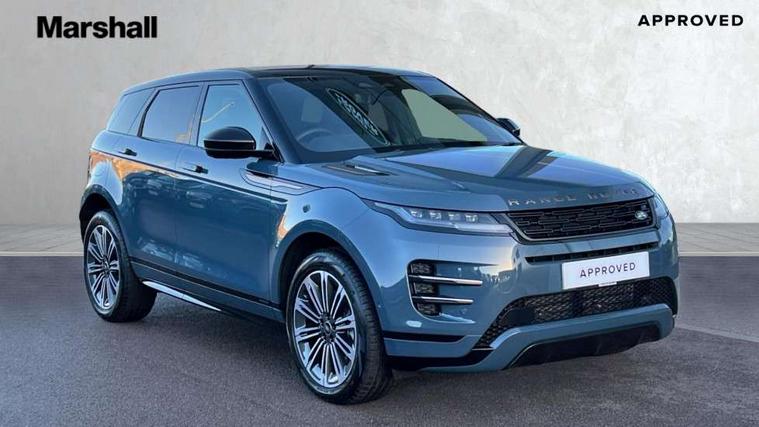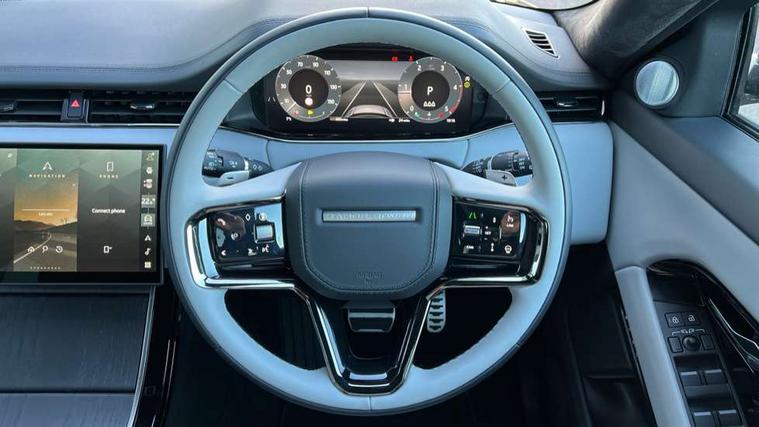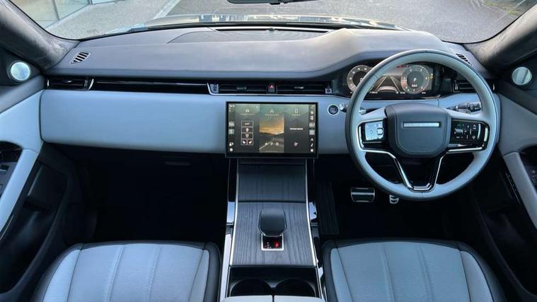 11.4" touch screen, 3D 360 degree surround camera with wade sensing, Adaptive cruise control, Android Auto, Apple car play, Blind spot assist, Bluetooth connectivity, Brake pad wear indicator warning light, Driver condition monitor, eCall emergency system, Eco mode, Electronic power assisted steering (EPAS), Front and rear parking sensors with auto brake, InControl remote, Interactive driver display, Land Rover InControl apps, Lane keep assist, Pivi pro connected includes diamond pivi variant, smart settings, connected navigation pro, nuance speech licence, Powered tailgate/boot lid, Rear collision monitor, Rear traffic monitor, Tailgate, Traffic sign recognition with adaptive speed limiter, Voice control system, Wireless device charging, All terrain progress control, Diesel exhaust fluid (DEF) large tank, Efficient Driveline, Large fuel tank, Terrain Response 2, Digital Audio Broadcast radio-DAB, Meridian surround sound system with 650W subwoofer and 14 speakers, Steering wheel mounted controls, Acoustic laminated windscreen, Auto headlights, Automatic headlight levelling, ClearSight interior rear view mirror, Electric windows with one touch open/close and anti trap, Flush deployable exterior door handles, Front and rear recovery eyes, Heated rear window with timer, Heated washer jets, Heated windscreen, Pixel LED headlights with signature DRL and LED tail Lights, Power fold, auto-dimming, heated door mirrors with approach lights and auto dimming driver side, Rain sensing windscreen wipers, Rear animated directional indicators, Rear fog lights, Rear side wing doors, Rear wiper, Side repeater indicators in mirror, Sliding panoramic roof with powered sunblind, Tailgate spoiler, Third brake light, Winter wiper park position, 14 way driver memory electric front seats with 2 way manual headrests + 4 way lumbar support, bolsters, 40:20:40 split folding rear seats with centre headrest and armrest, Ambient interior lighting, Bright metal pedals, Carpet mats, Customer configurable single point entry, Electrically adjustable steering column with memory function and easy entry/exit, Front and rear cupholders, Heated steering wheel, Isofix system on outer rear seats, Overhead lighting console, Overhead stowage for sunglasses, Passive front head restraints, Rear air vents, Rear head restraints, Satin chrome gearshift paddles, Single passenger seat, Sunvisors with illuminated vanity mirrors, Twin sliding front centre armrest, Power socket pack 2 - Evoque, 3 rear 3 point seatbelts, Anti-lock braking system (ABS), Brake hold function, Customer configurable autolock, DSC - Dynamic Stability Control, Electronic brake force distribution, Electronic parking brake, Electronic traction control, Emergency braking, Front and rear seatbelt reminder, Hill descent control, Hill launch assist, Low traction launch, Occupant protection assist, Passenger seat occupant detector, Power operated child locks, Roll stability control, Six airbags - Driver and passenger airbags/driver knee airbag/front side airbag and curtain airbags, Torque vectoring brake, Tyre pressure monitoring system, Alarm, Immobiliser, Intrusion sensor, Keyless entry, Locking wheel nuts, All season tyres,
