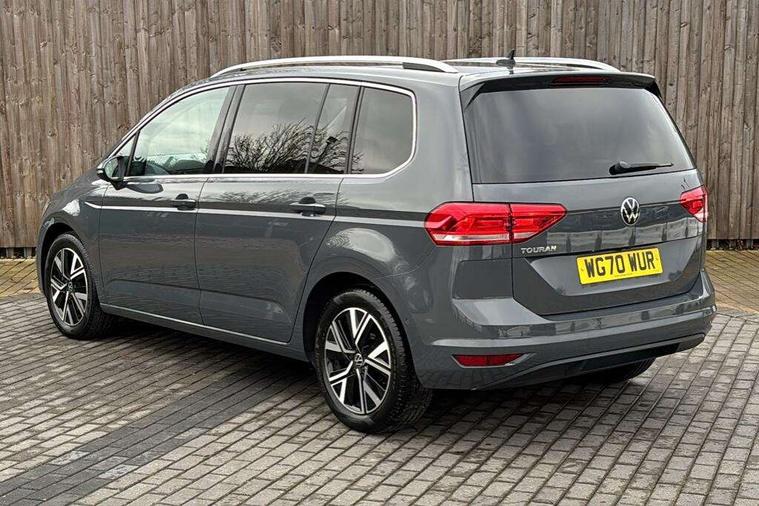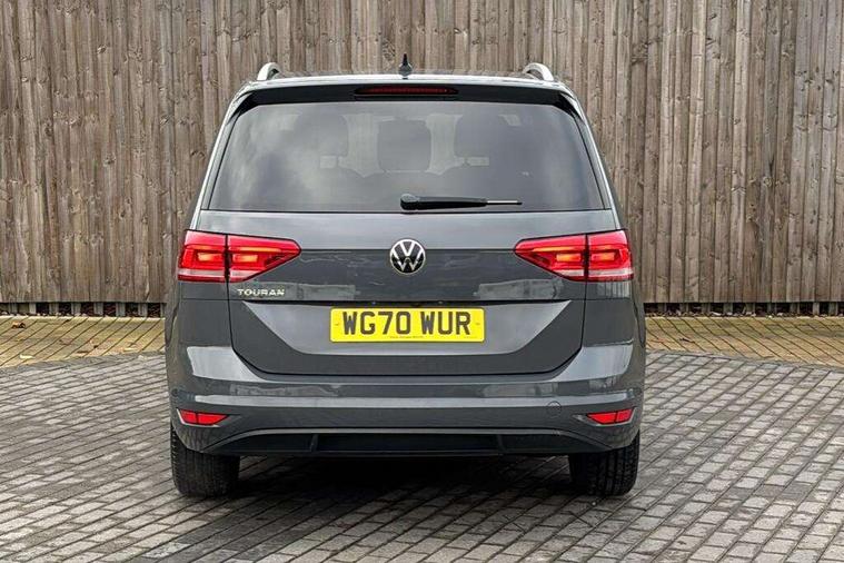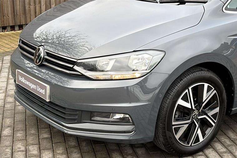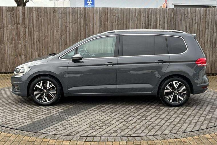 Adaptive cruise control, Audible lights on warning, Bluetooth telephone connectivity, Car information display, Driver alert system, Driver electronic voice amplification function, Electronic odometer, External temperature gauge, Flat tyre indicator, Mobile pairing with SMS function, Multifunction colour display, Rev counter with fuel gauge, Speed limiter, Speed sensitive power steering, Stop/start system, Think blue trainer driver tips and journey analysis, Trip and service interval display, Petrol Particulate Filter, XDS electronic differential lock, 4x20 watt output, Audio Connectivity System, DAB Digital radio, MP3/WMA compatability, SD card slot, Title and cover art display, USB connection, Aerial integrated into side window, Body colour bumpers, Body colour door handles, Body colour door mirrors with integral indicators, Chrome fog light surround, Chrome lower front bumper insert, Chrome trimmed front air intake surrounds, Chrome trimmed radiator grille louvre inserts, Chrome trimmed side windows, Dusk sensor + auto driving lights, Electric folding door mirrors with reverse activated kerb-view adjustment on passenger's door mirror, Front and rear electric windows, Front fog lights with static cornering function, Fully galvanised body, Gloss black finish B pillar, Green tinted heat insulating glass, High level third brake light, Rear tinted glass from B-pillar backwards approx 65% tinted, Rear wash/wipe with intermittent wipe setting, Silver roof rails, Tailgate wiper- reverse gear activation, Twin chrome exhaust tailpipes, Volkswagen roundel, Windscreen wipers intermittent wipe, 12V power point for Row 2, 12V socket in luggage compartment, 2 individual fold flat 3rd row seats, 2 three point seatbelts in 3rd row, 2nd row centre armrest, 2nd row centre seat converts into table, 3 single slide/fold/removable 2nd row seats, 3 spoke steering wheel, 3 Zone electronic climate control with automatic air recirculation, 3x3 point seatbelts on 2nd row with height adjust on outer seats, 4 boot load lashing points, 4 way adjustable front head restraints, 5 headrests, Ambient lighting in door trim and foot well, Driver and front passenger under seat drawer, Dust/pollen filters, Foldable front passenger seat backrest, Front + rear carpet mats, Front and rear reading lights, Front centre armrest with storage compartment, Front cupholders x 2, Front seat storage pockets, Front seatback folding tables, Height adjustable driver's seat, Height/reach adjust steering wheel, Illuminated glovebox, Illuminated vanity mirrors, Instrument lighting white adjustable panel illumination with red night time illumination, Interior light with delay, Isofix on 2nd row outer seats, Isofix on 3rd row seats, Large storage compartment in roof console, Leatherette on rear of front seats, Low tunnel 2nd row seat, Media box in dashboard on passenger side, Multi storage in passenger/luggage areas, Multi-function centre console with storage facilities, Retractable luggage cover, Split folding rear seat backrests, Storage bins on all doors, Convenience Pack - Touran, Mirror pack - Touran, 3 point height adjustable front seatbelts, Auto hold function, Automatic post collision braking system, Door open warning reflectors, Driver/Front Passenger airbags, Drivers knee airbag, EDL + ASR, Electronic parking brake, Energy recovery system, ESC with ABS, First aid kit, Front and rear (row 2) curtain airbags, Front assist including city emergency braking, Front seat side impact airbags, Front/rear disc brakes, HBA (Hydraulic Brake Assist), Hill hold control, Loose wheel warning function, Passenger airbag deactivation system, Pre crash preventive occupant protection, Seatbelt warning lamp and buzzer, Traction control, Two tone horn, Warning triangle, Alarm with remote central locking and interior protection, Electronic engine immobiliser, Chrome plated instrument surrounds, Piano black decorative inserts, Tyre mobility system,